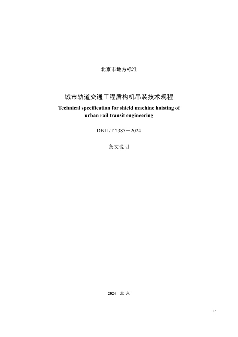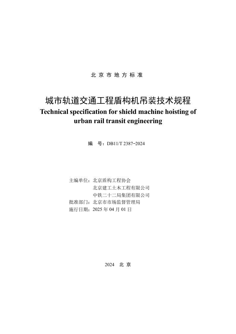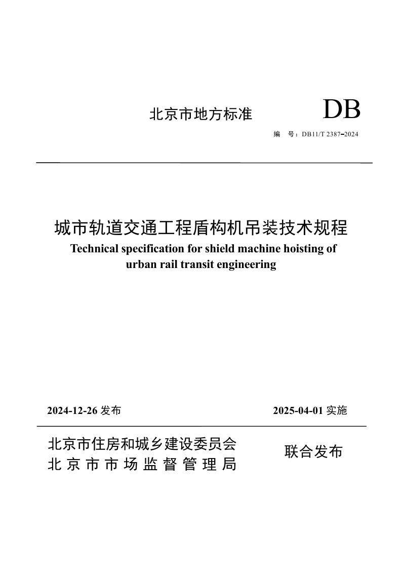 北京市《城市轨道交通工程盾构机吊装技术规程》(DB11/T 2387-2024)