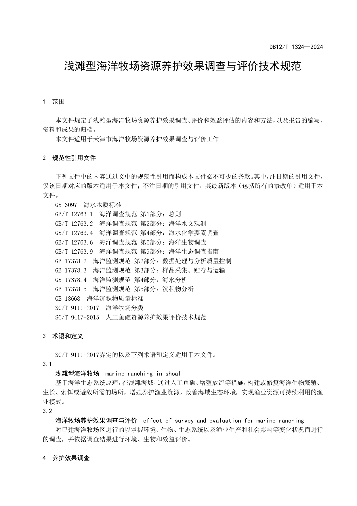 浅滩型海洋牧场资源养护效果调查与评价技术规范DB12/T 1324-2024
