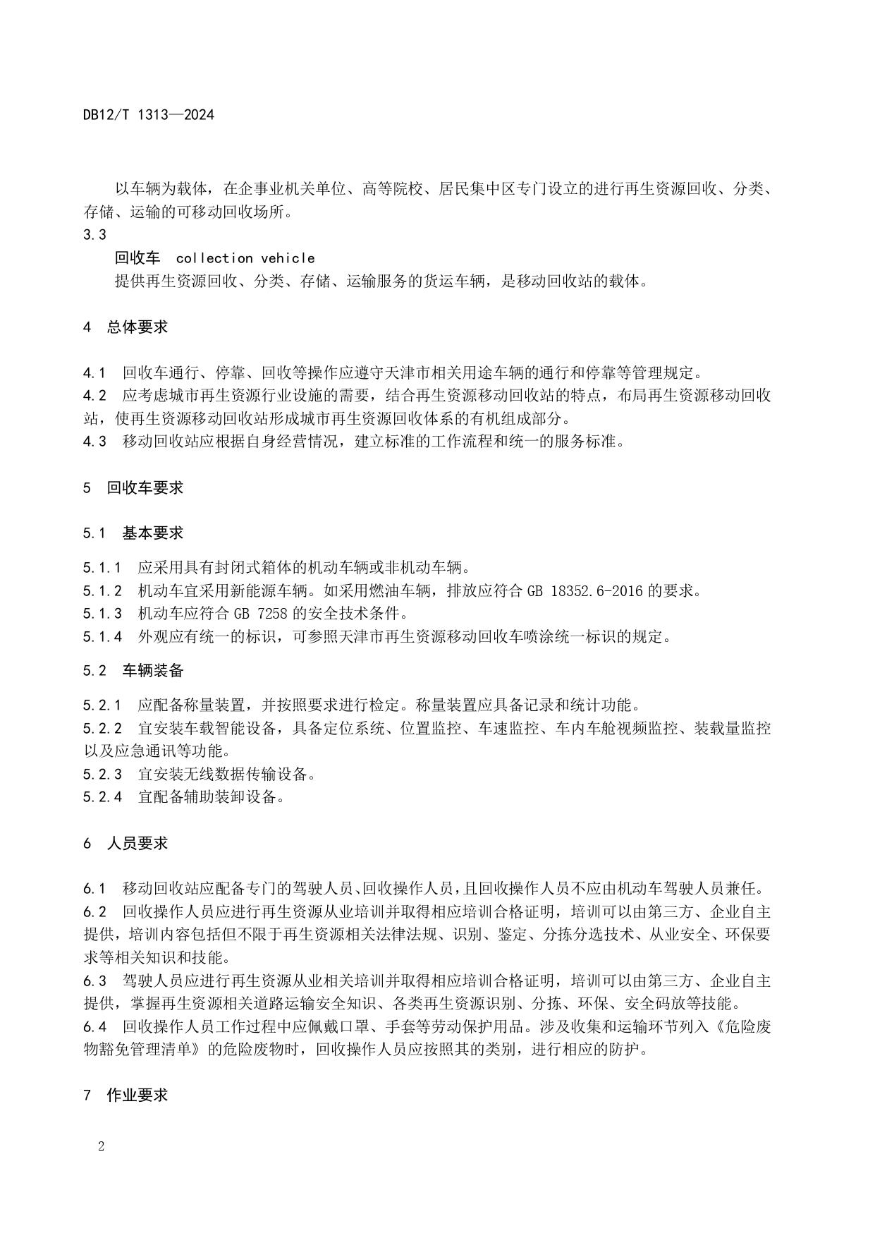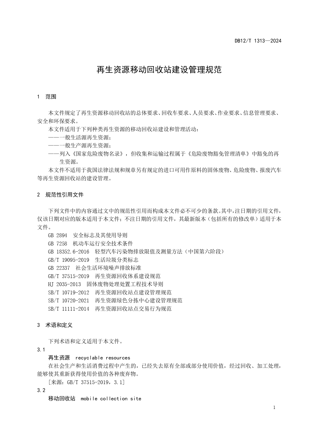 再生资源移动回收站建设管理规范DB12/T 1313-2024