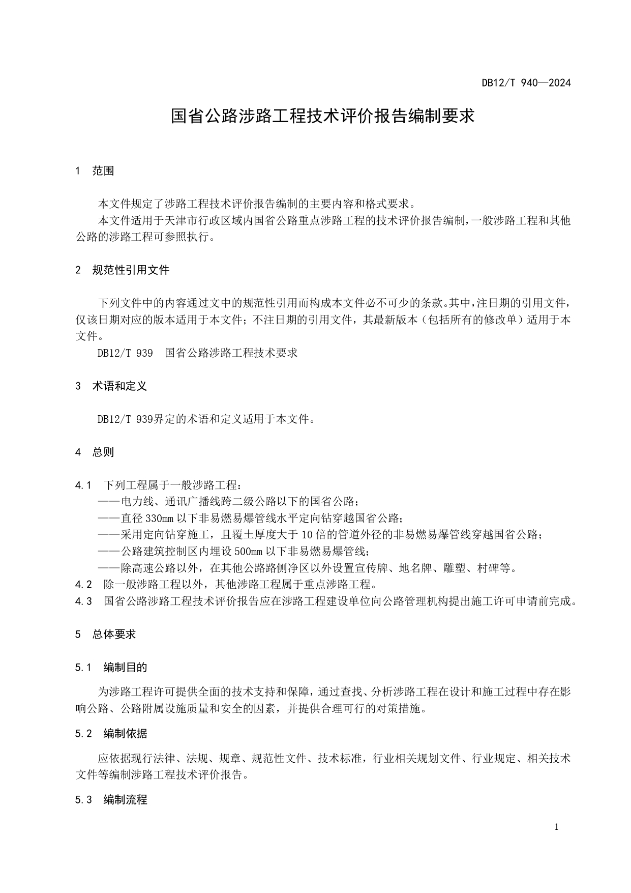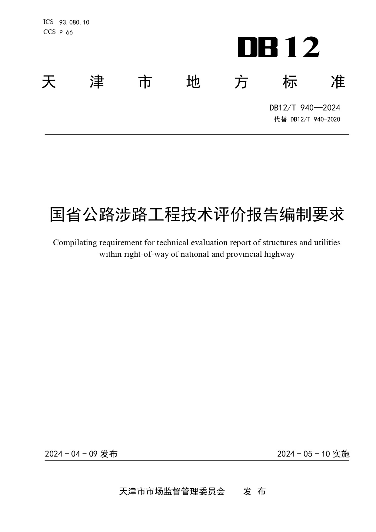 国省公路涉路工程技术评价报告编制要求DB12/T 940-2024