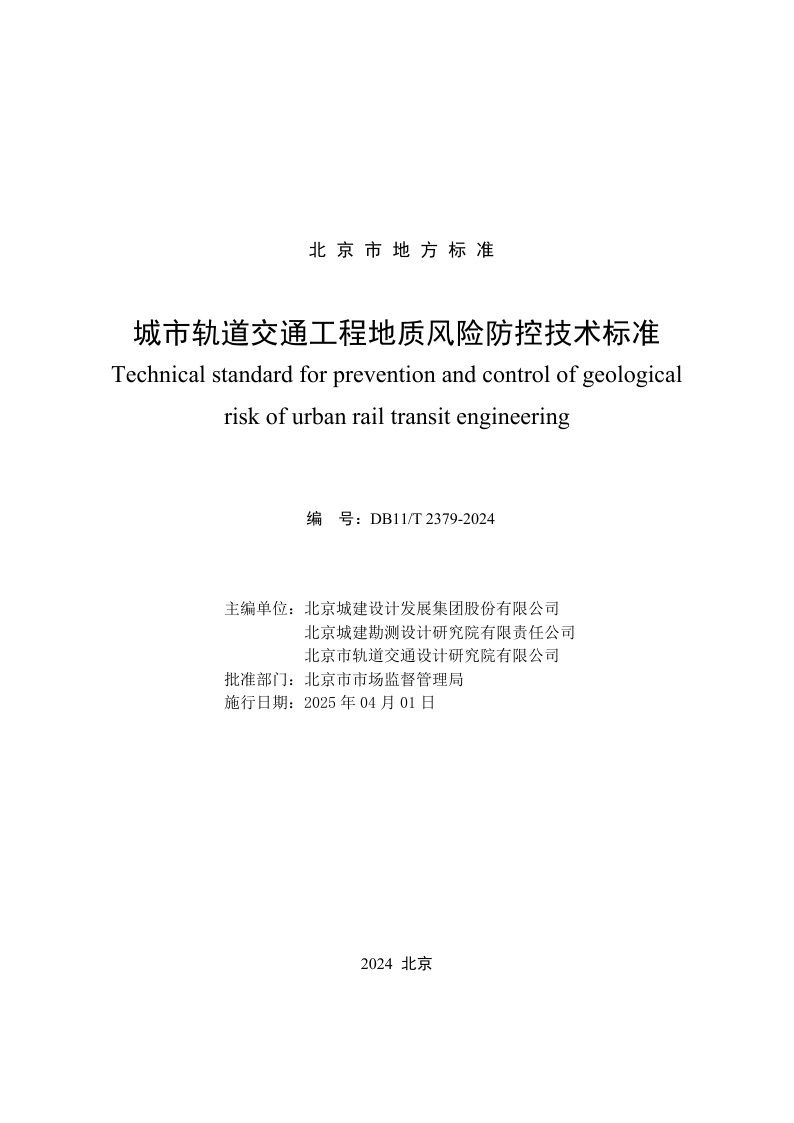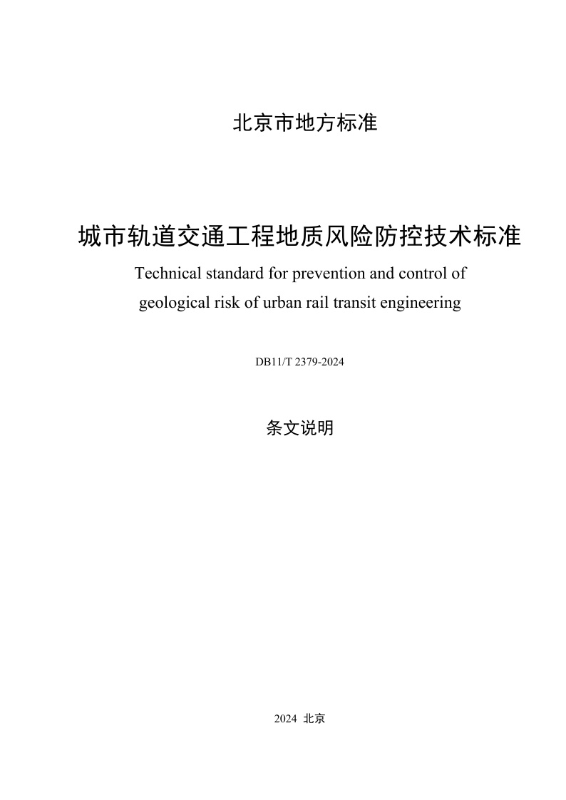 北京市《城市轨道交通工程地质风险防控技术标准》(DB11/T 2379-2024)