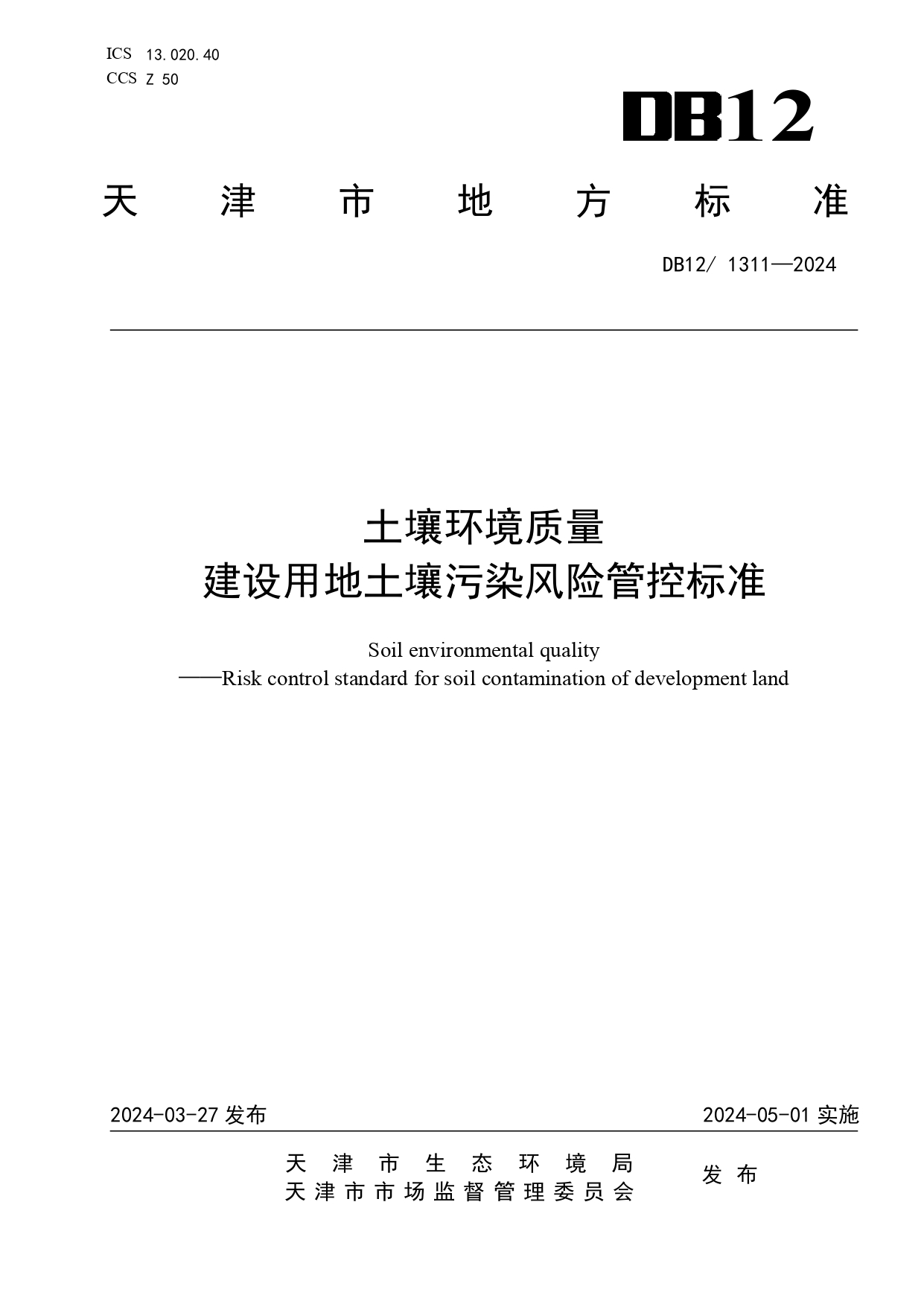 土壤环境质量建设用地土壤污染风险管控标准DB12/ 1311-2024