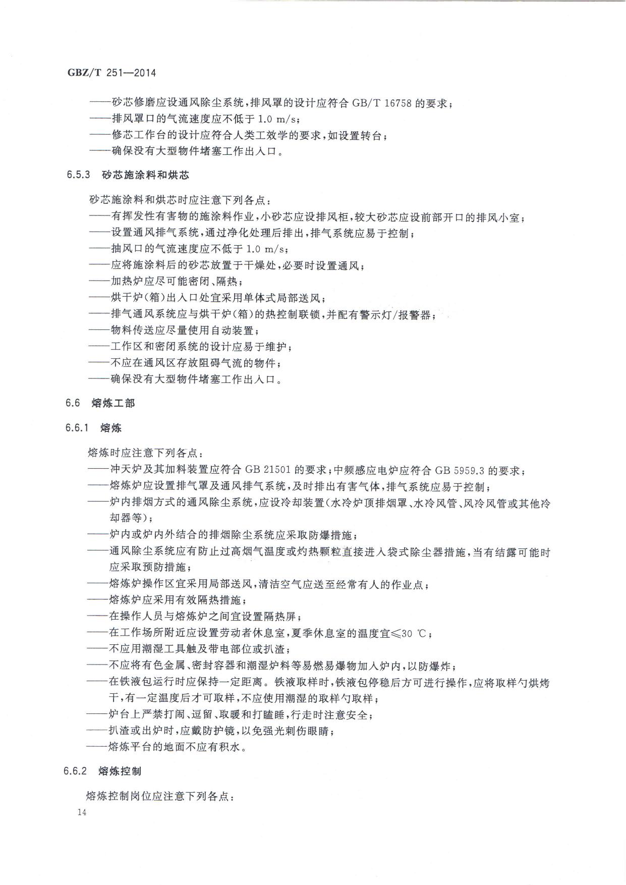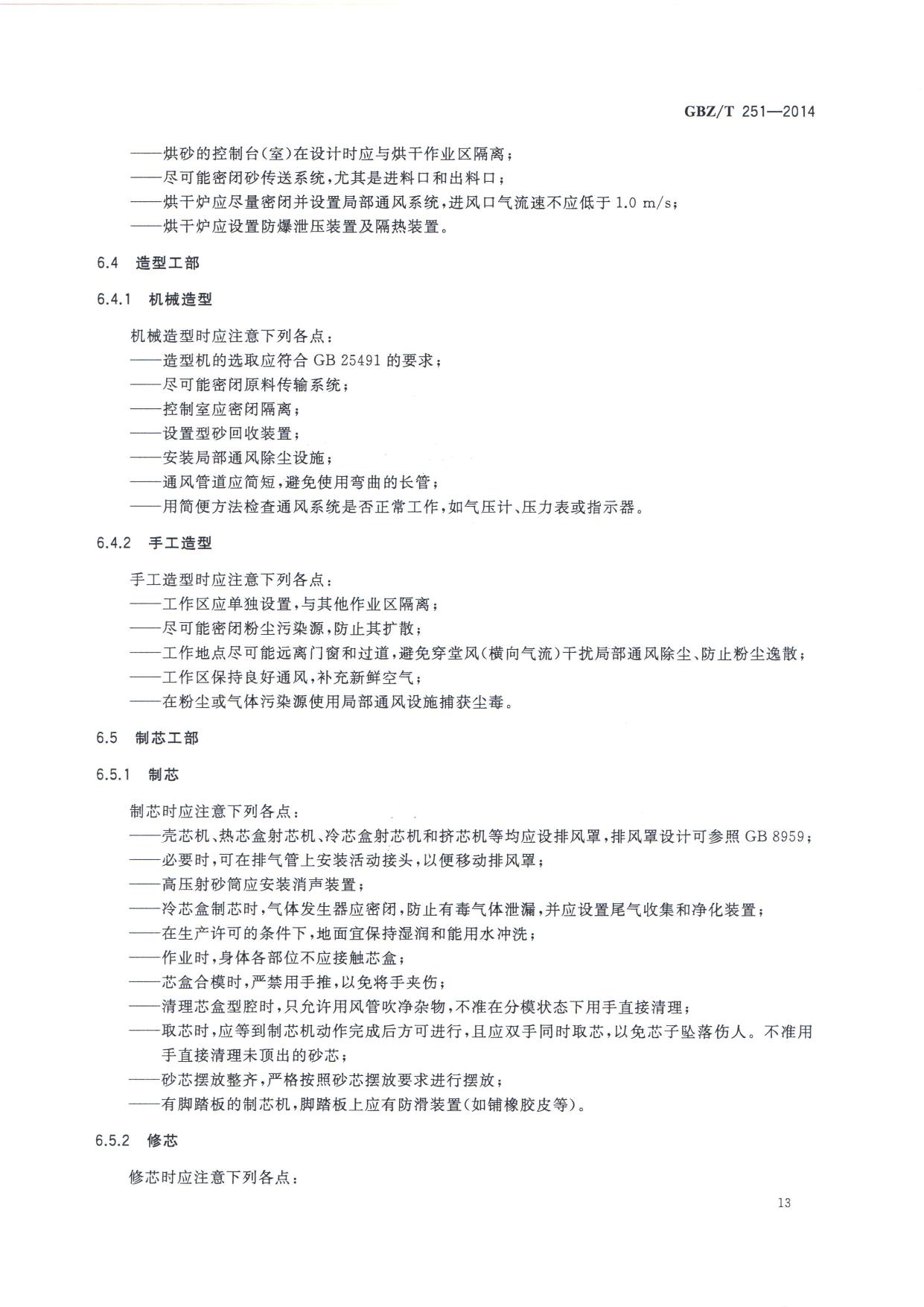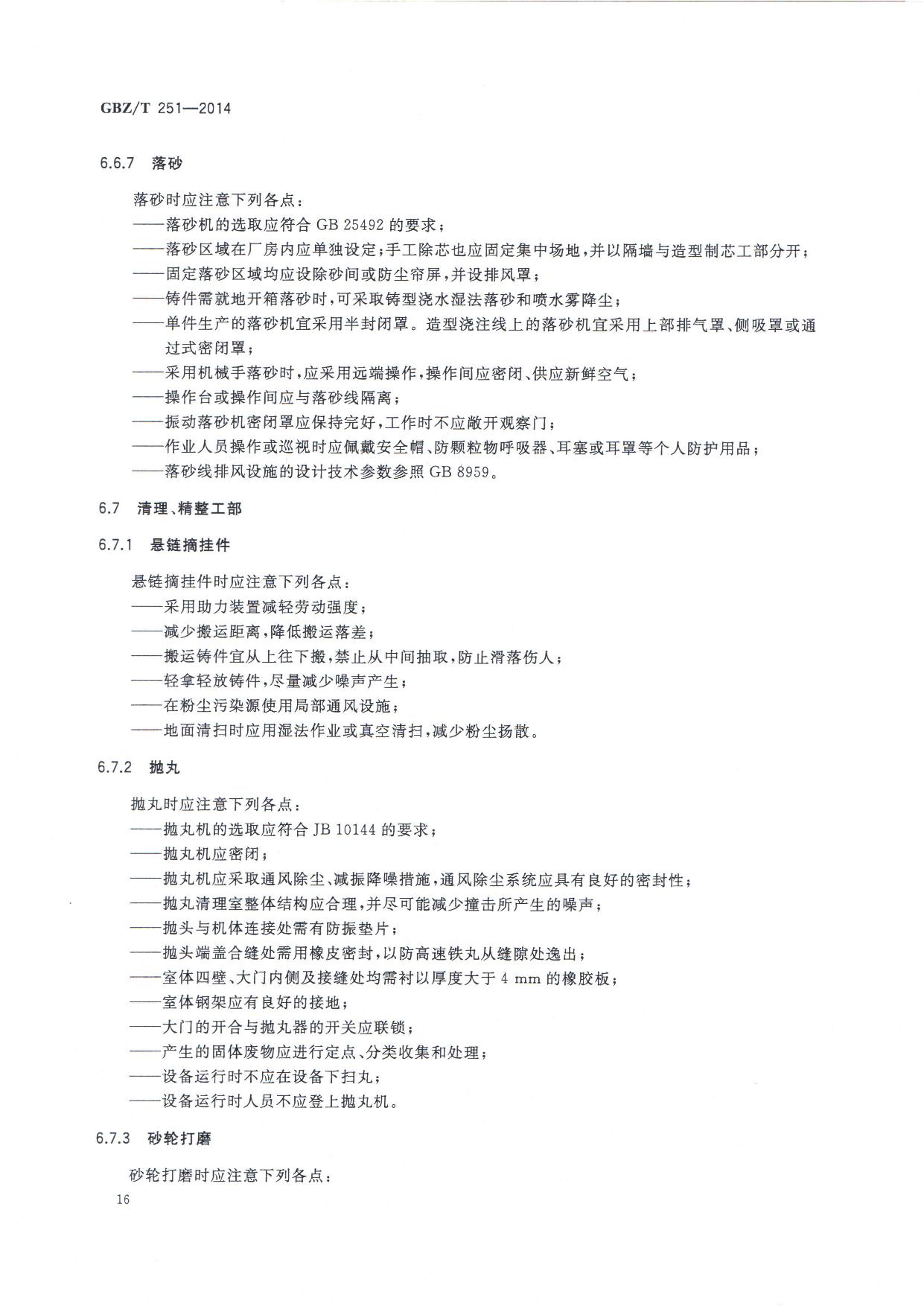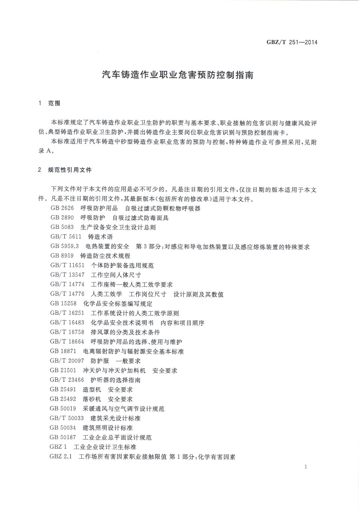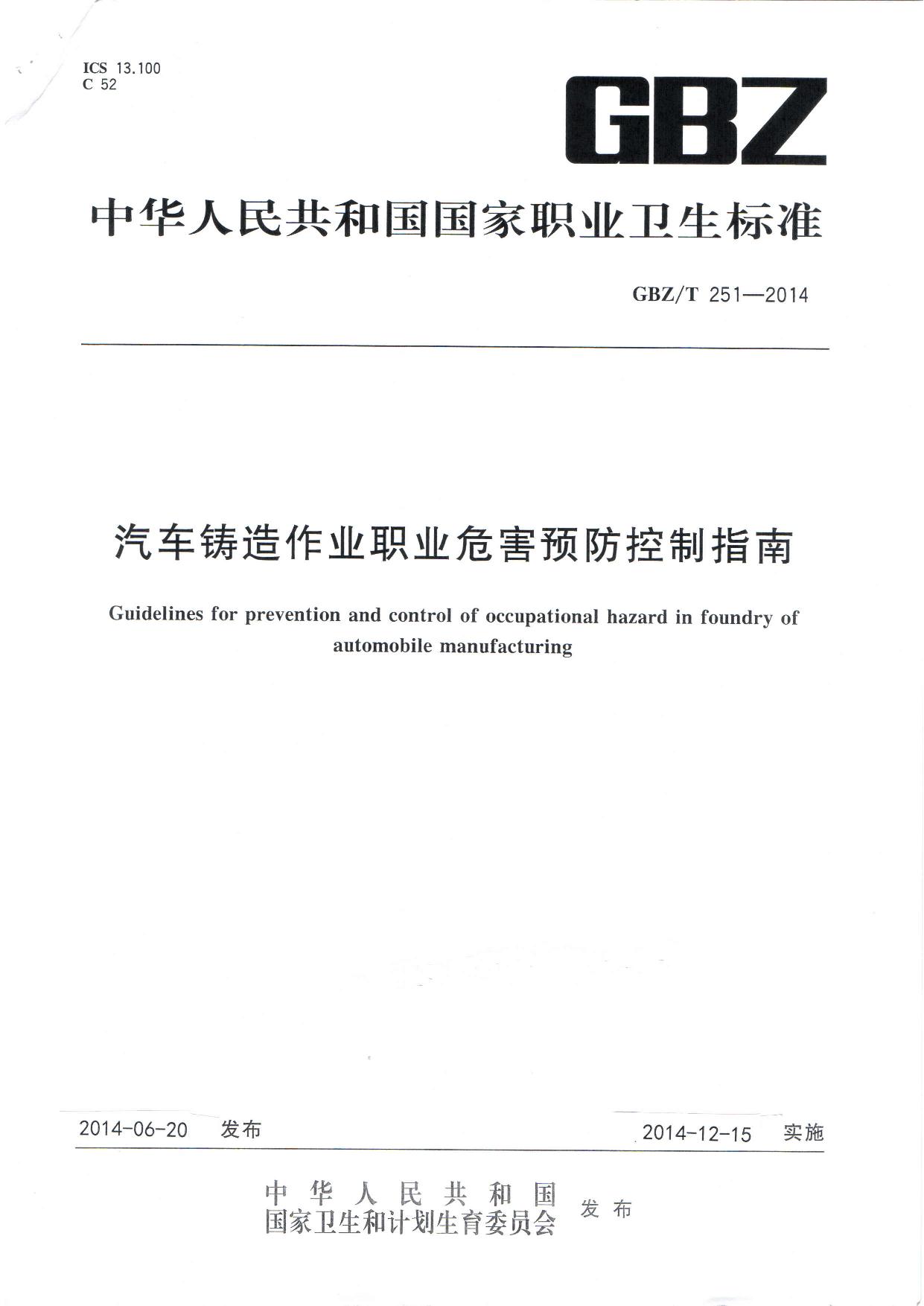 《汽车铸造作业职业危害预防控制指南》(GBZ-T251-2014)