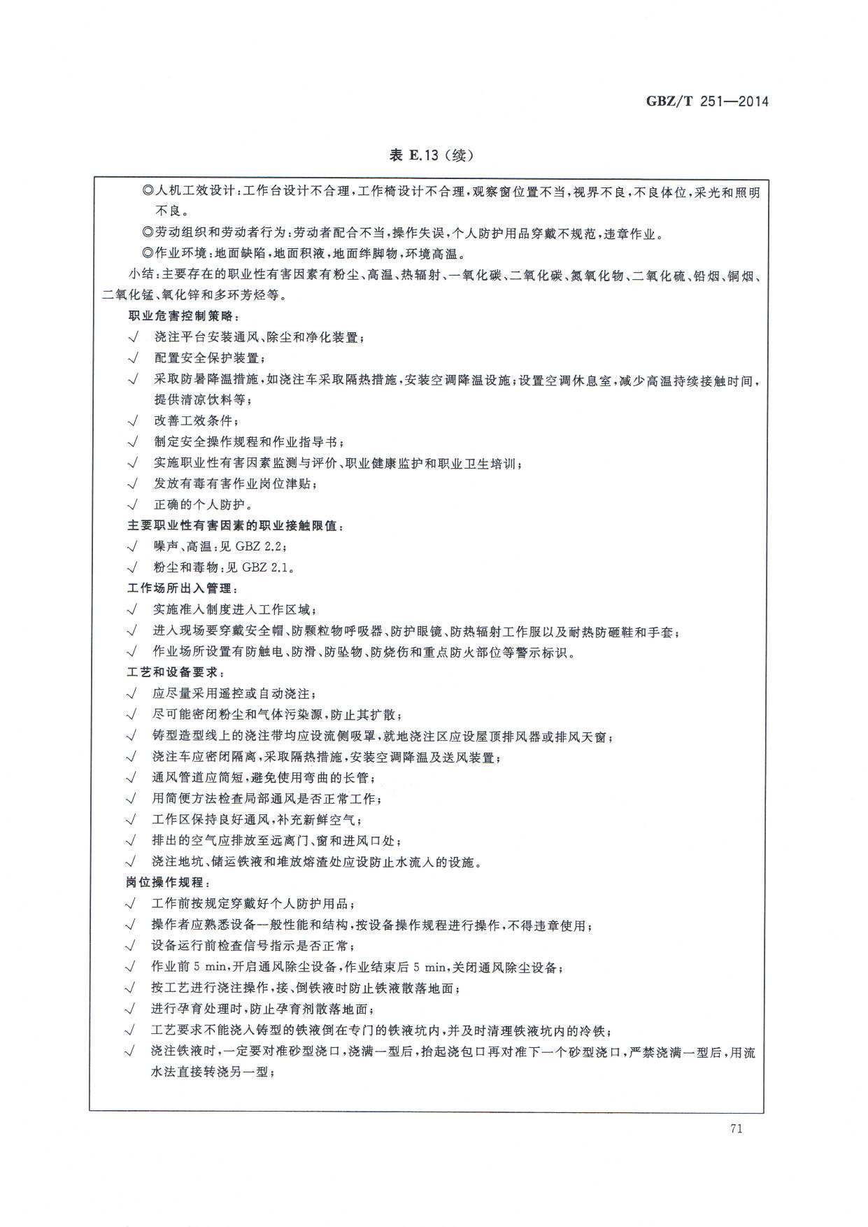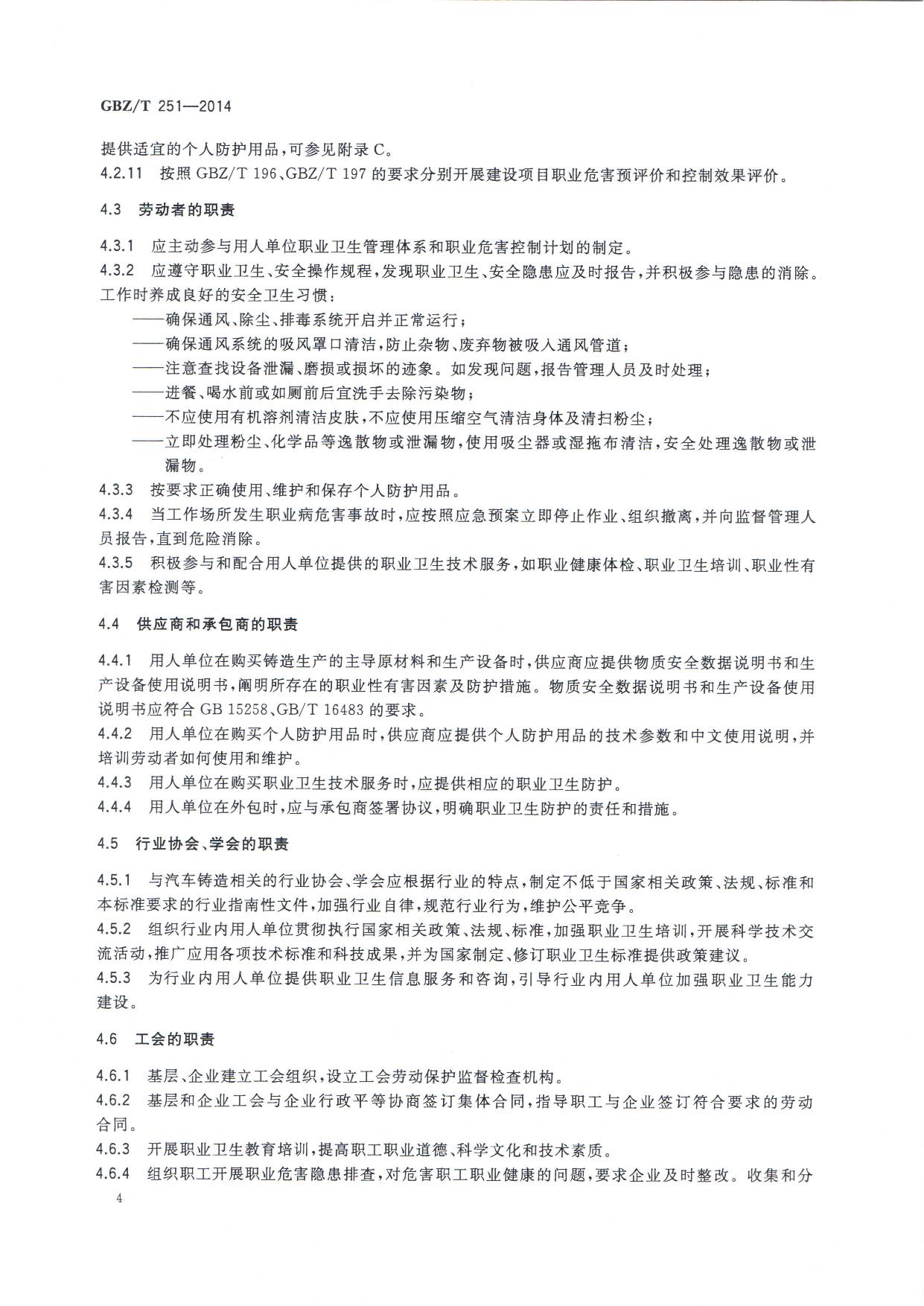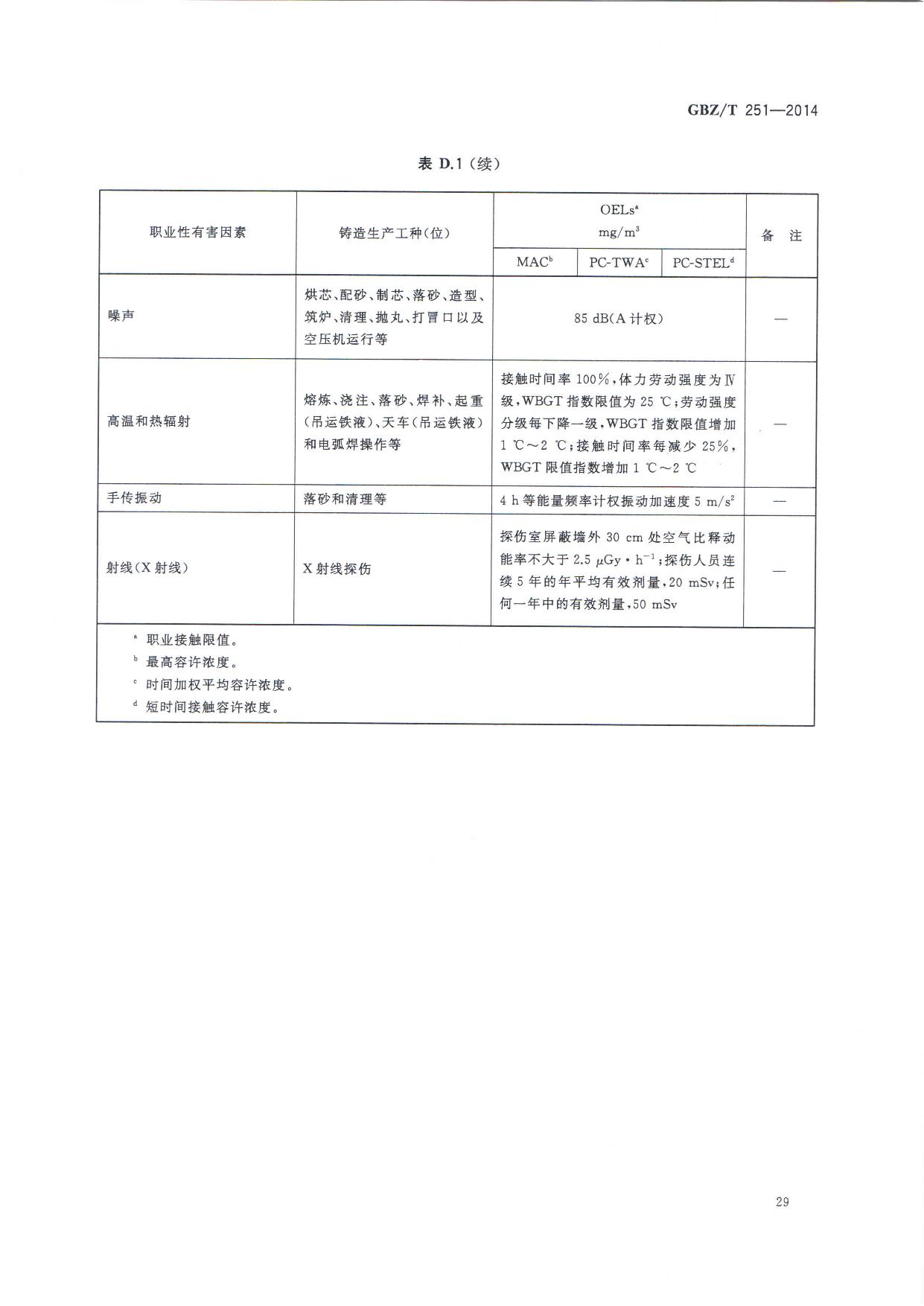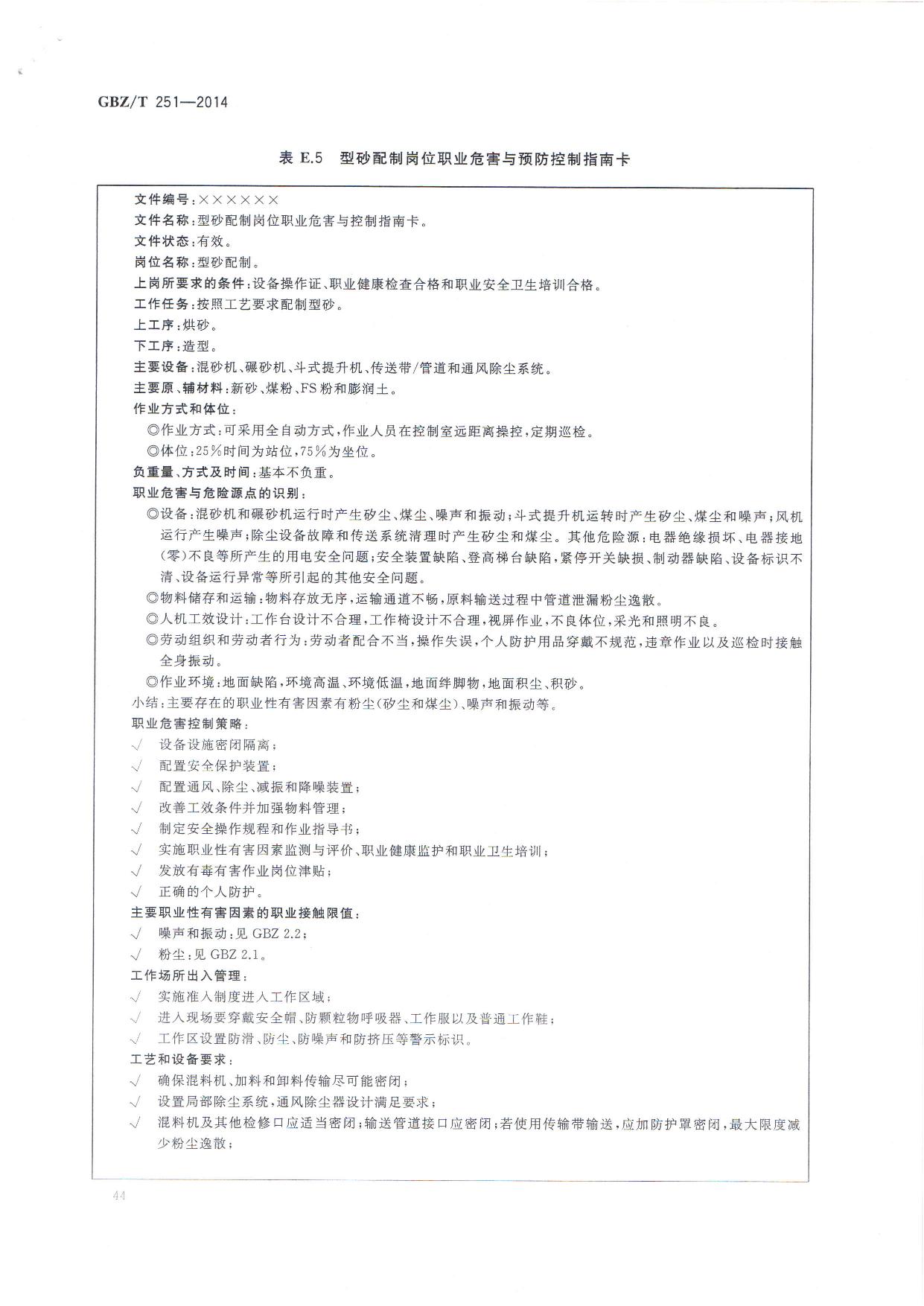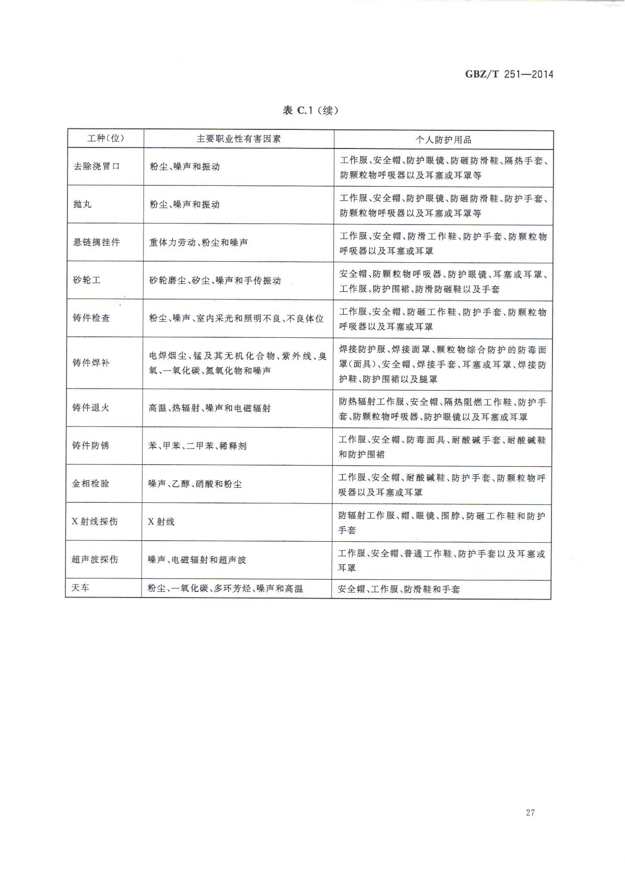 《汽车铸造作业职业危害预防控制指南》(GBZ-T251-2014)
