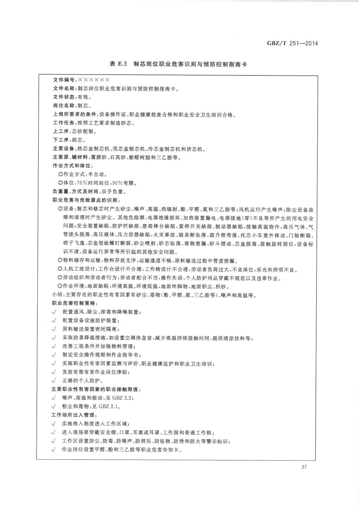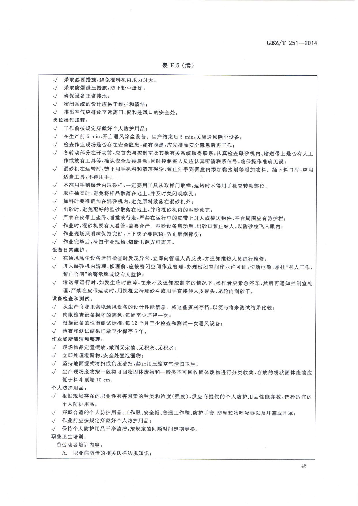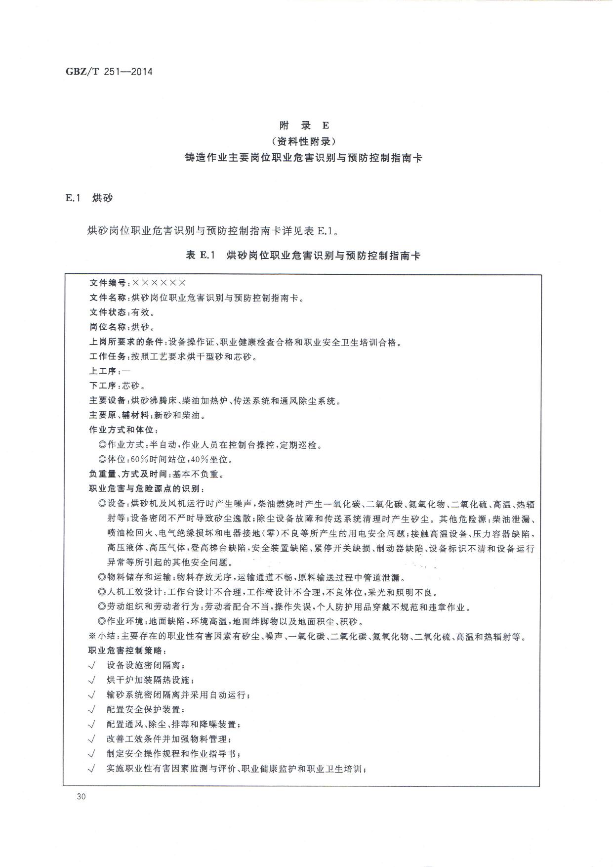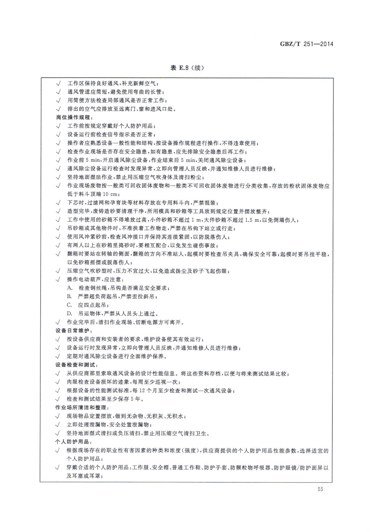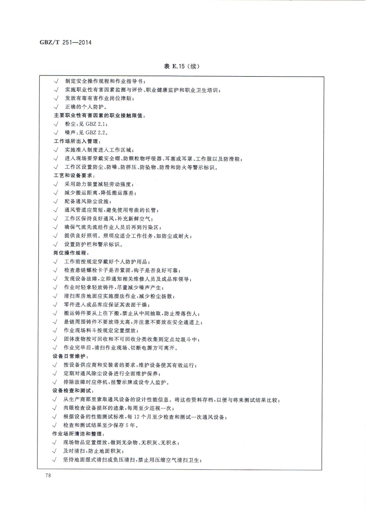 《汽车铸造作业职业危害预防控制指南》(GBZ-T251-2014)
