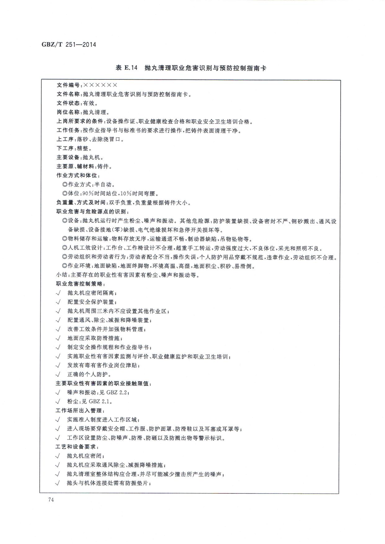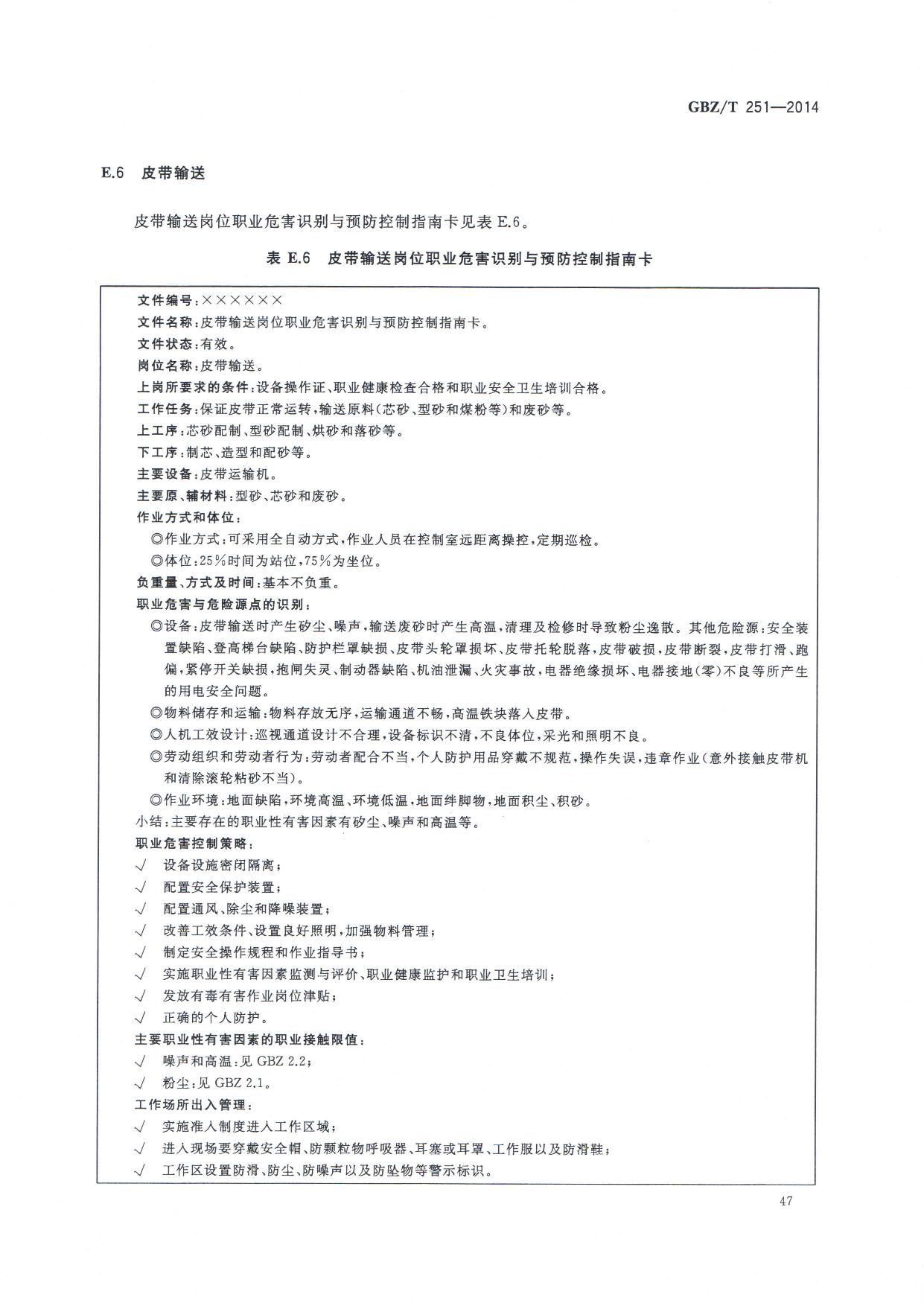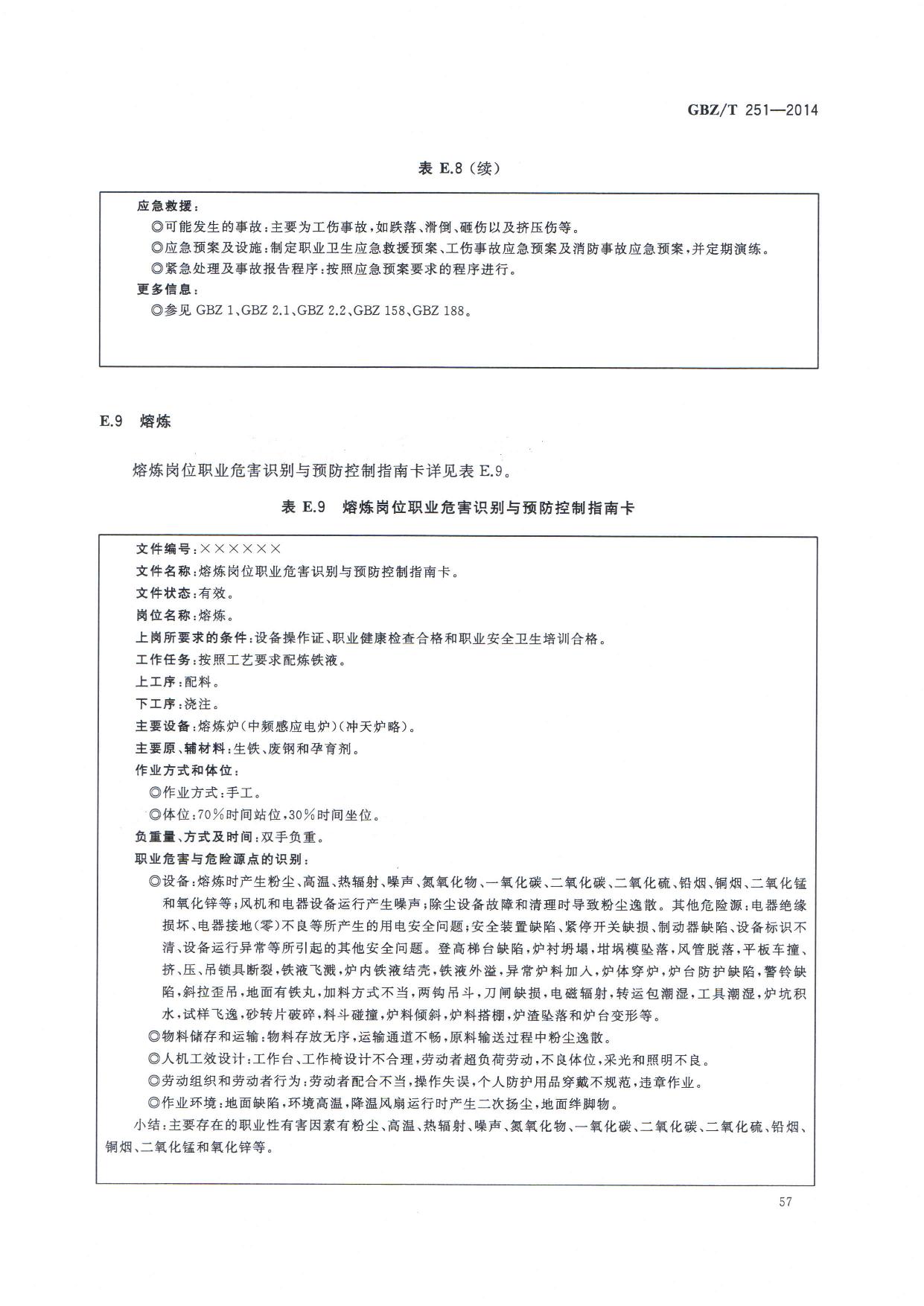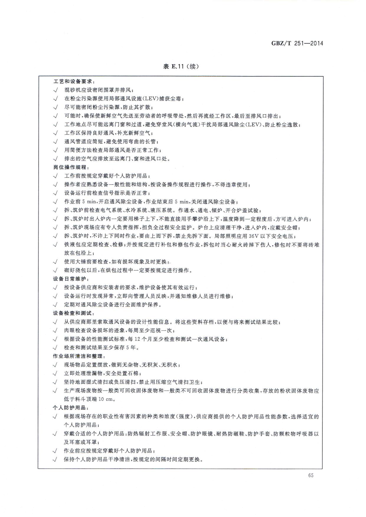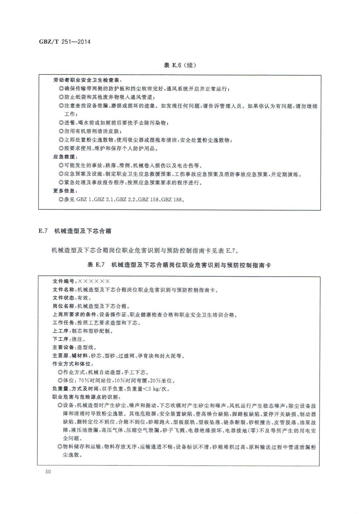 《汽车铸造作业职业危害预防控制指南》(GBZ-T251-2014)