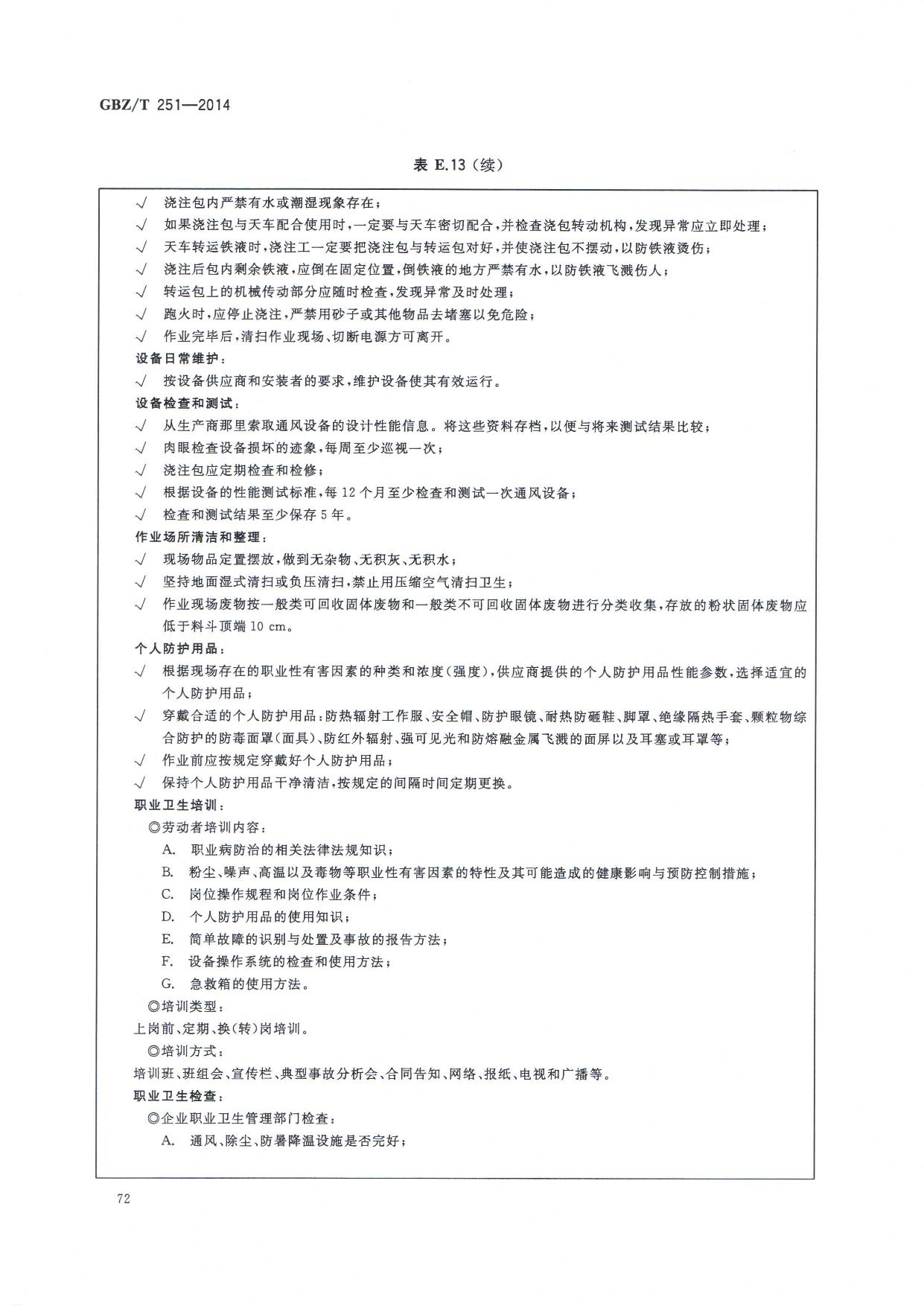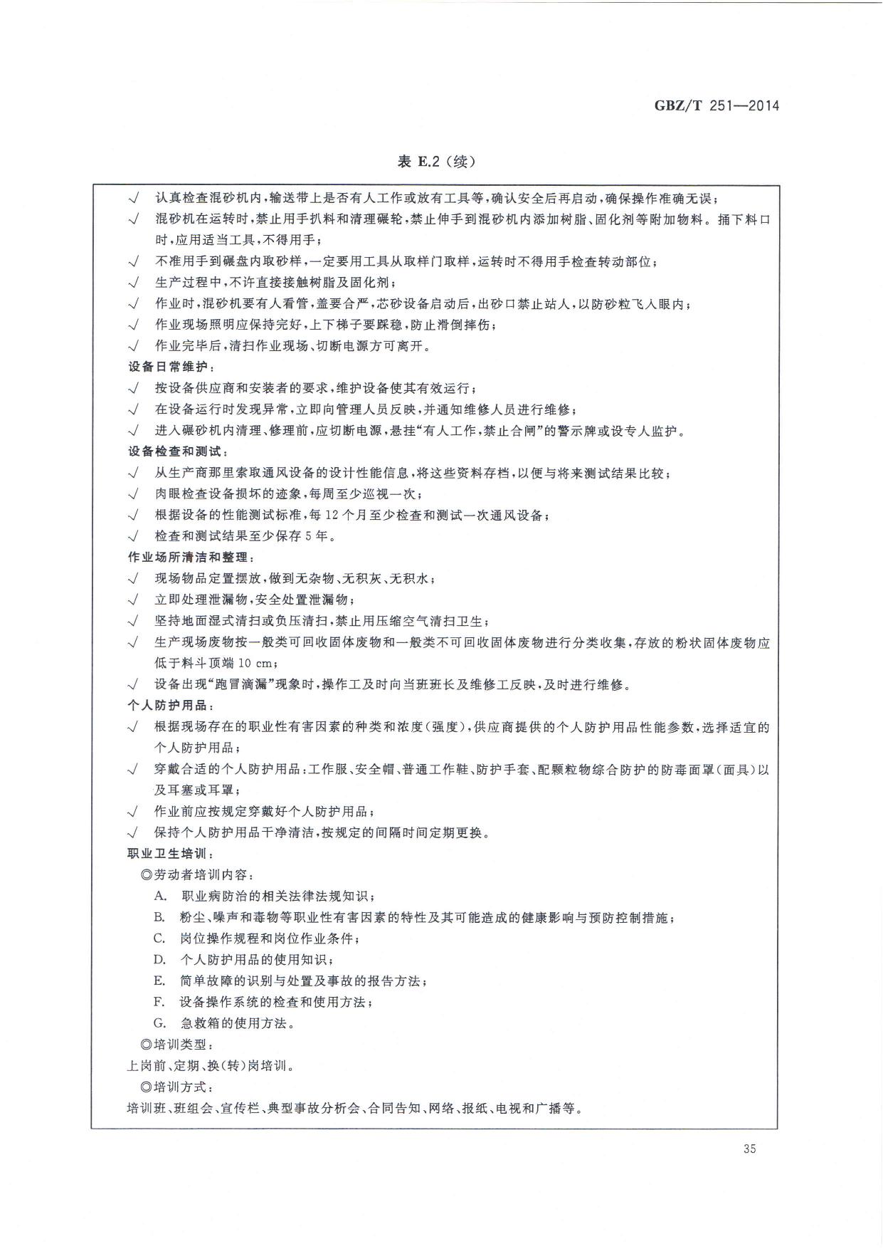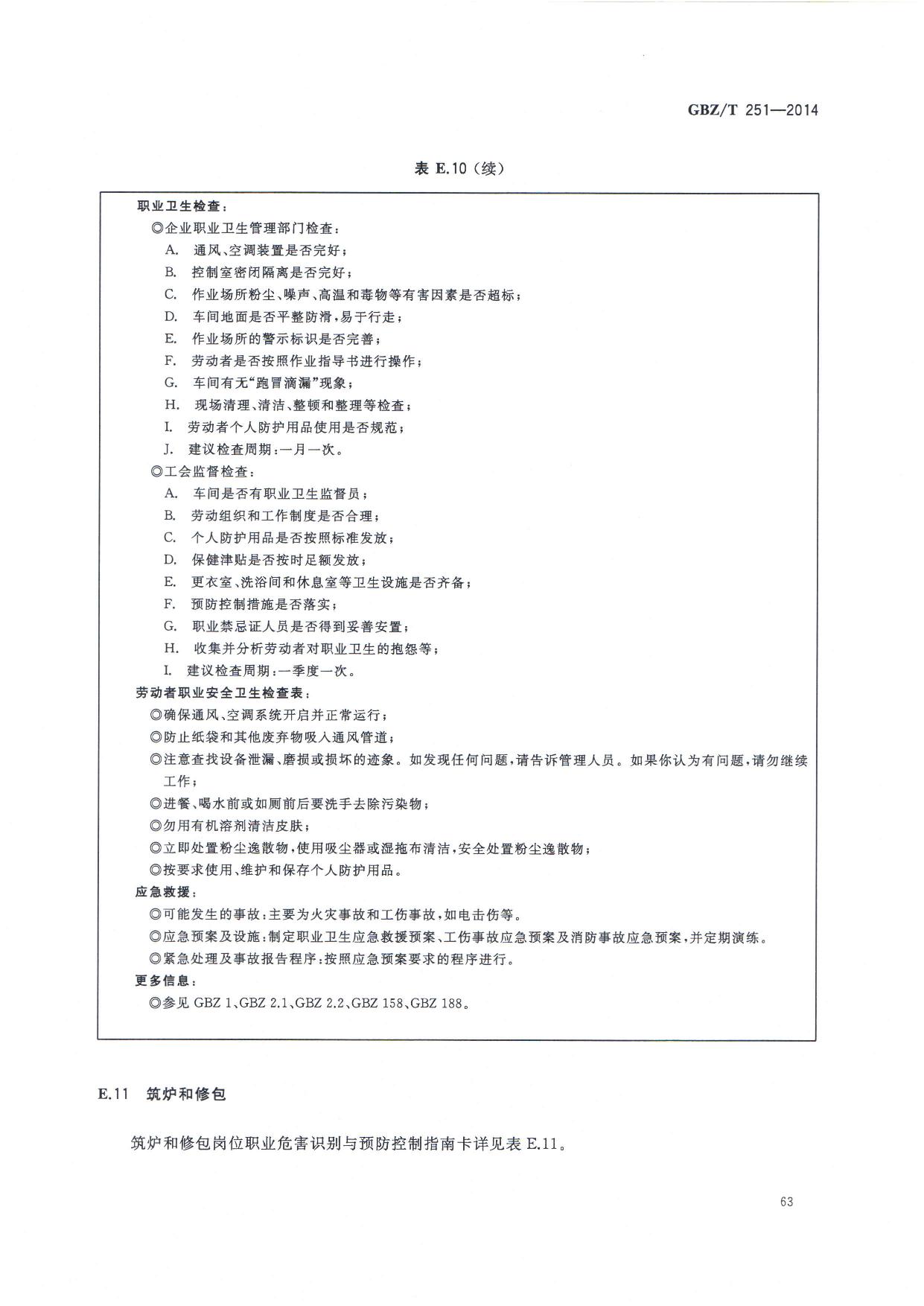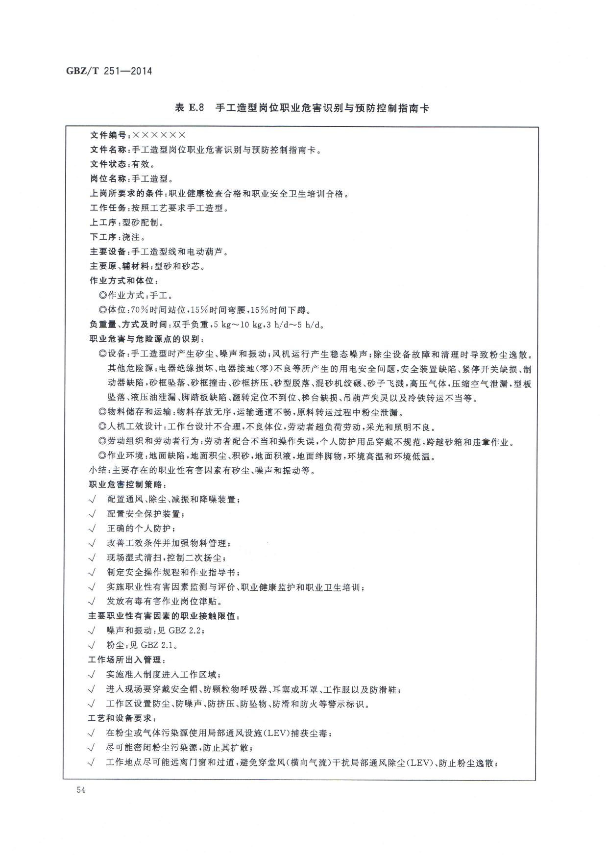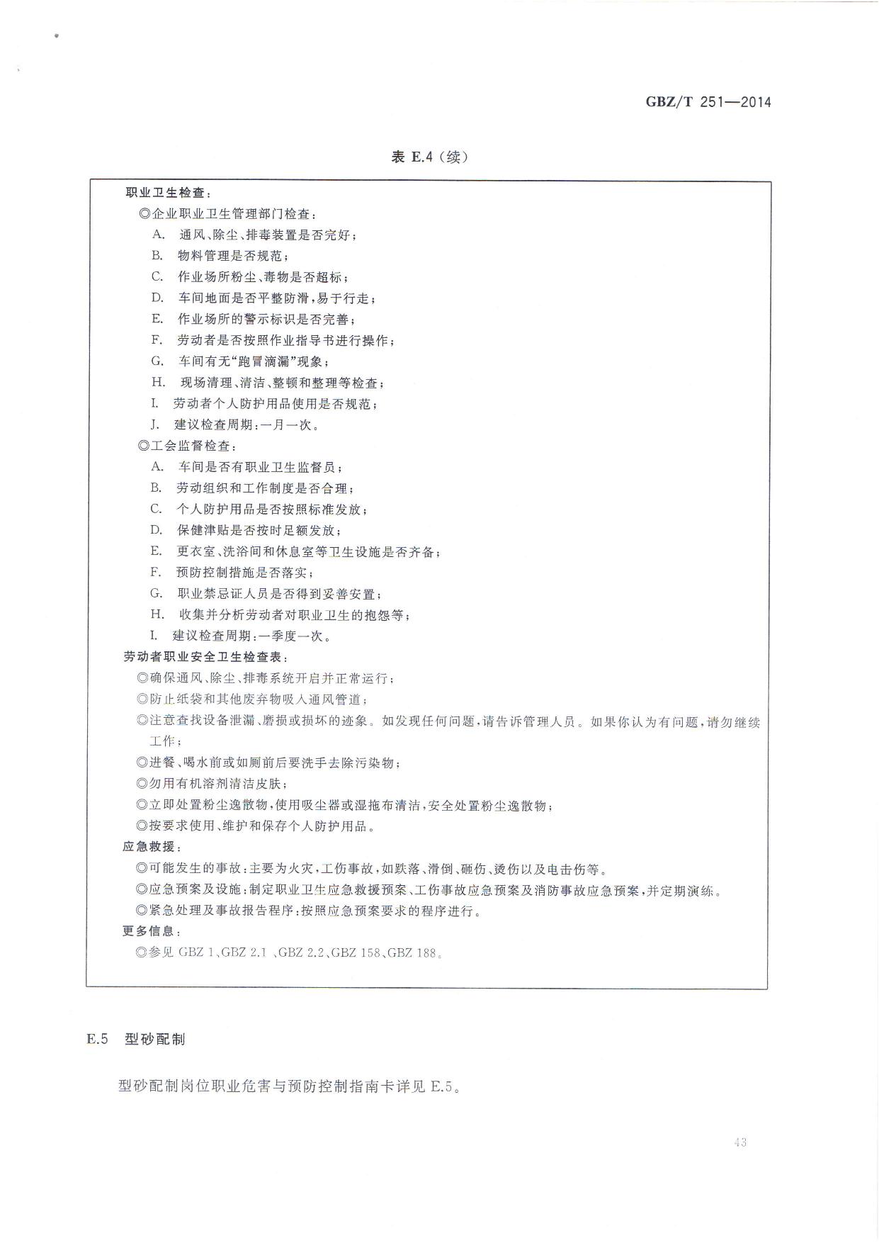 《汽车铸造作业职业危害预防控制指南》(GBZ-T251-2014)