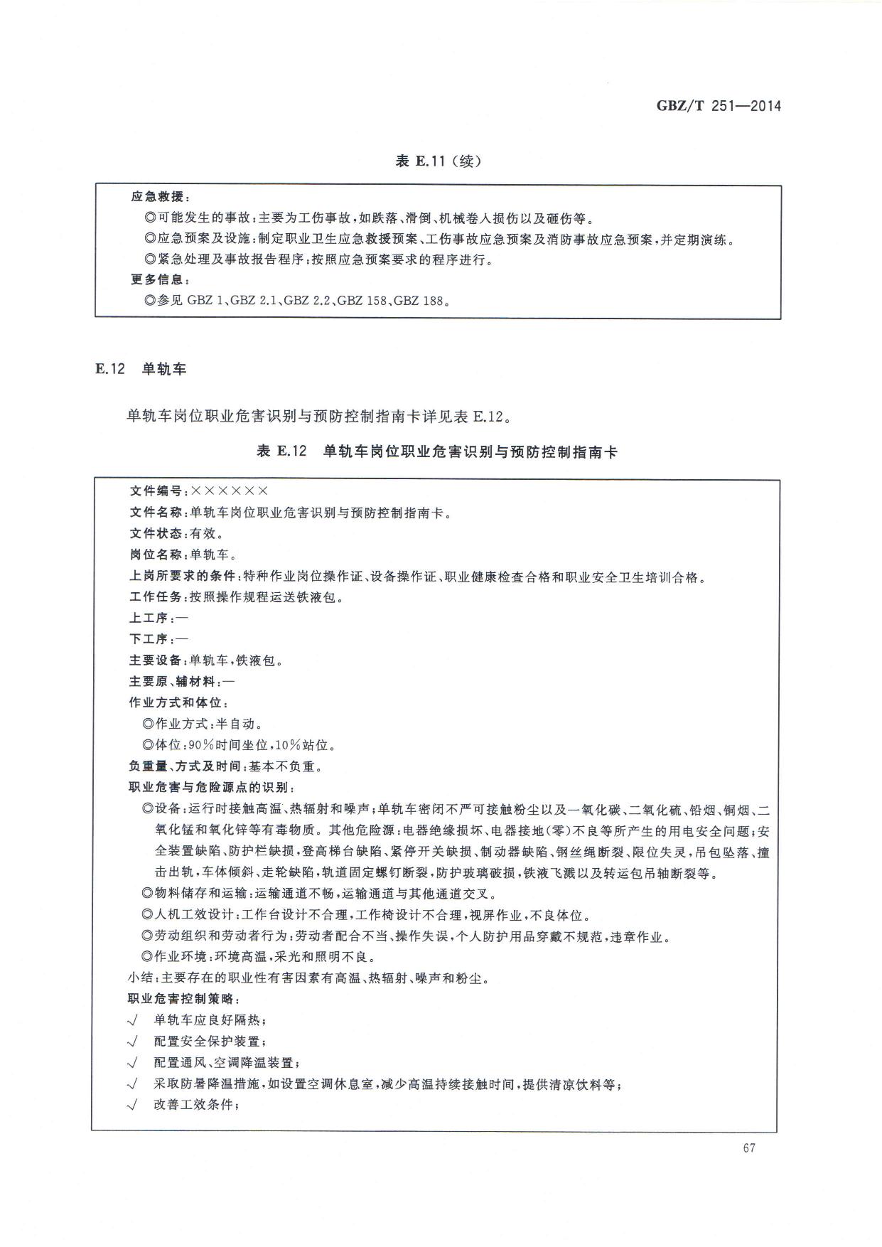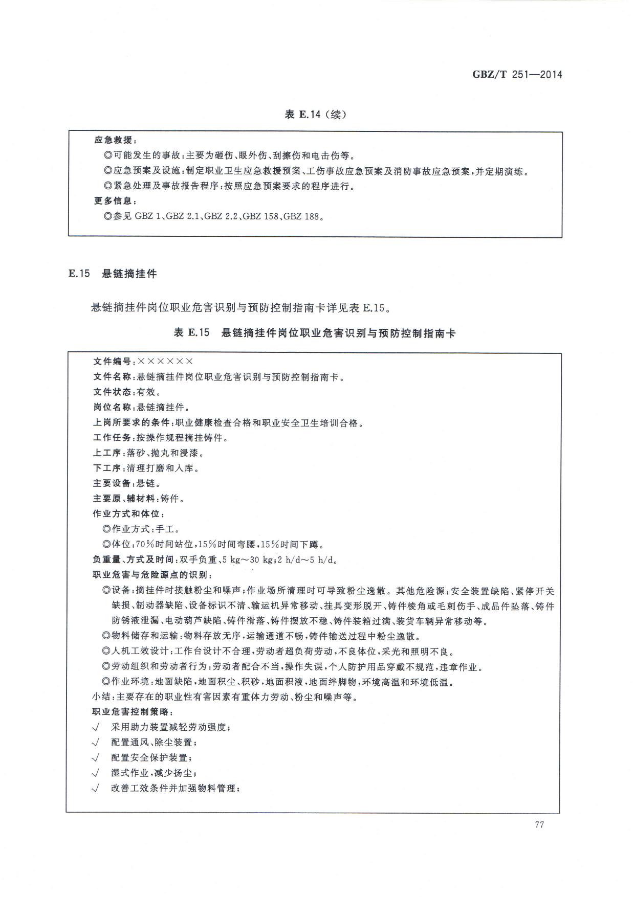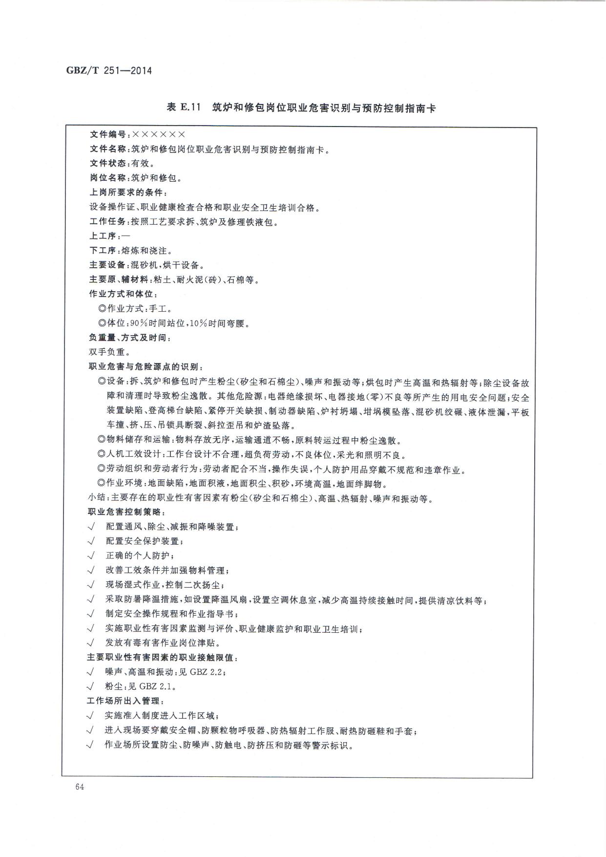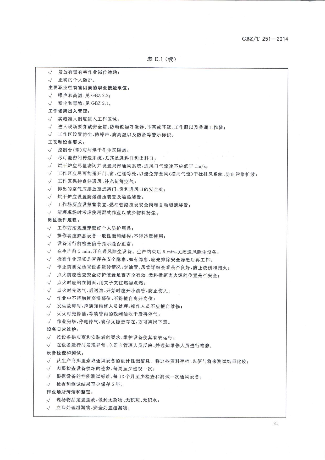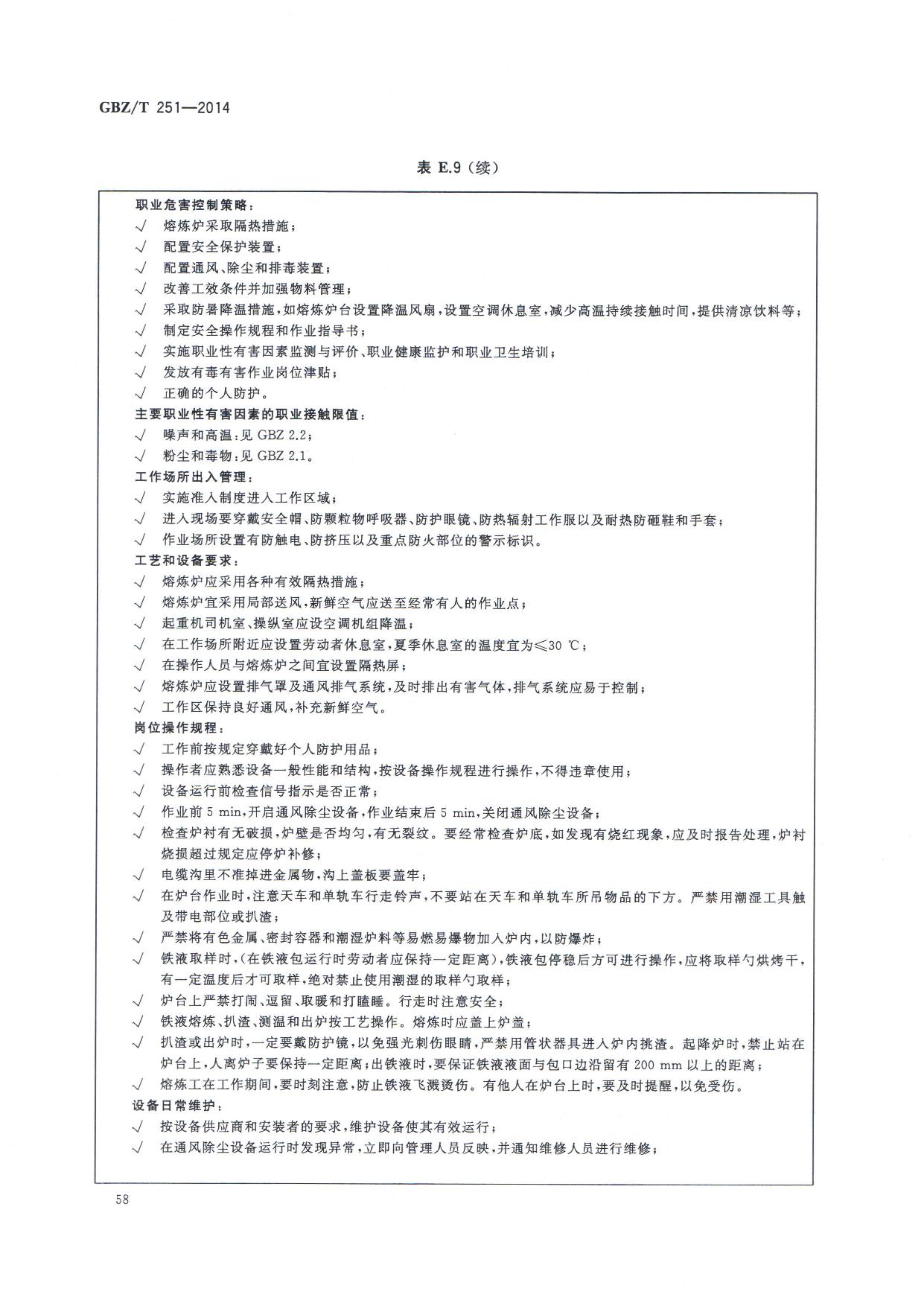 《汽车铸造作业职业危害预防控制指南》(GBZ-T251-2014)