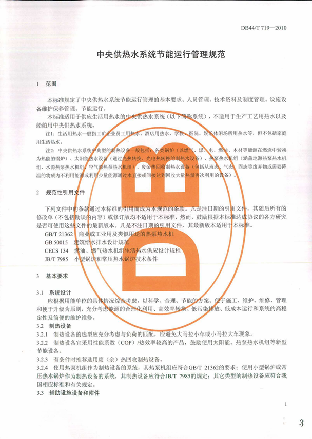 中央供热水系统节能运行管理规范