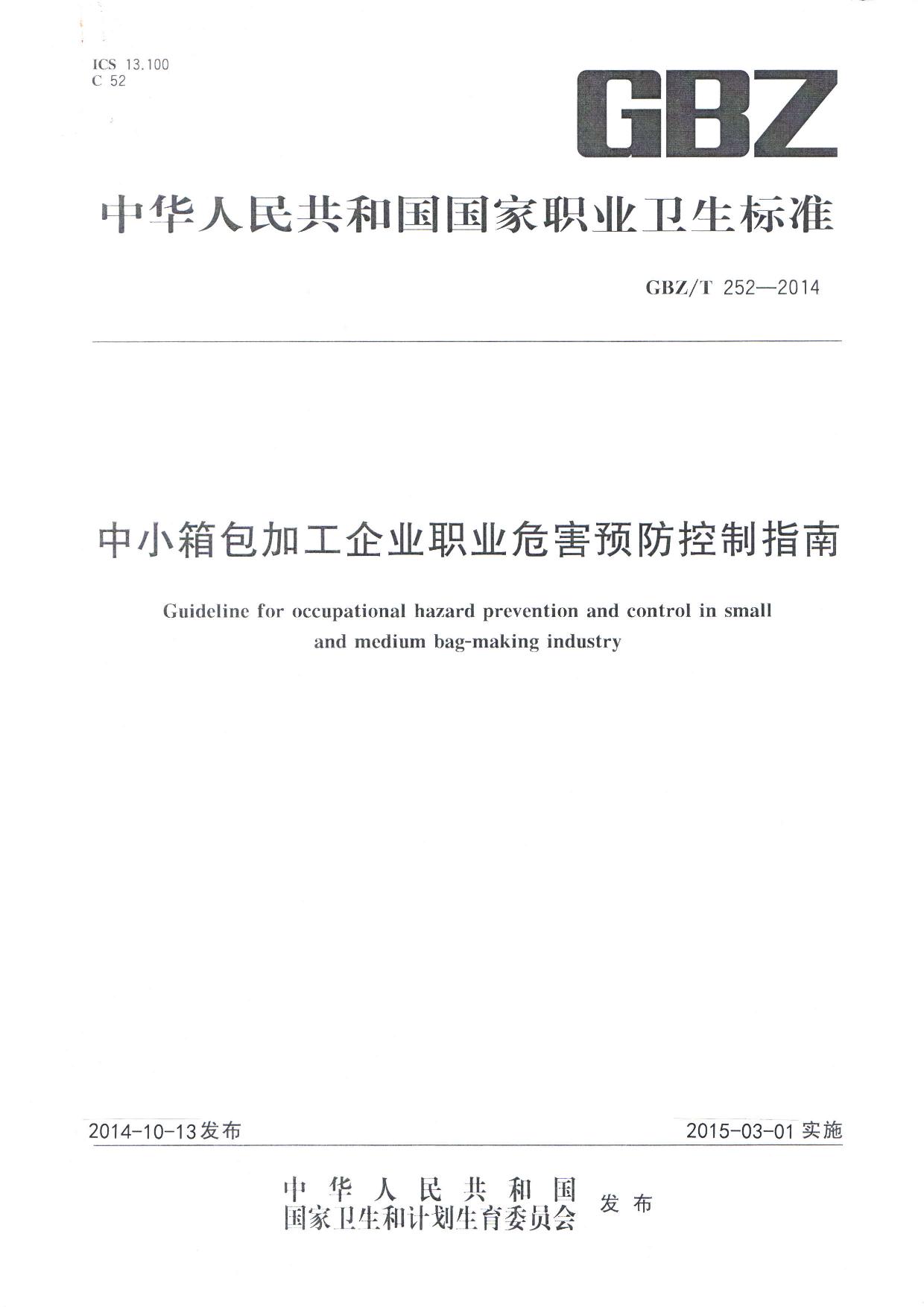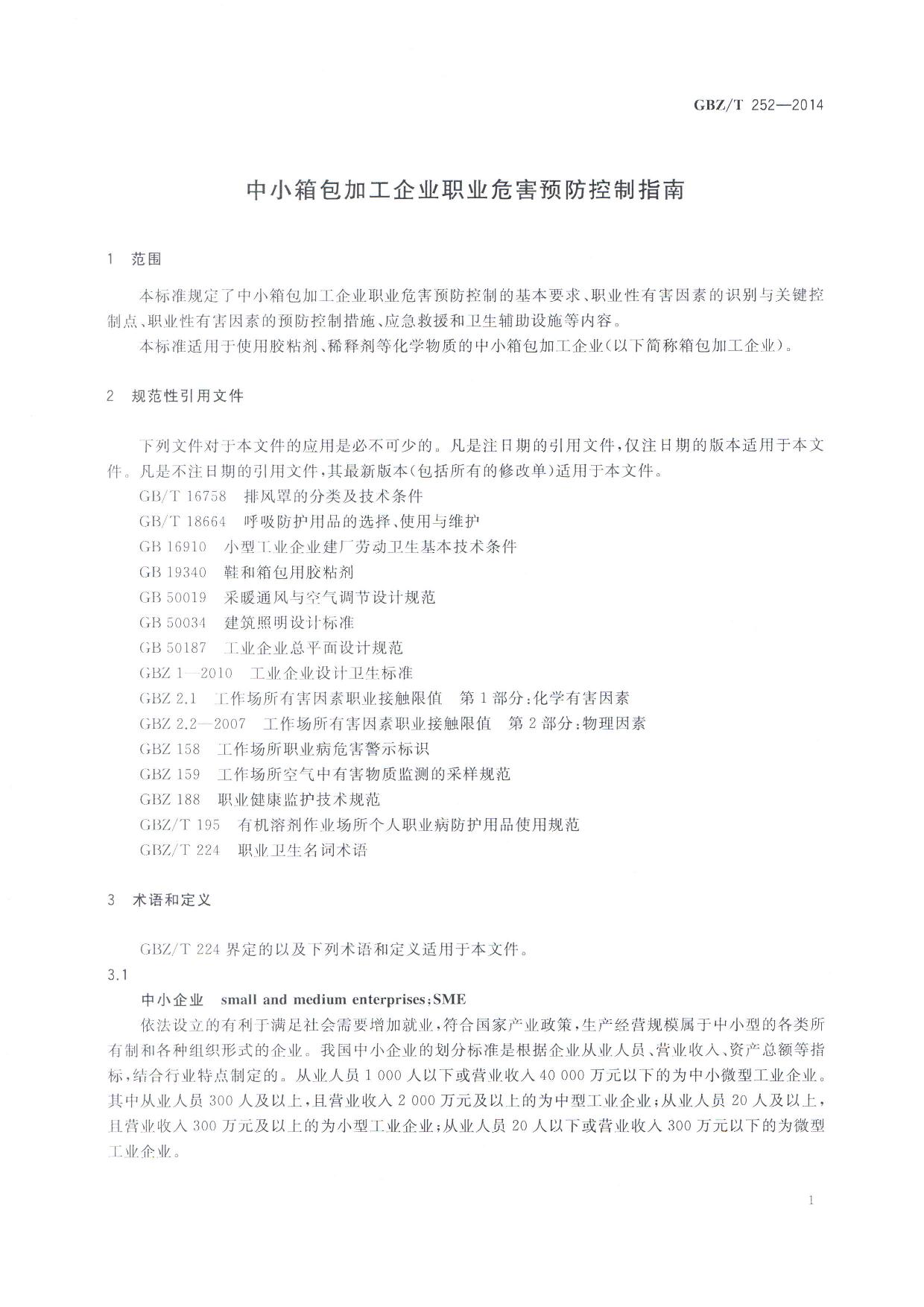 《中小箱包加工企业职业危害预防控制指南》(GBZ-T252-2014)
