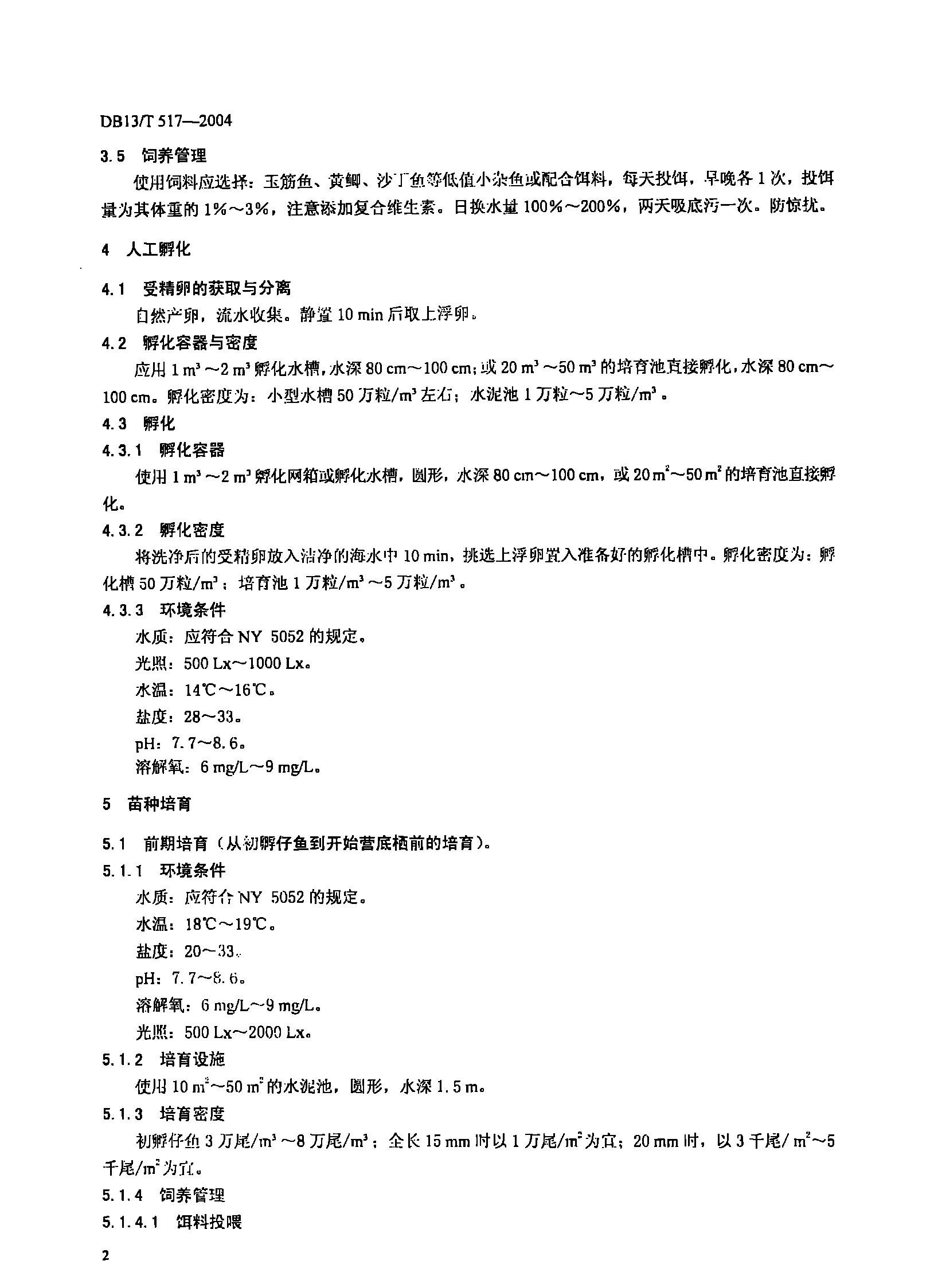 河北省牙鲆苗种繁育技术规范