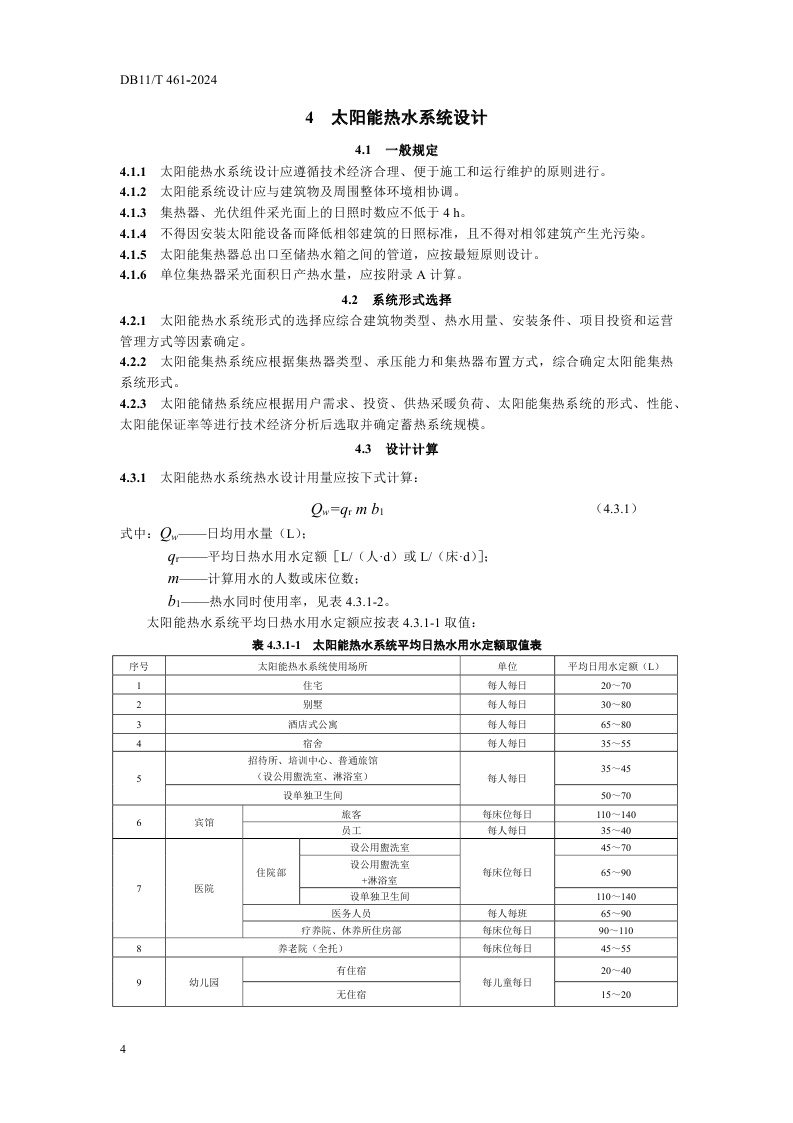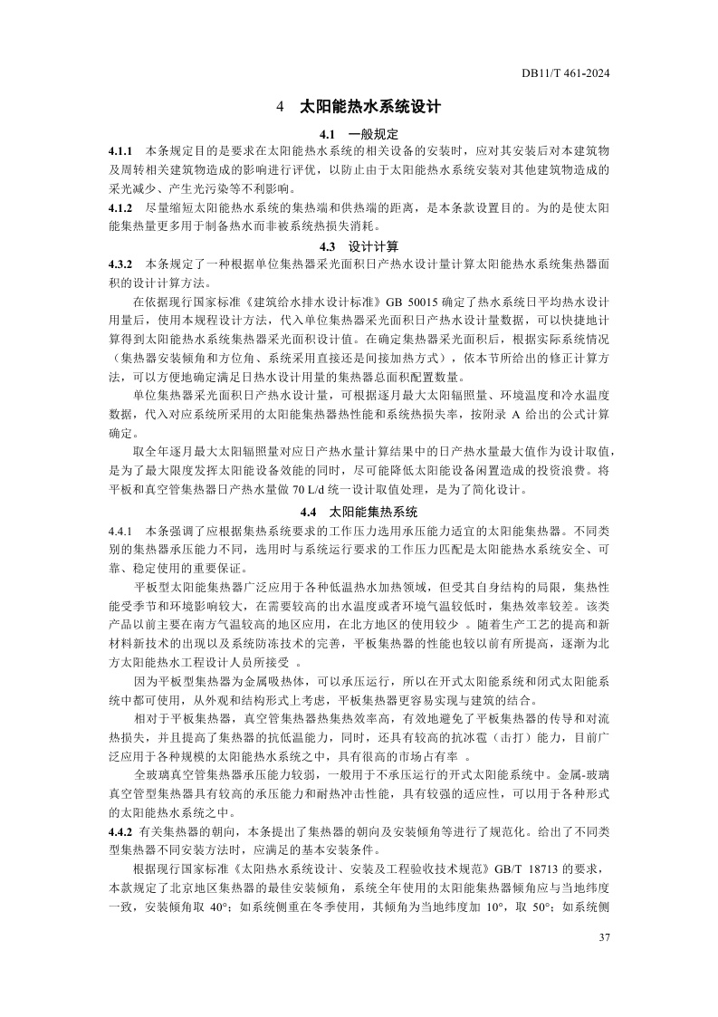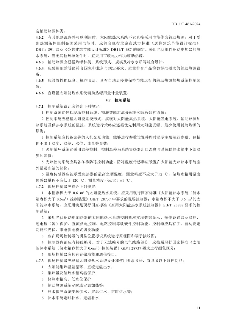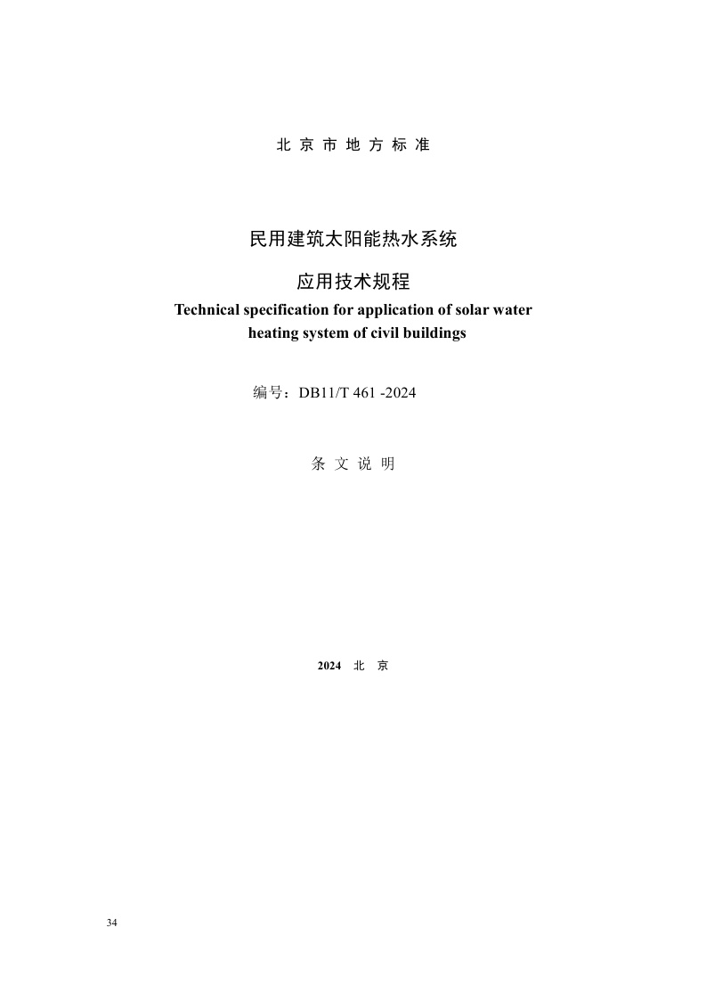 北京市《民用建筑太阳能热水系统应用技术规程》(DB11/T 461-2024)