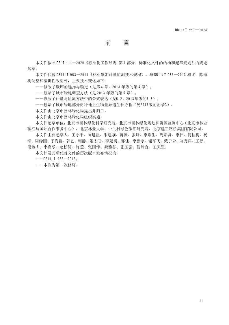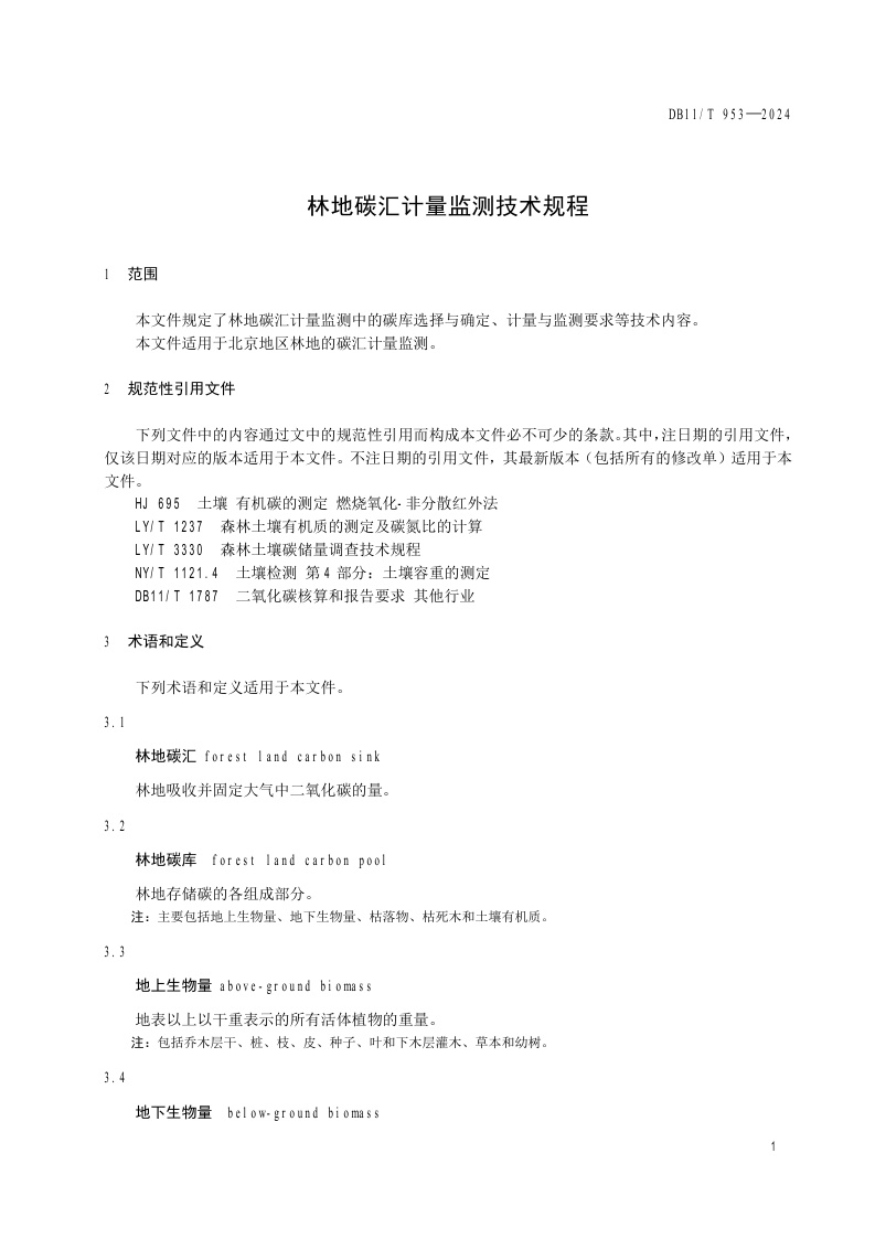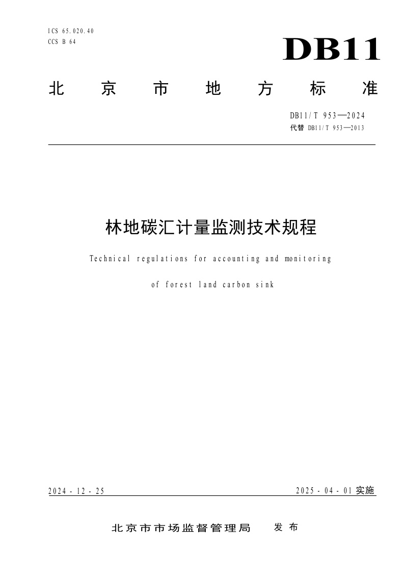 北京市《林地碳汇计量监测技术规程》(DB11/T 953-2024)