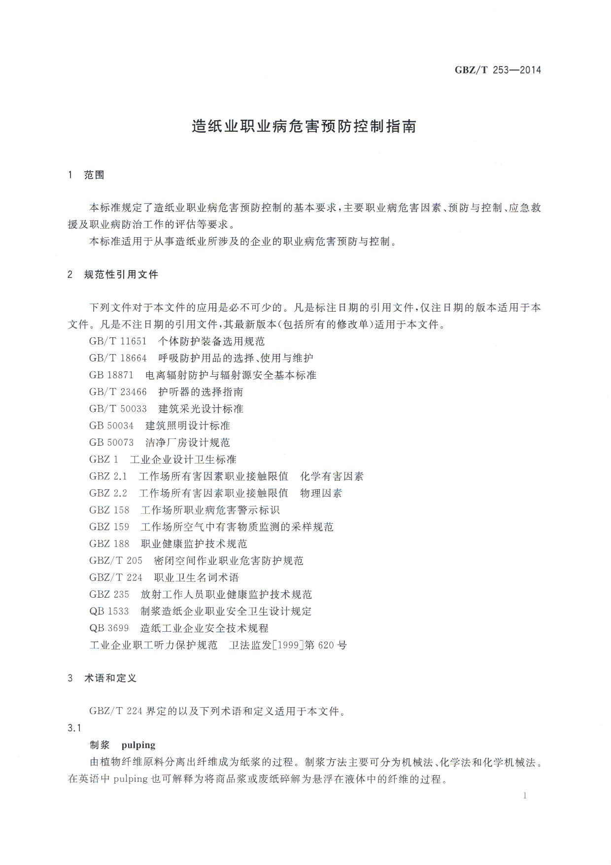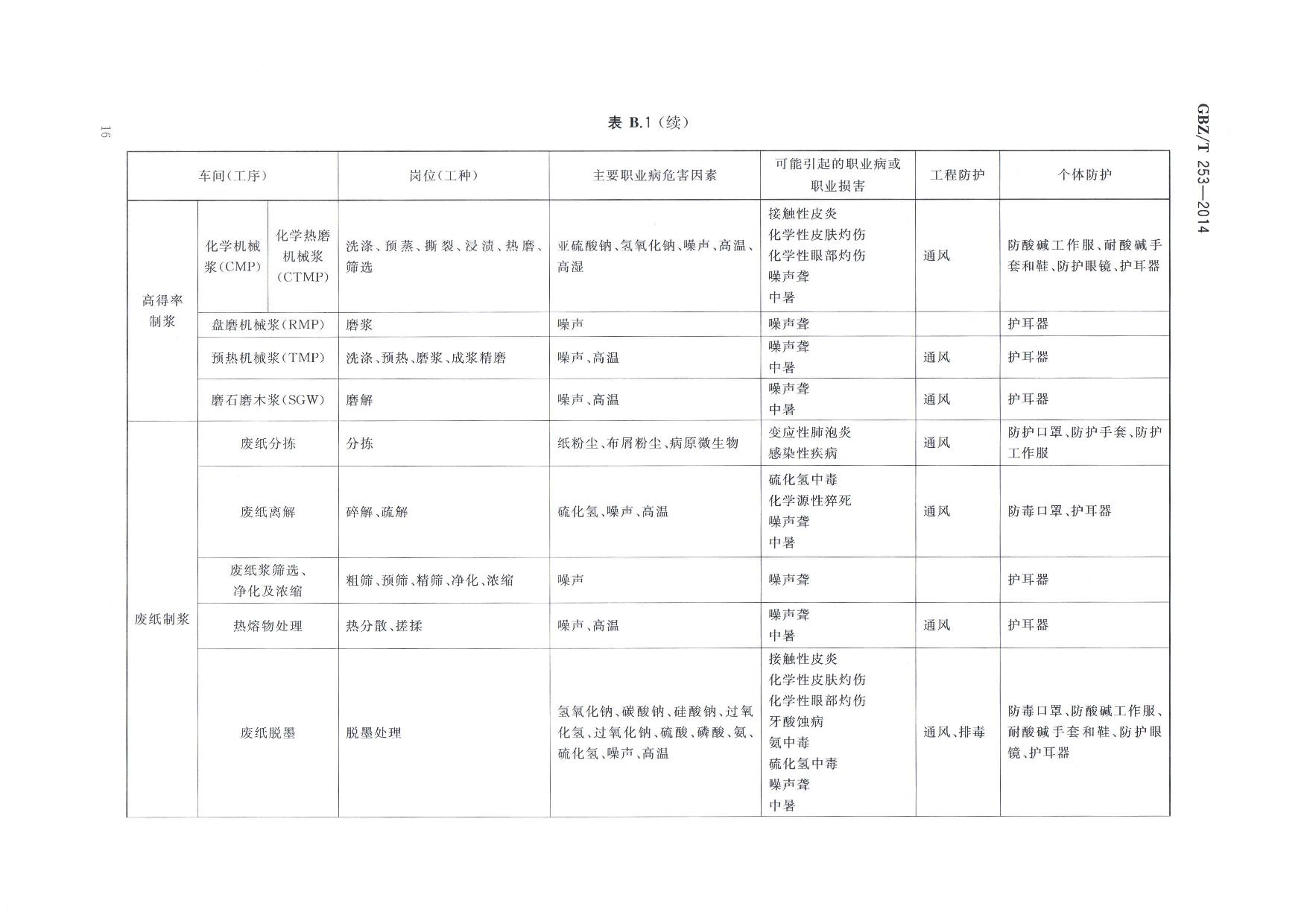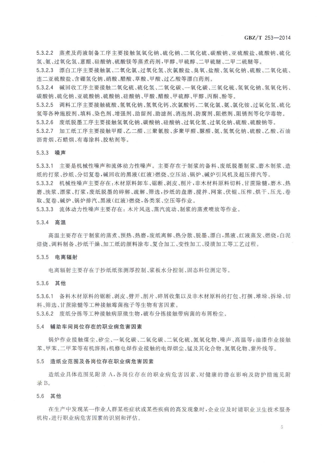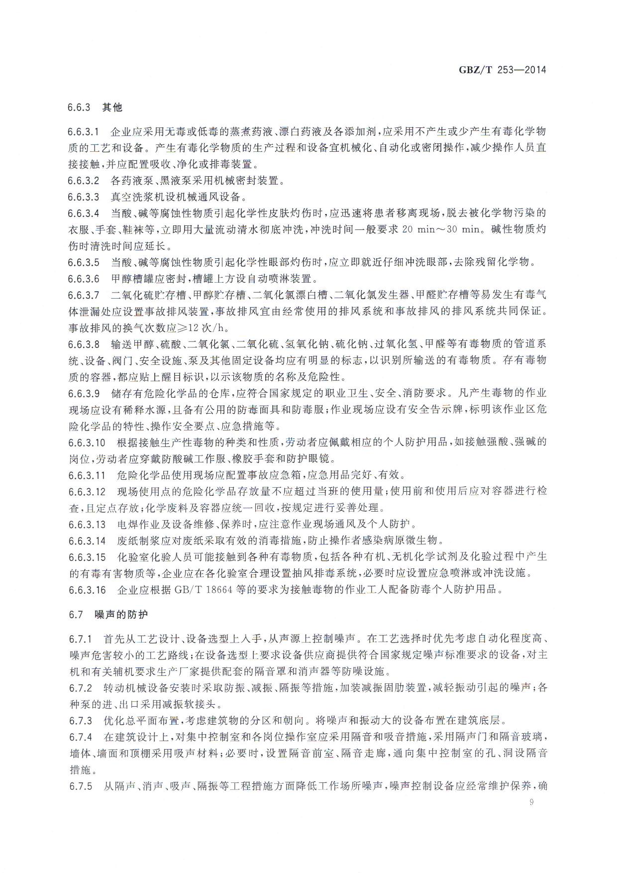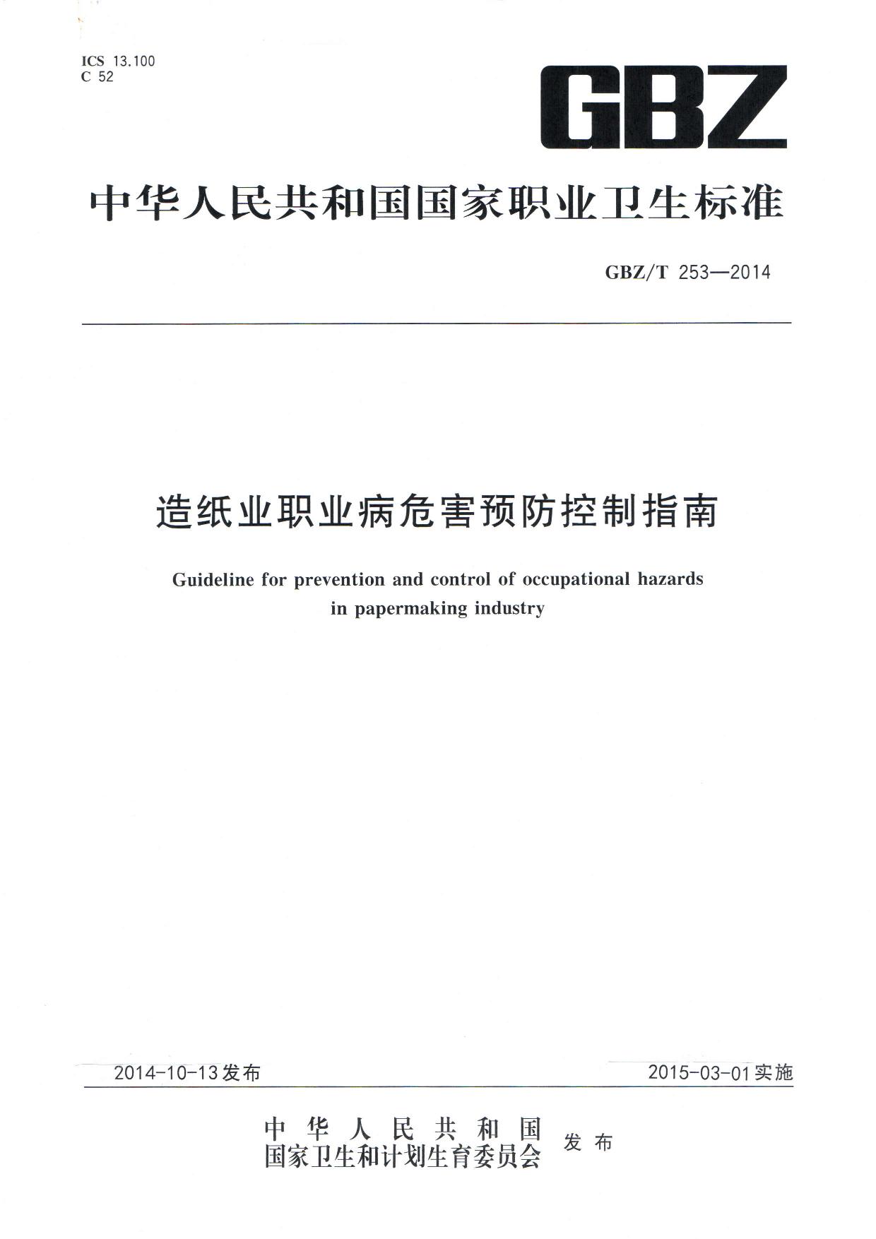 《造纸业职业病危害预防控制指南》(GBZ-T253-2014)