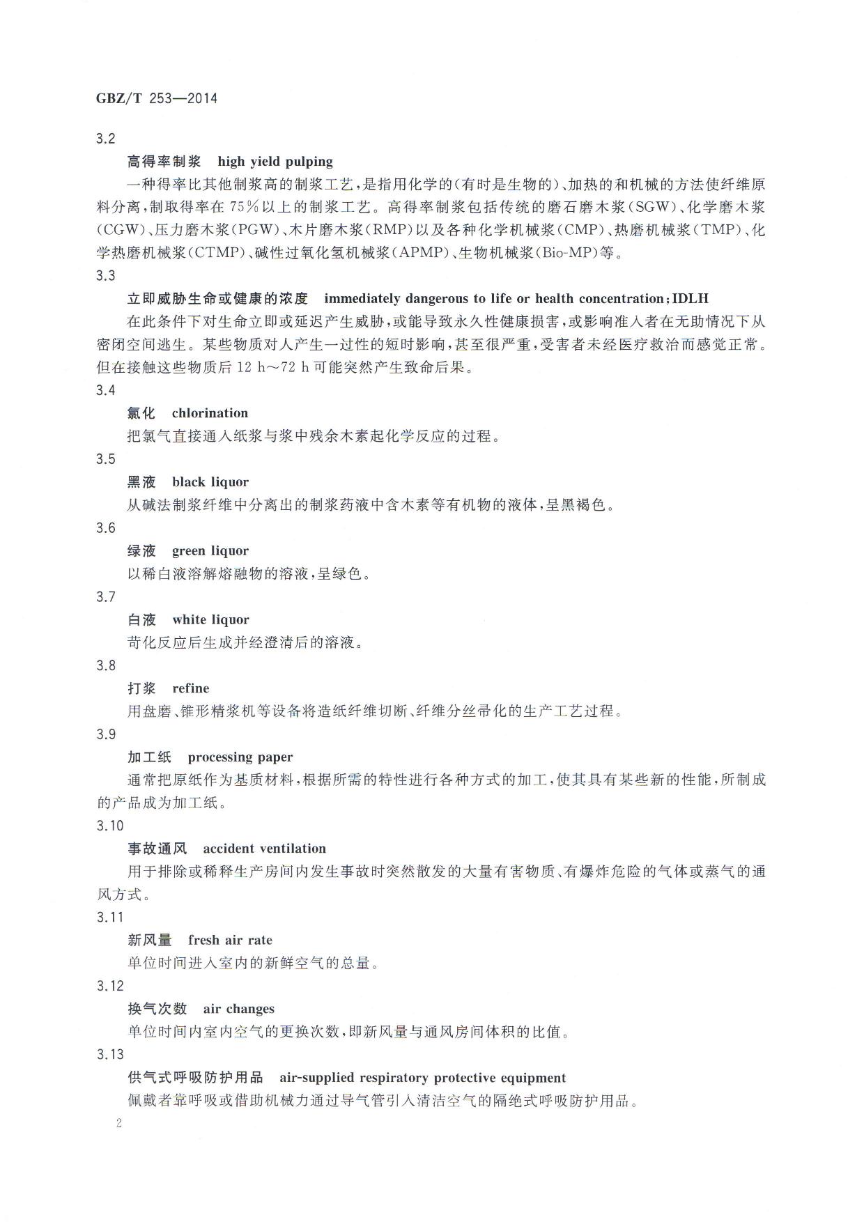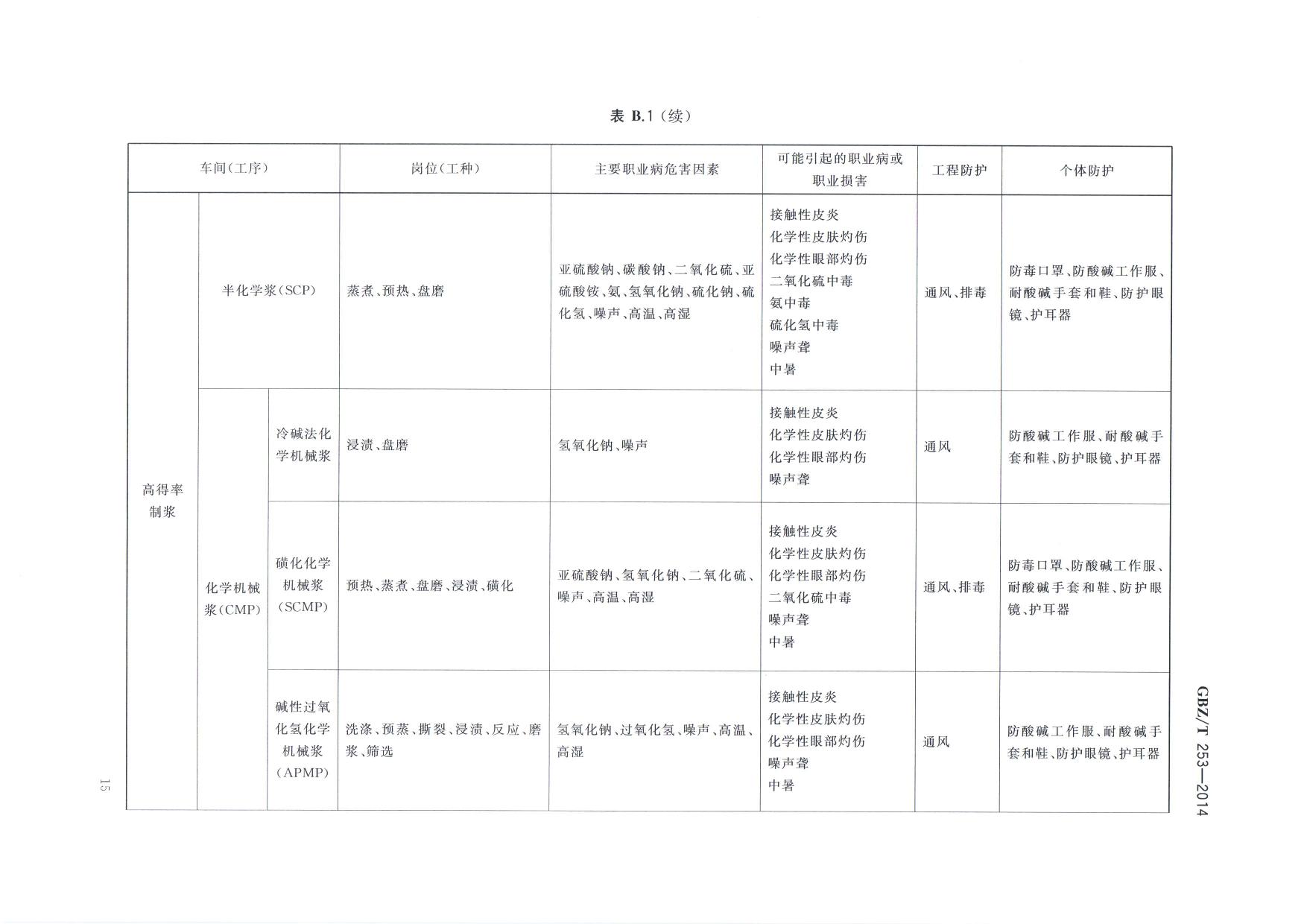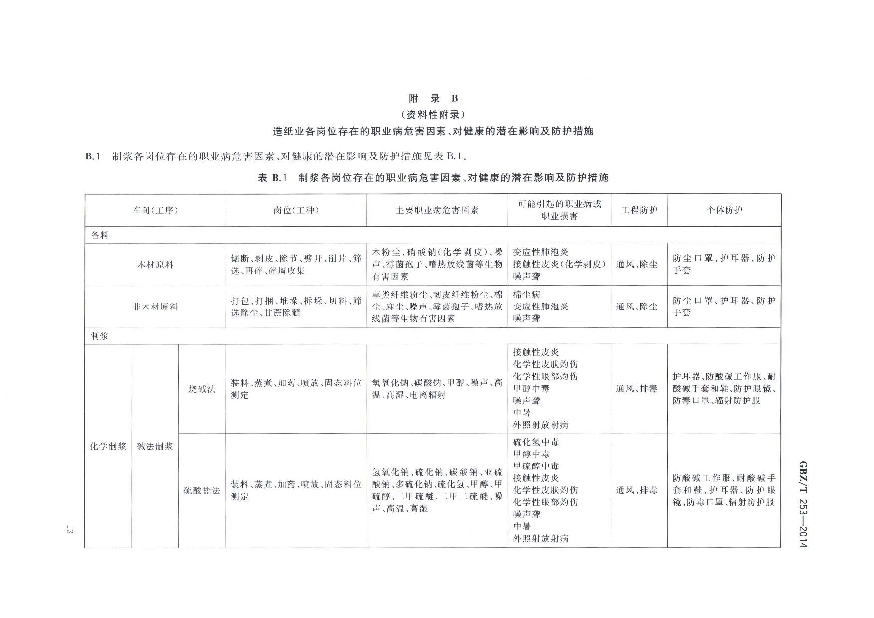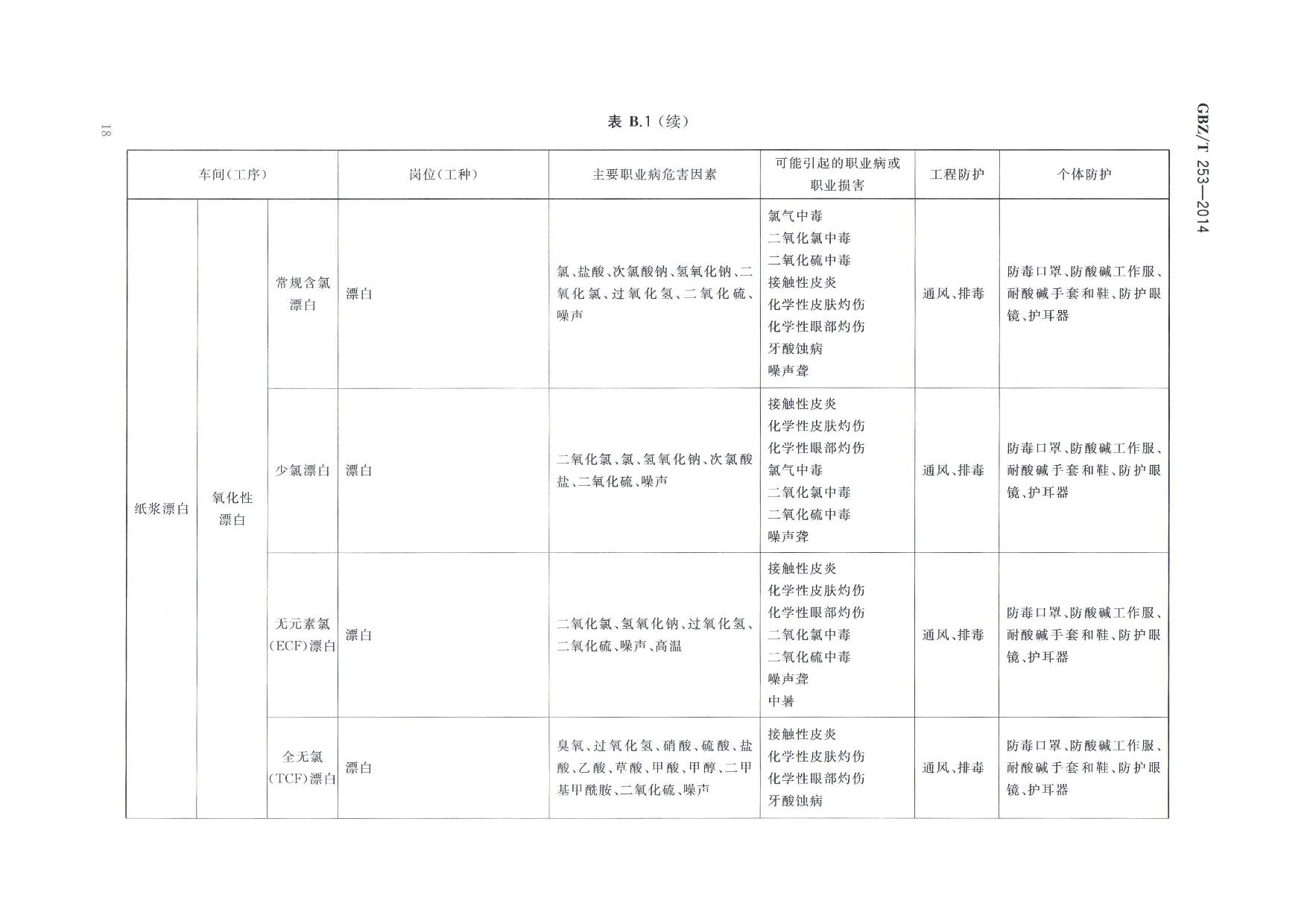 《造纸业职业病危害预防控制指南》(GBZ-T253-2014)