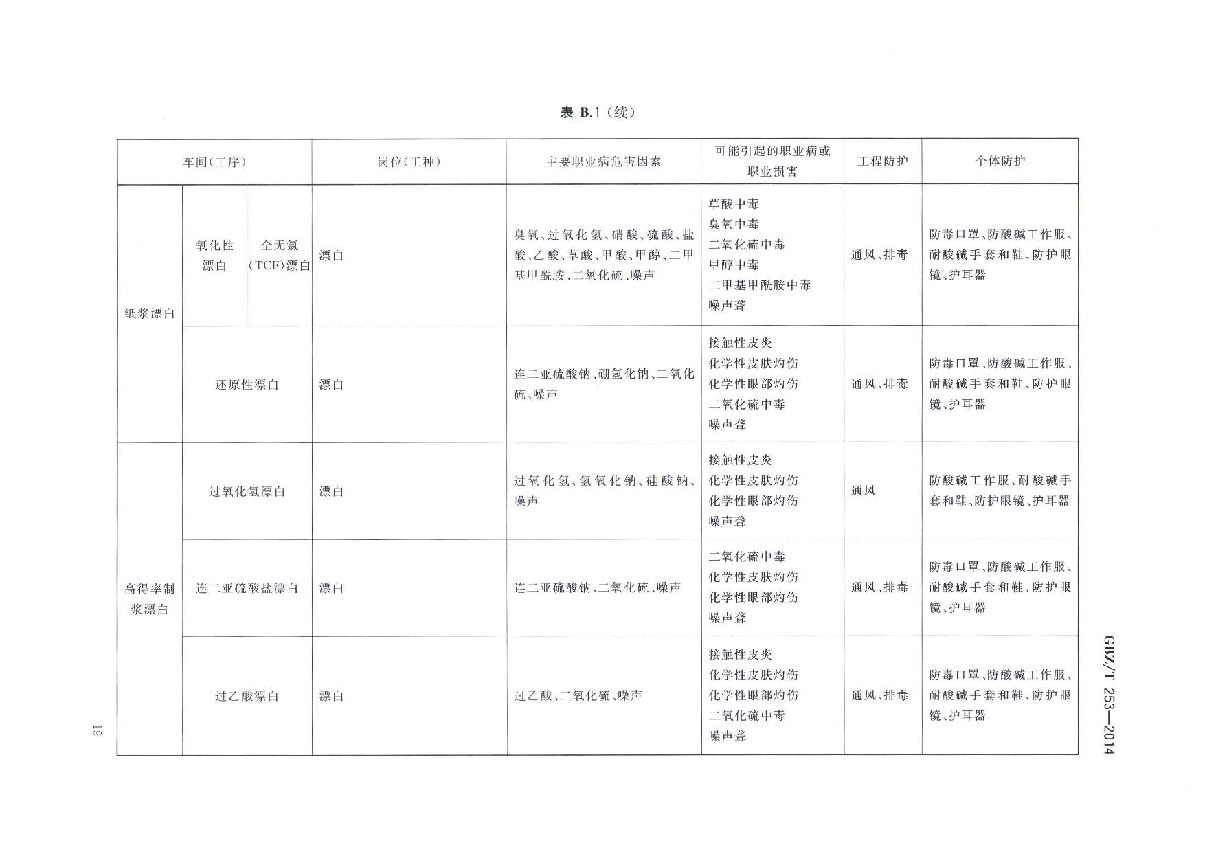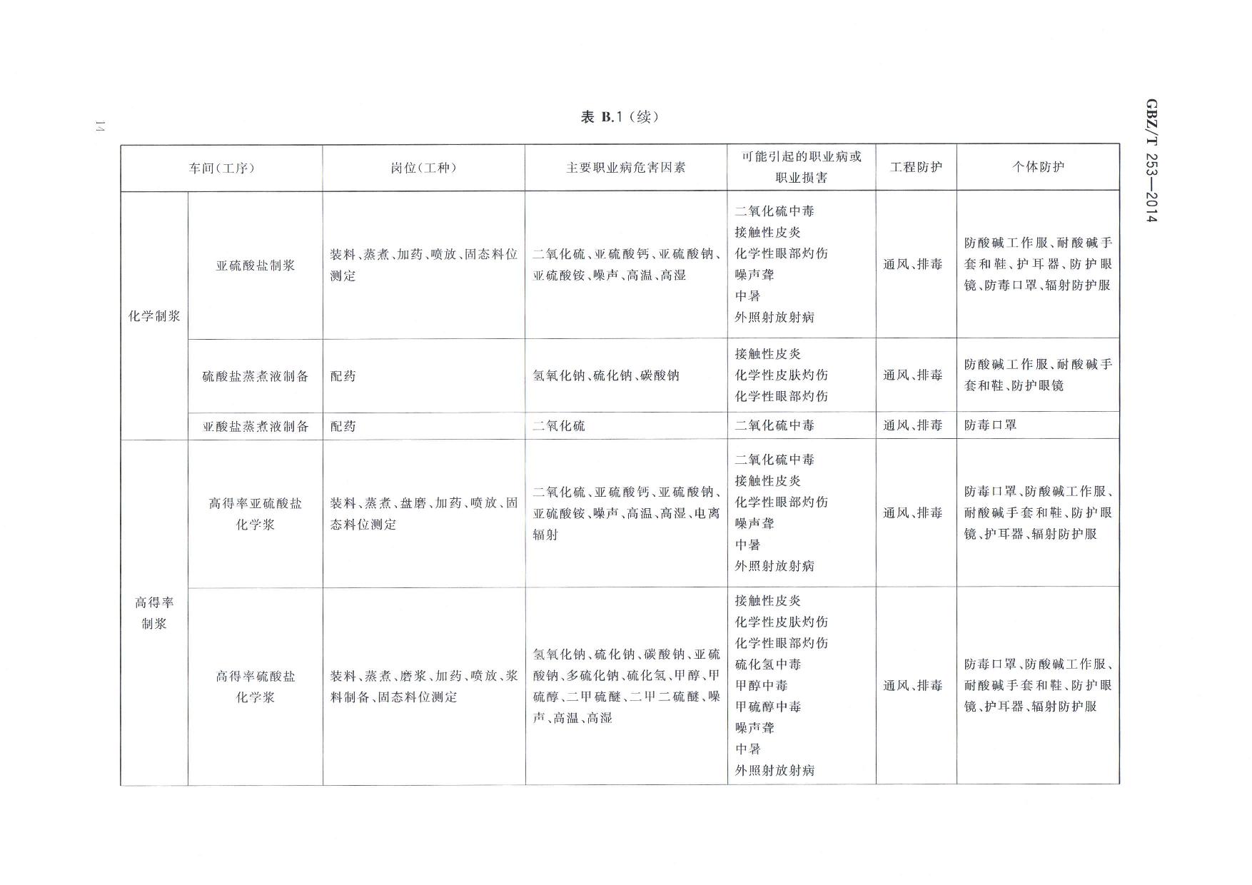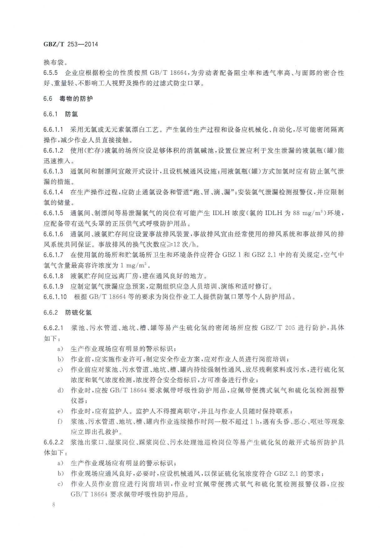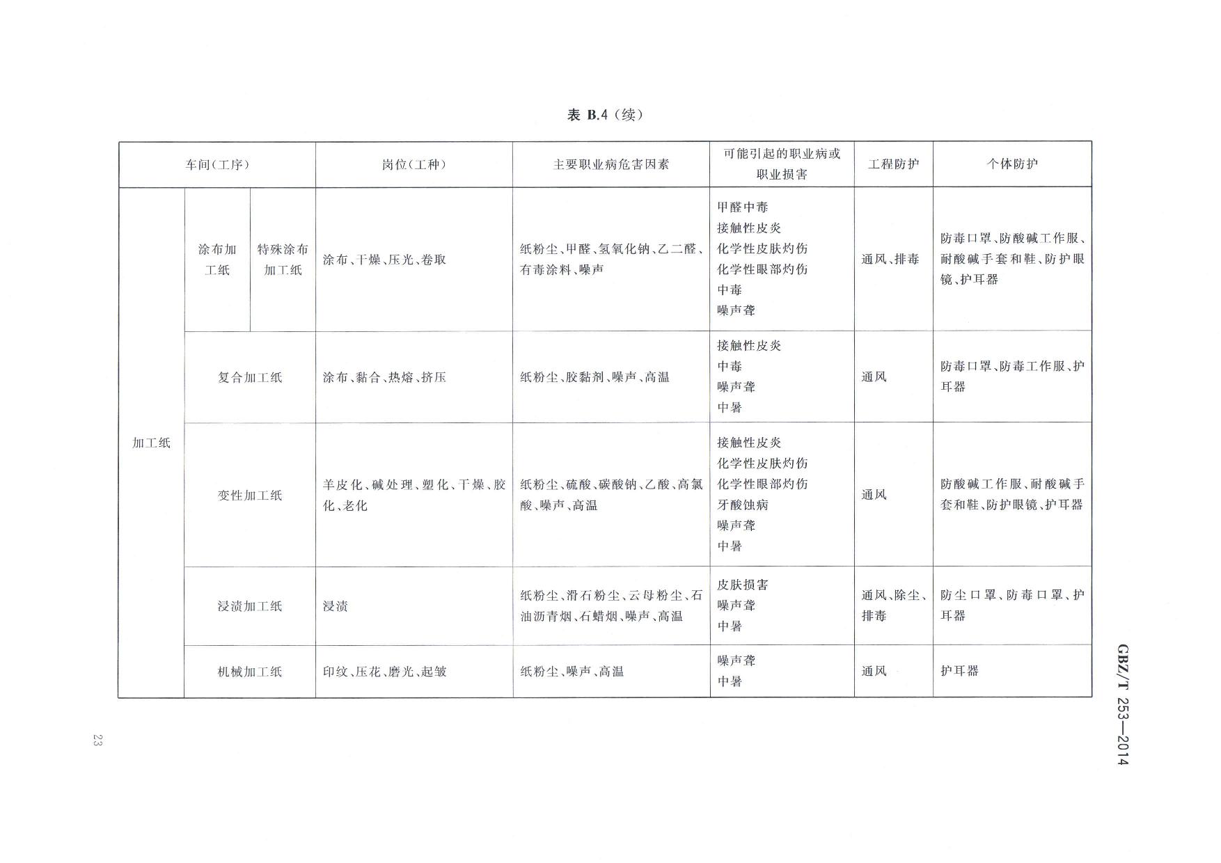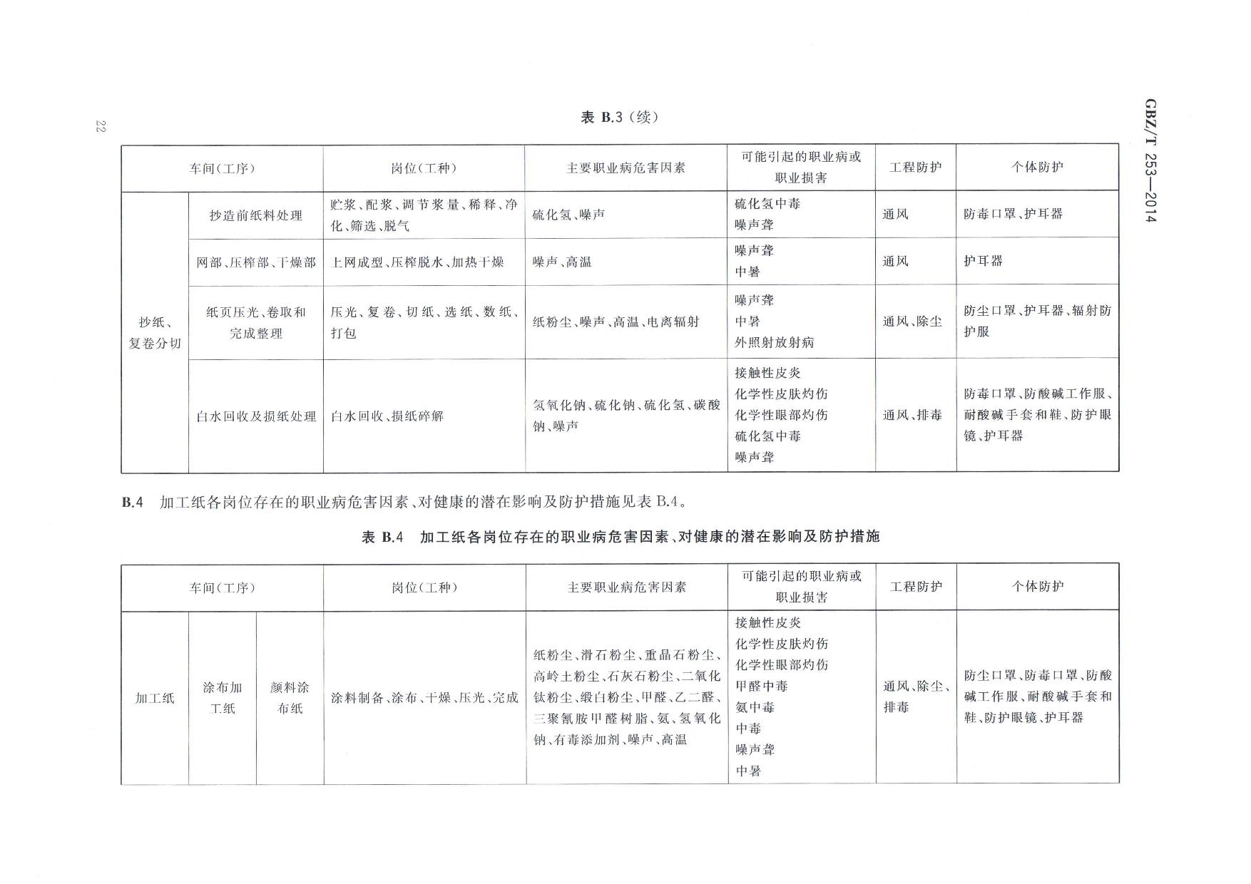 《造纸业职业病危害预防控制指南》(GBZ-T253-2014)