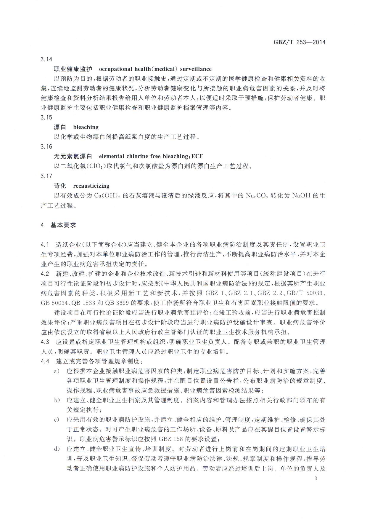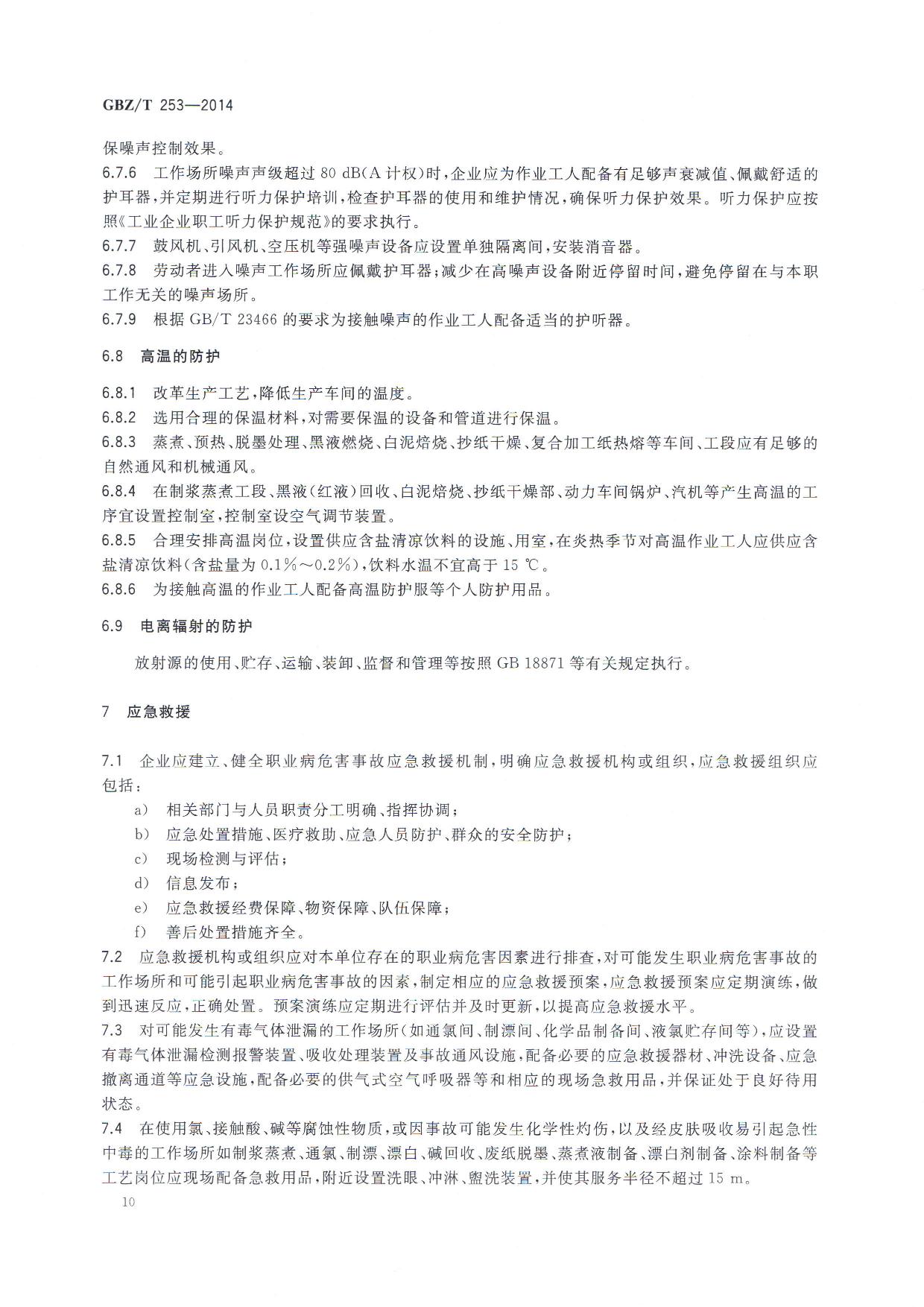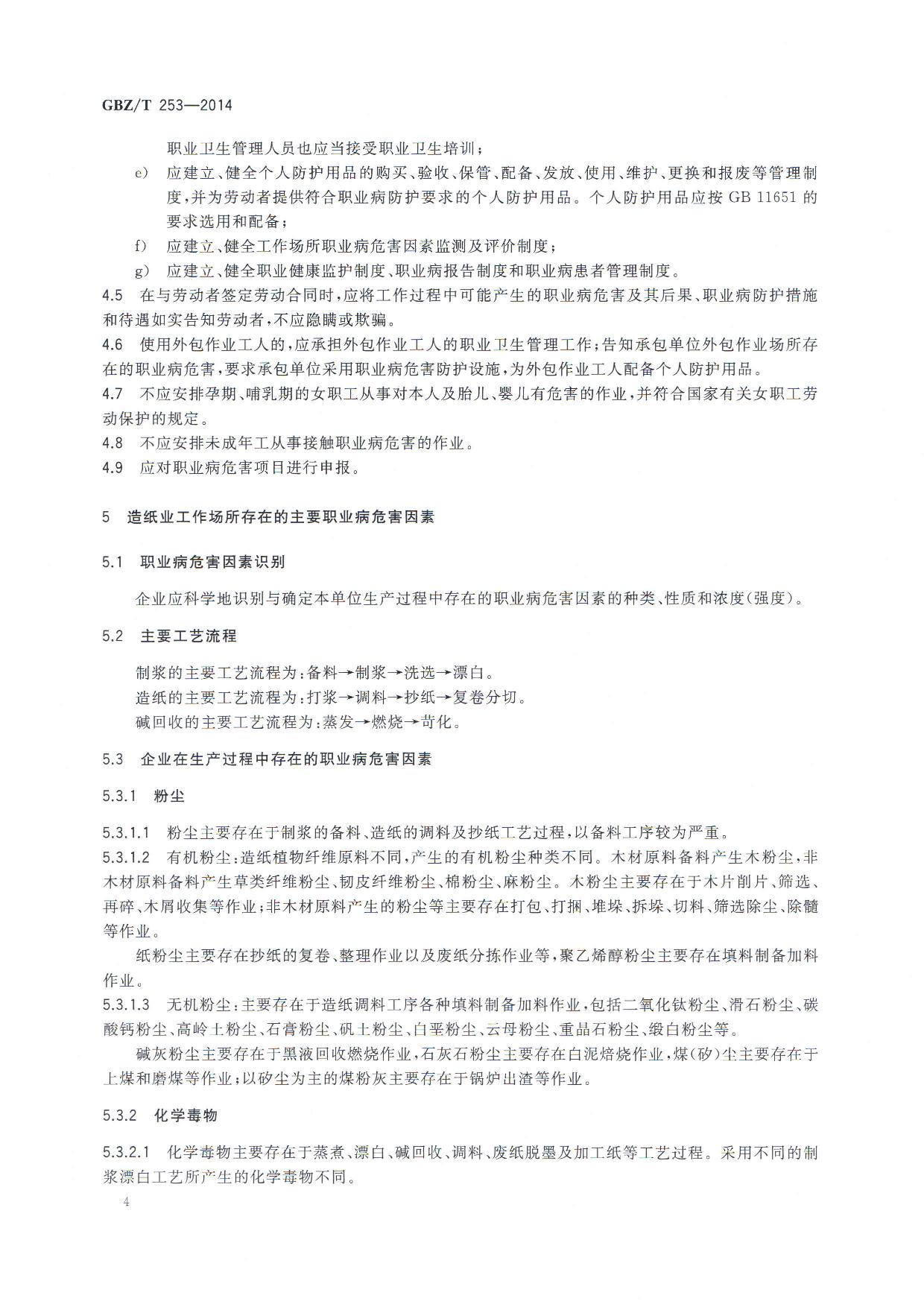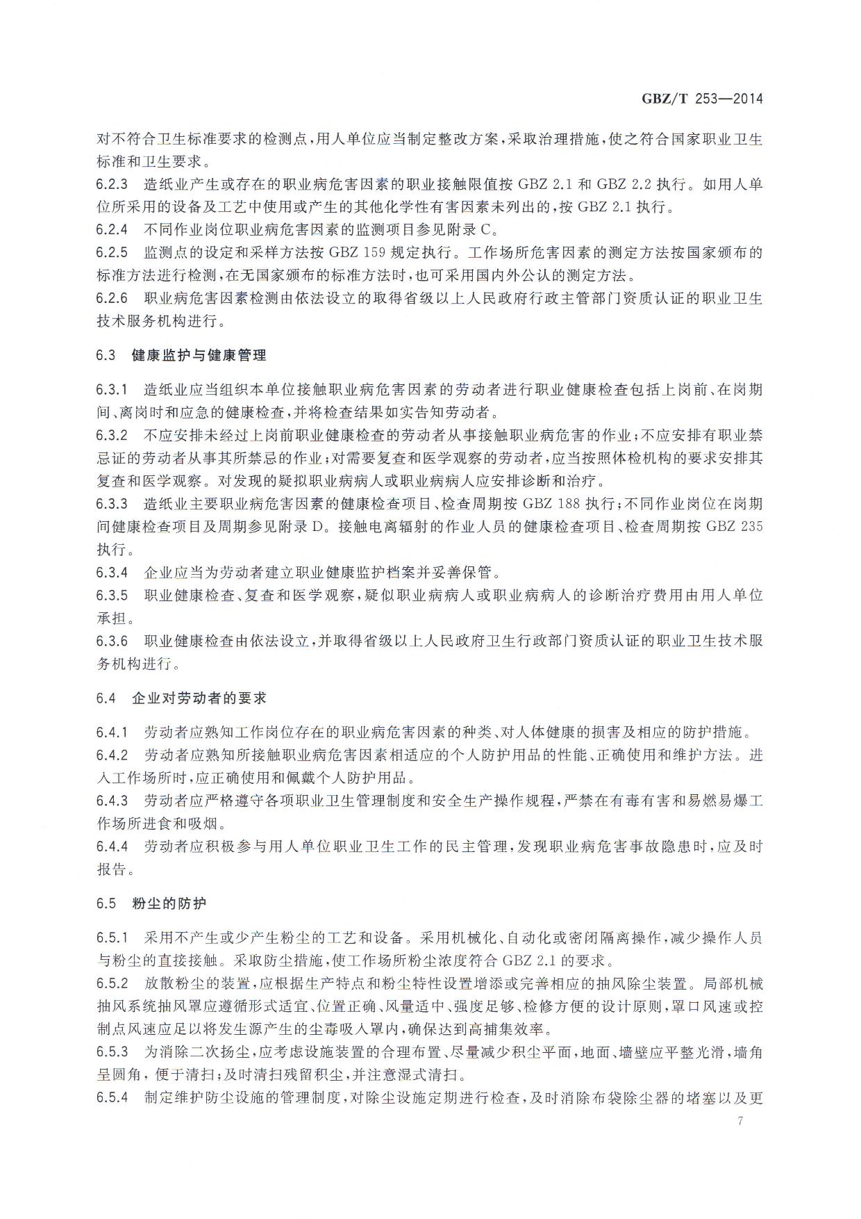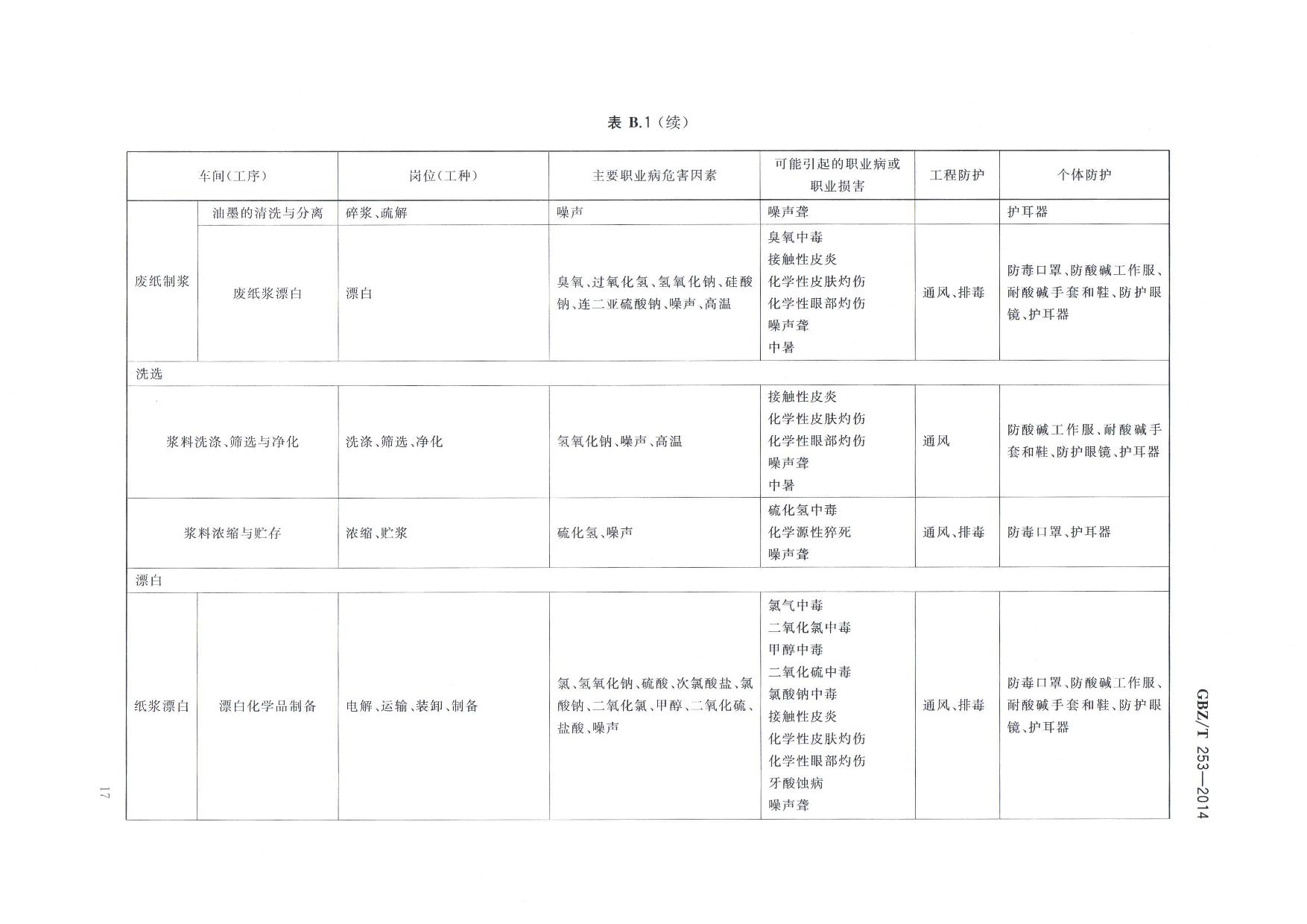 《造纸业职业病危害预防控制指南》(GBZ-T253-2014)