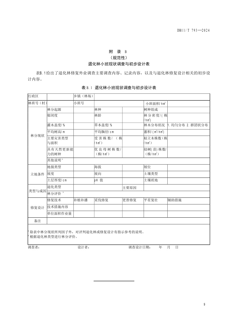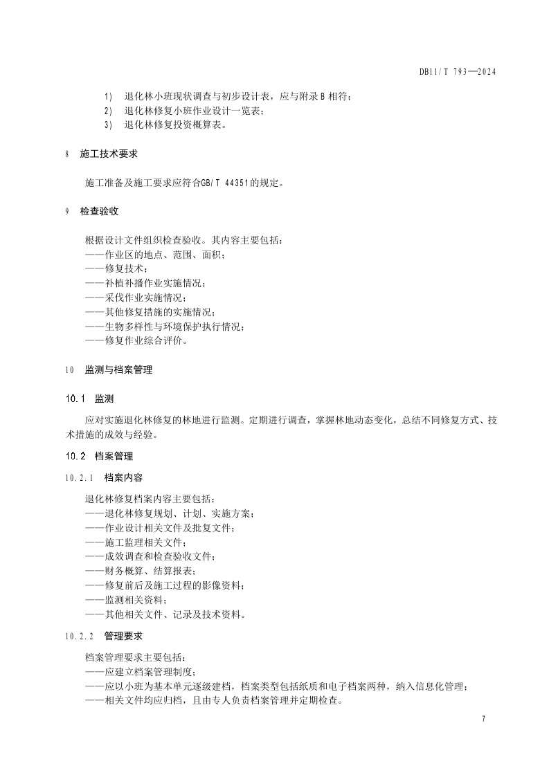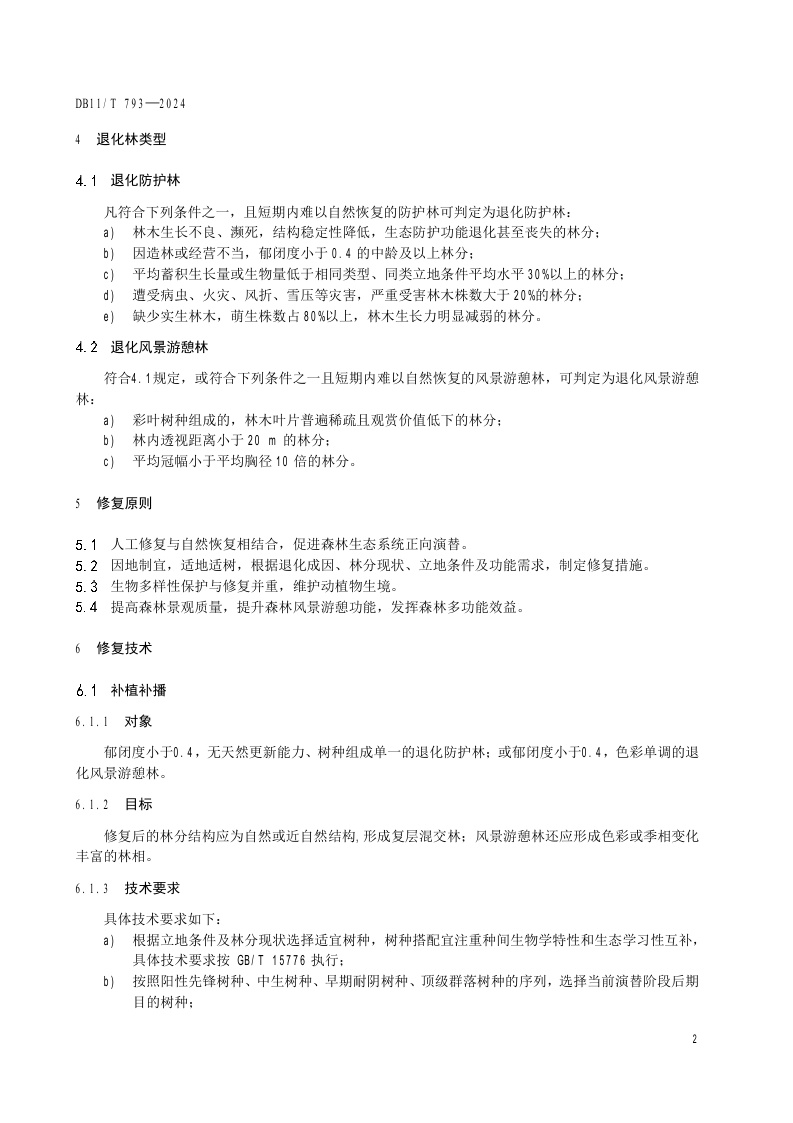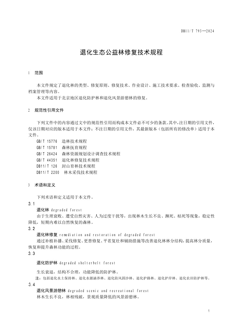 北京市《退化生态公益林修复技术规程》(DB11/T 793-2024)