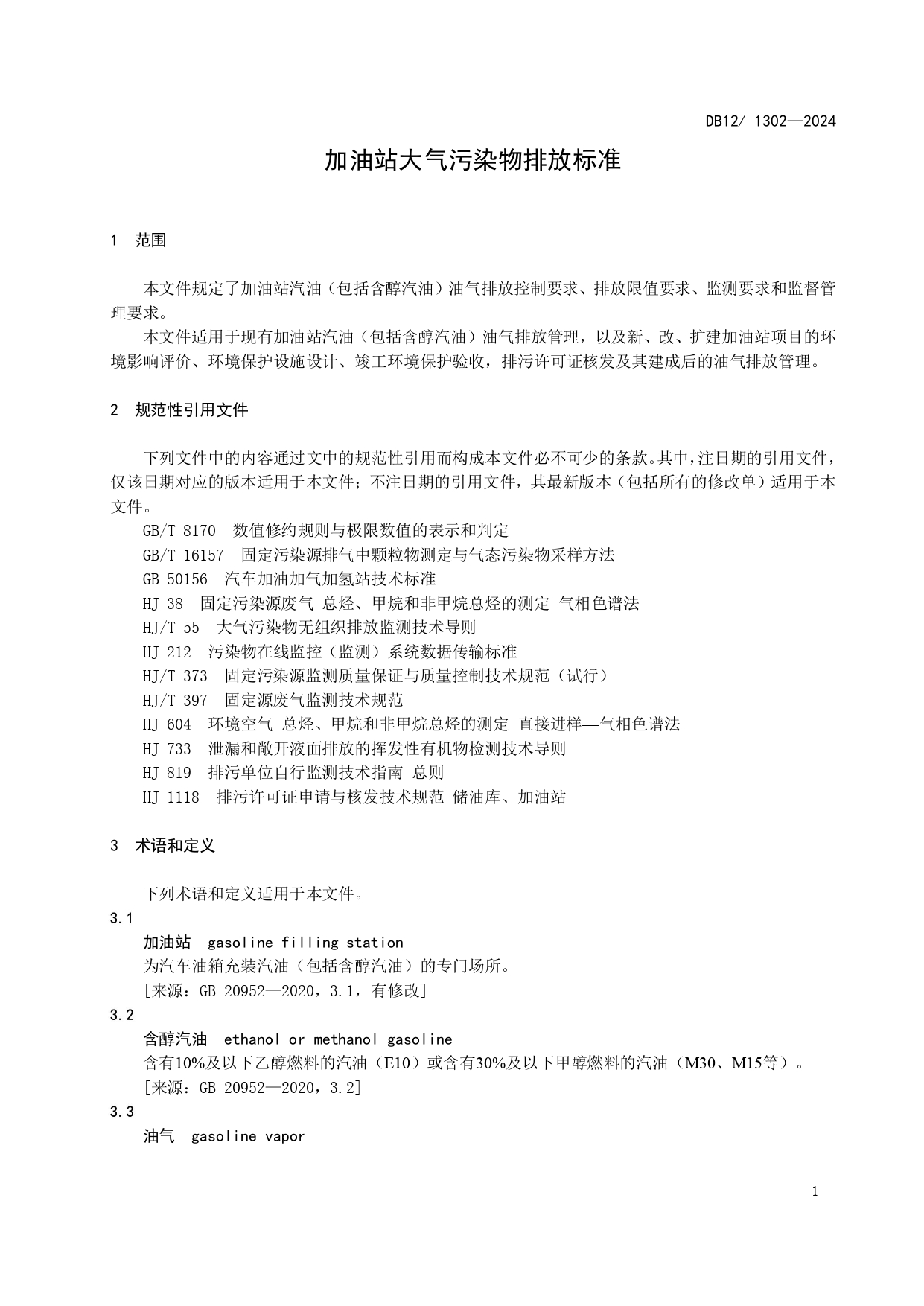 加油站大气污染物排放标准DB12/ 1302-2024