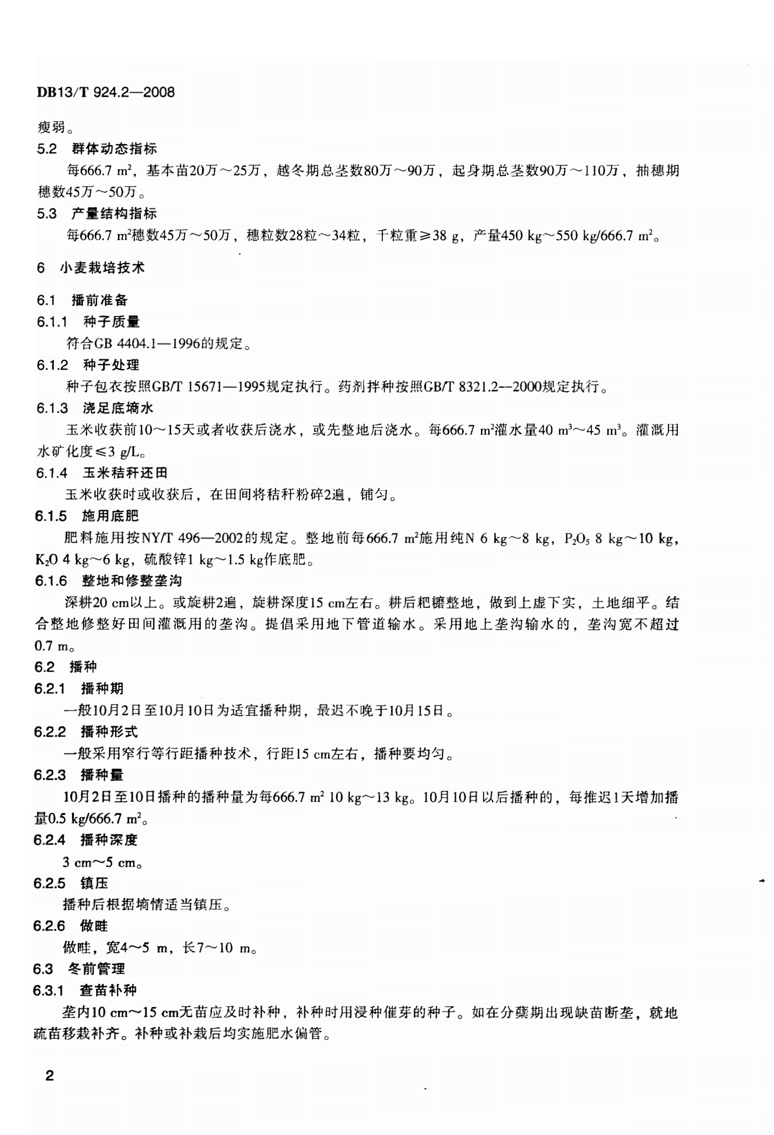 河北省小麦玉米节水、丰产一体化栽培技术规程 第2部分: 黑龙港地区