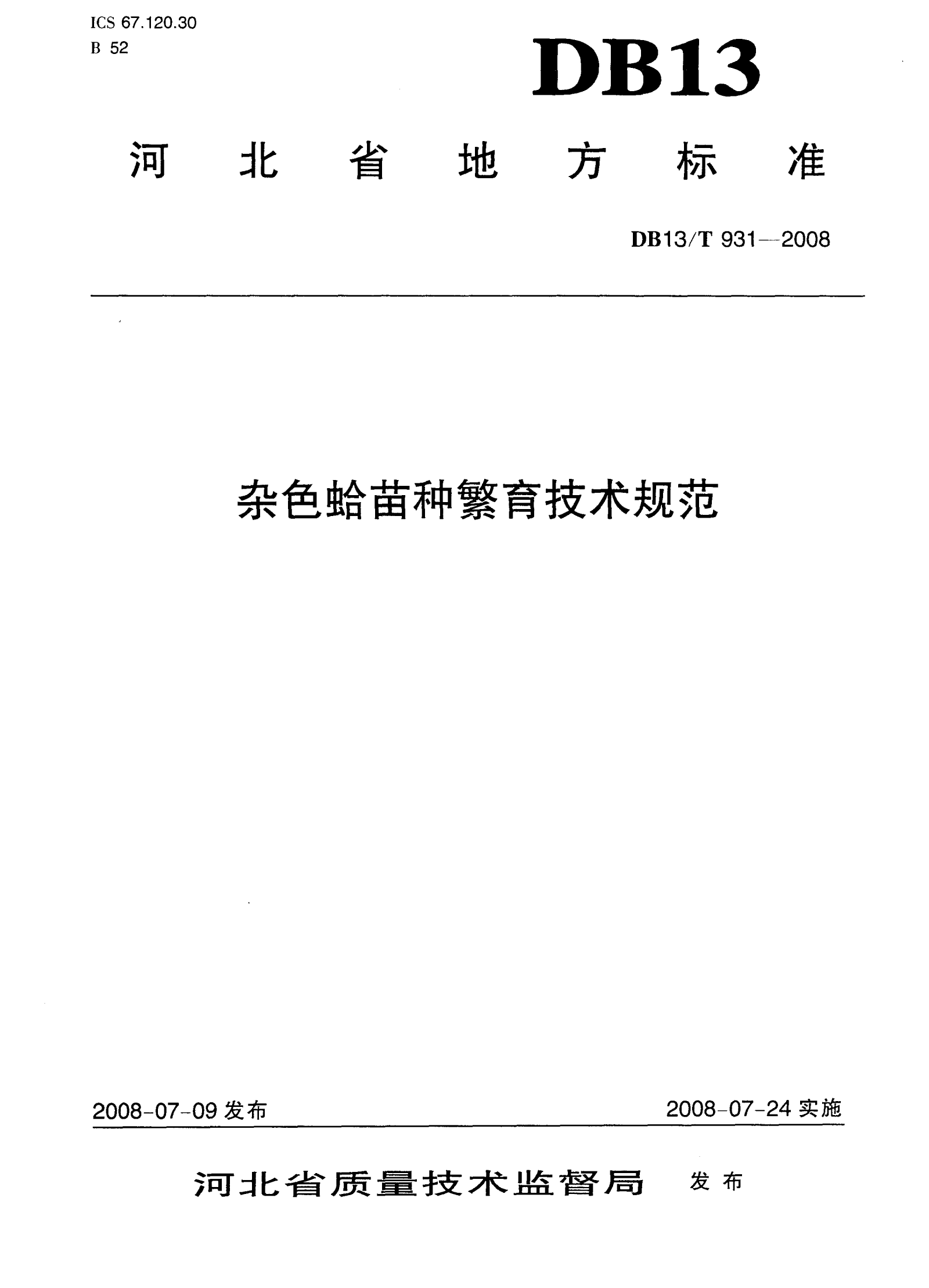 河北省杂色蛤苗种繁育技术规范