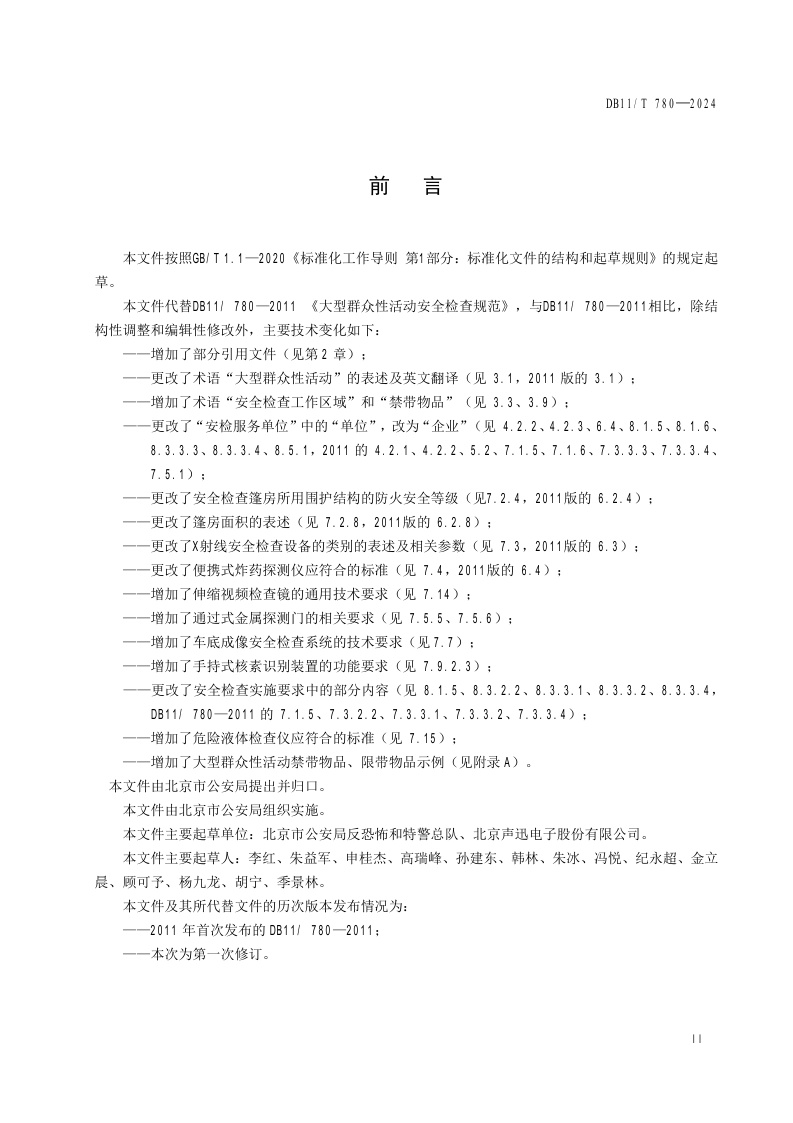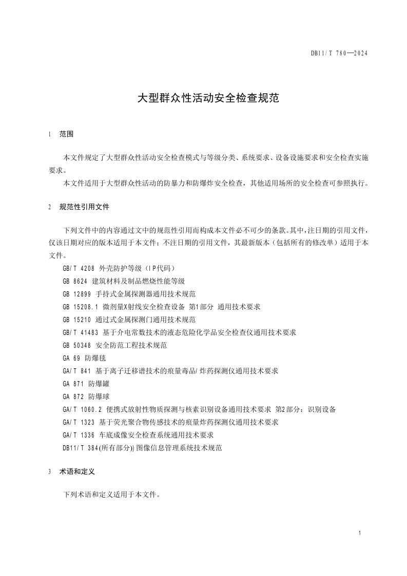 北京市《大型群众性活动安全检查规范》(DB11/T 780-2024)