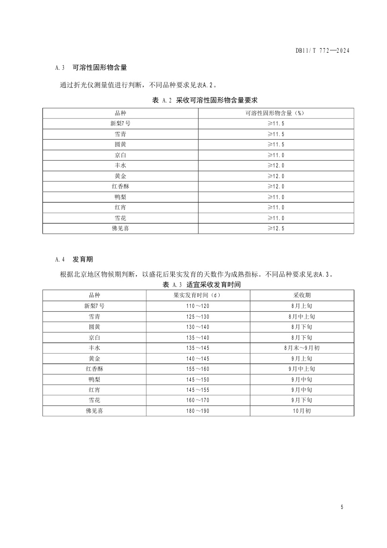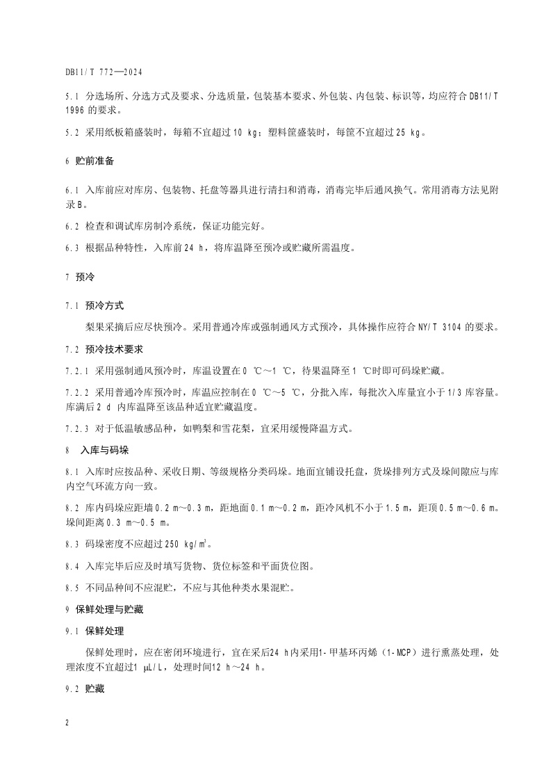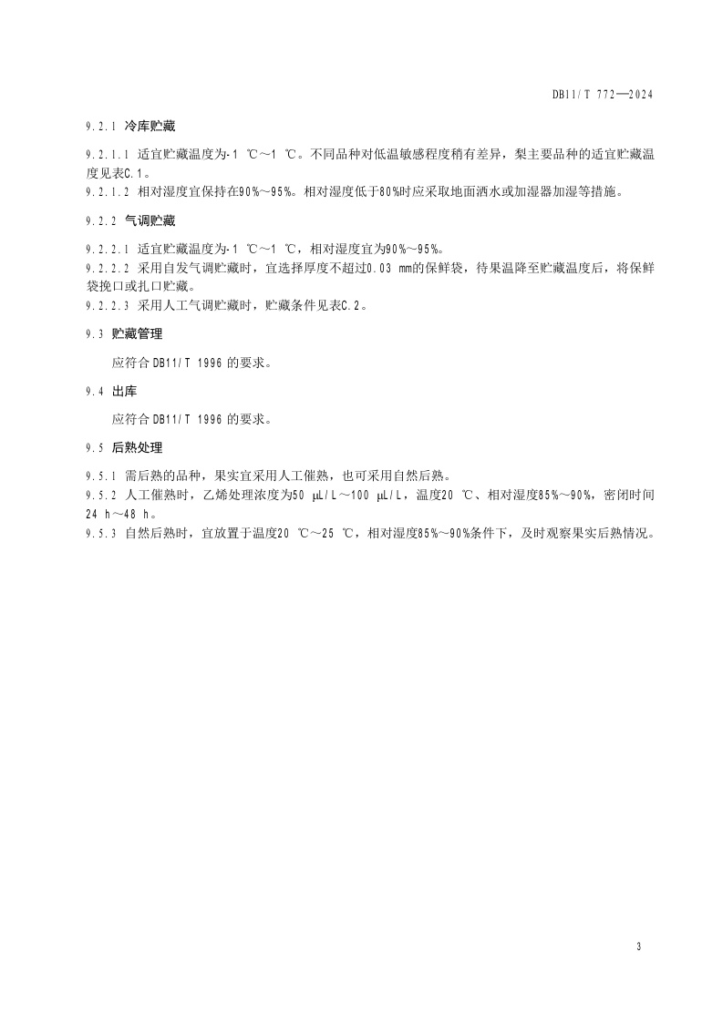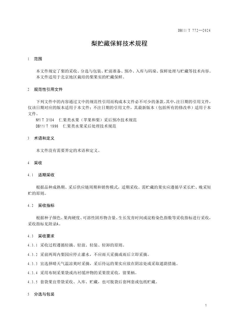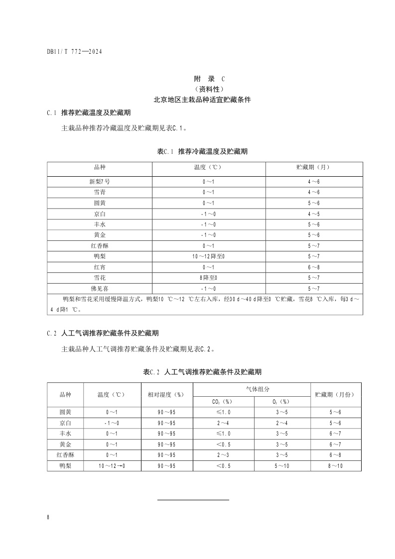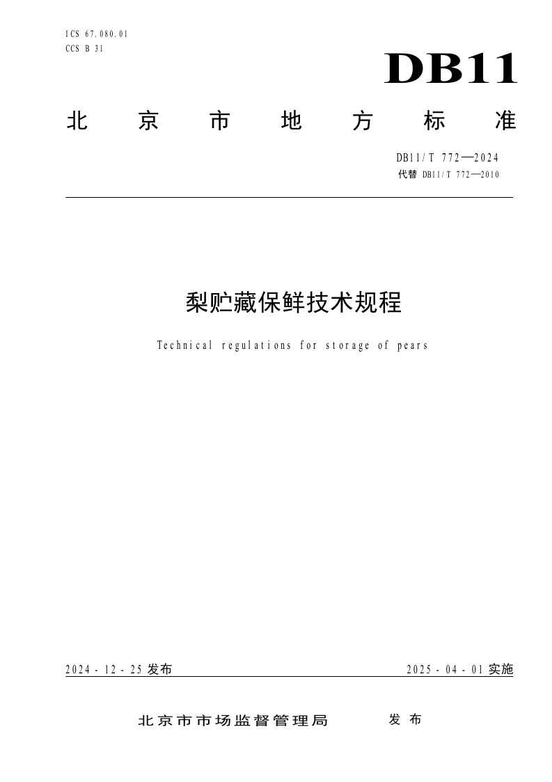 北京市《梨贮藏保鲜技术规程》(DB11/T 772-2024)