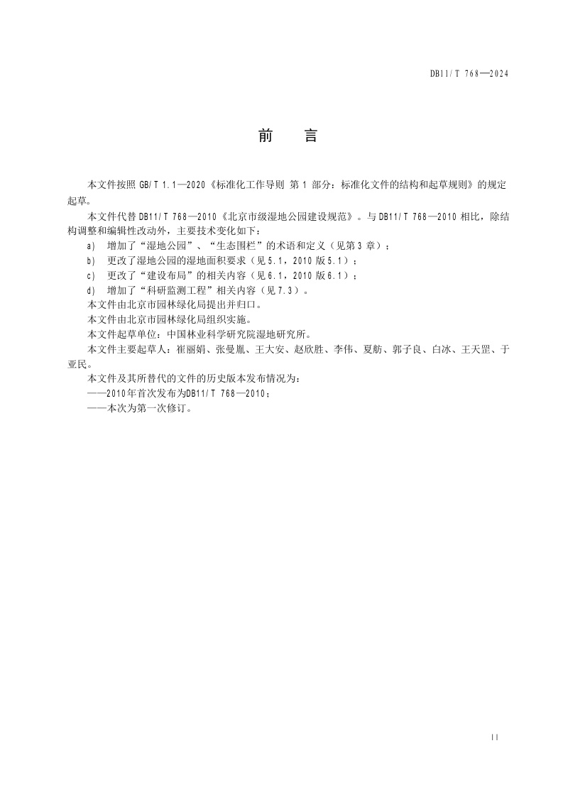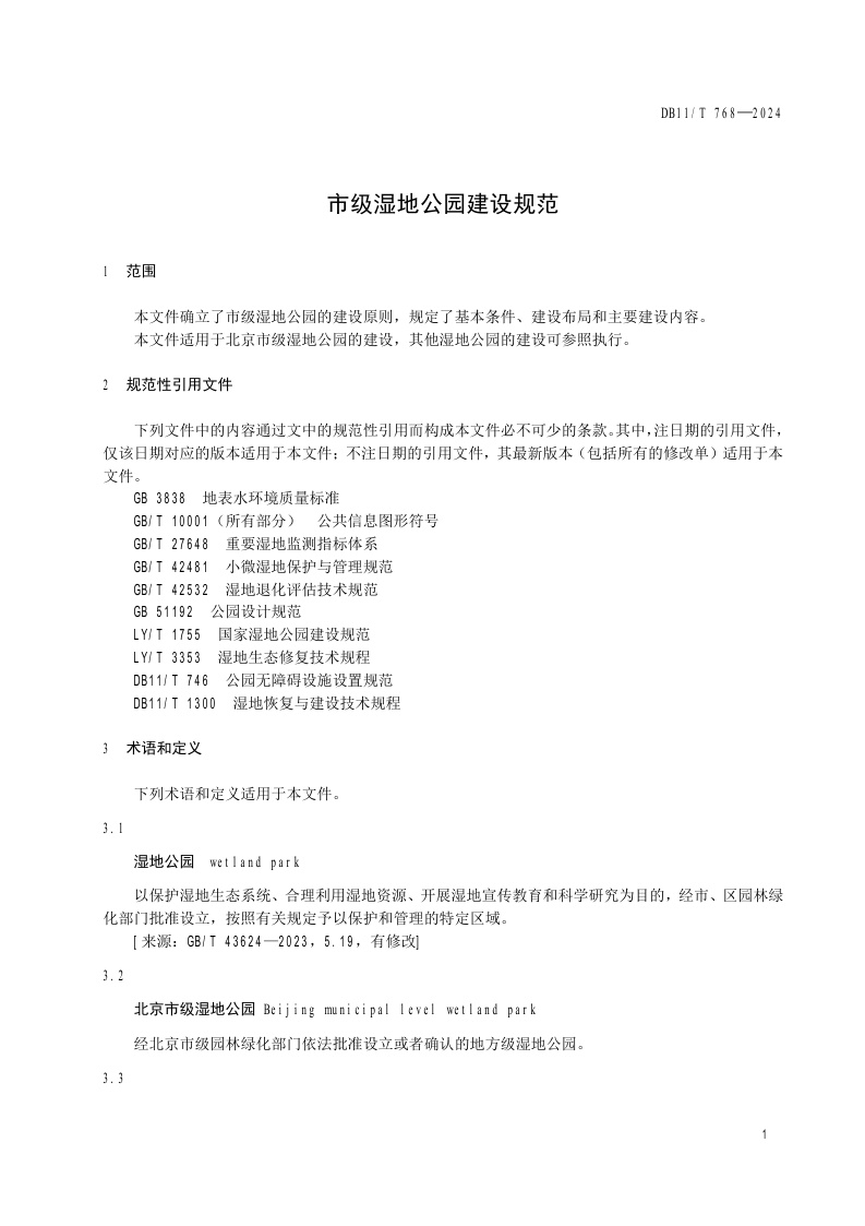 北京市《市级湿地公园建设规范》(DB11/T 768-2024)