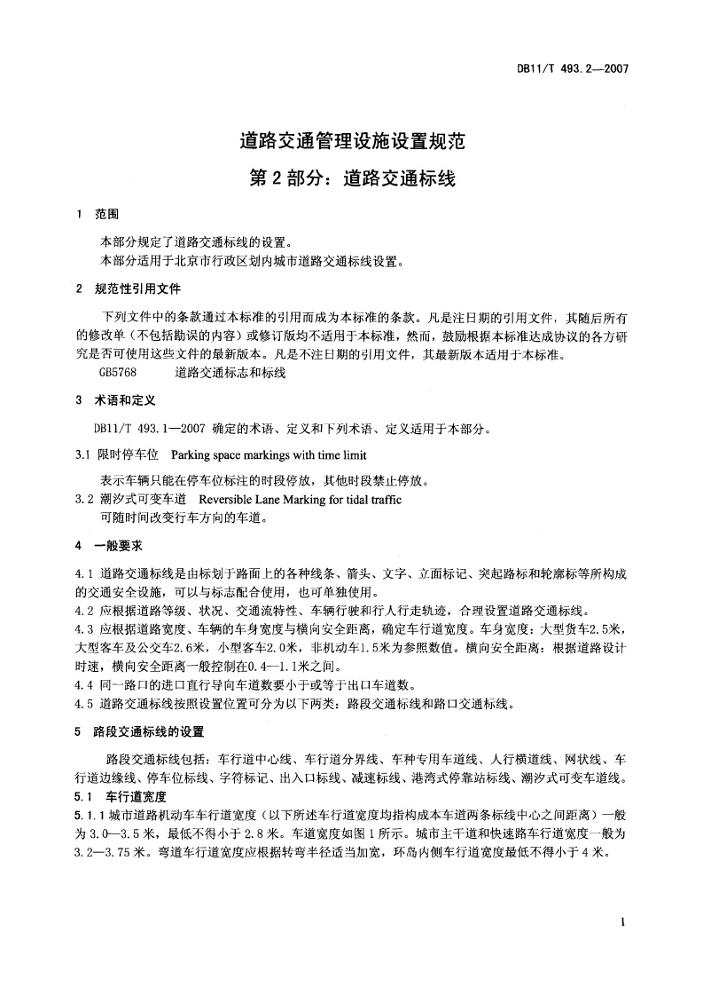 北京市《道路交通管理设施设置规范 第2部分: 道路交通标线》(DB11/T 493.2-2007)