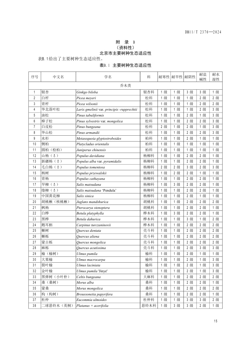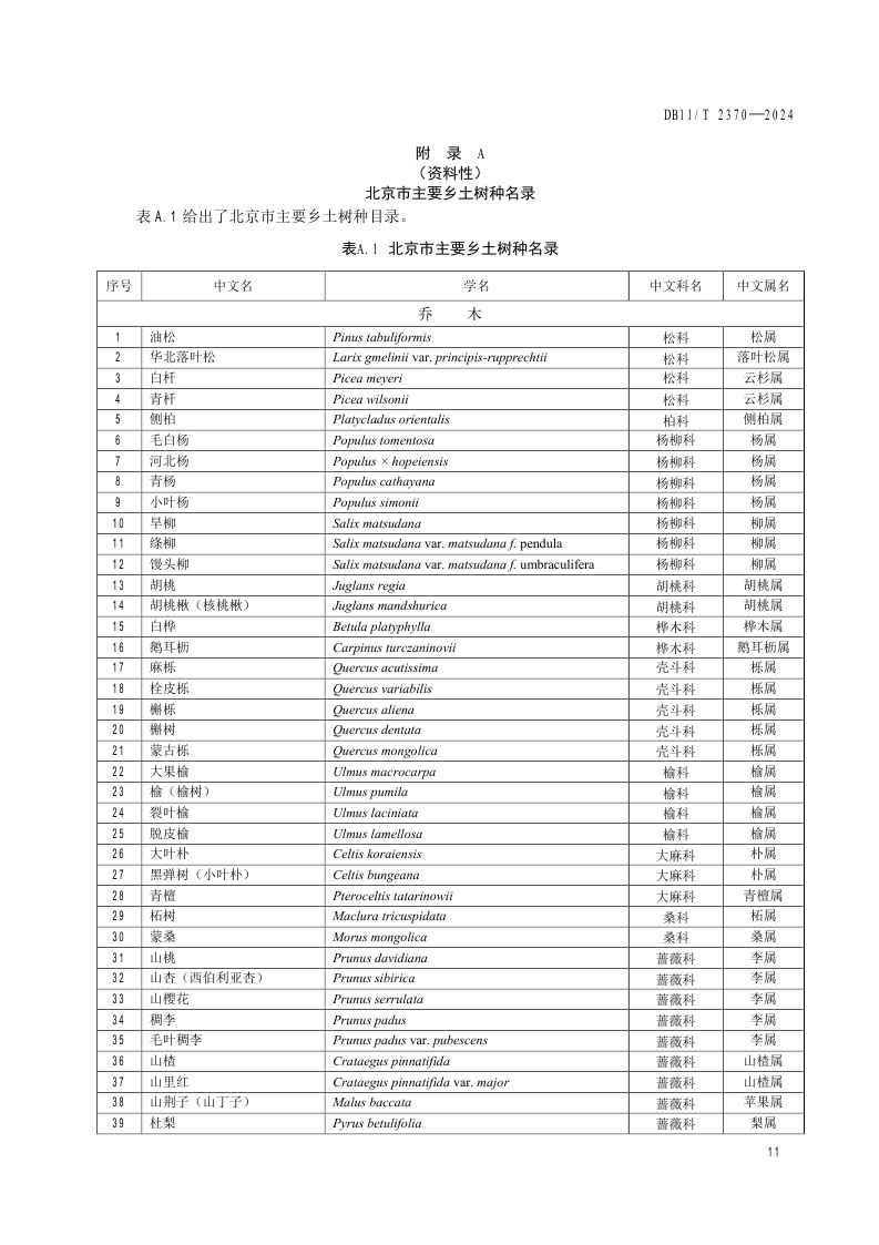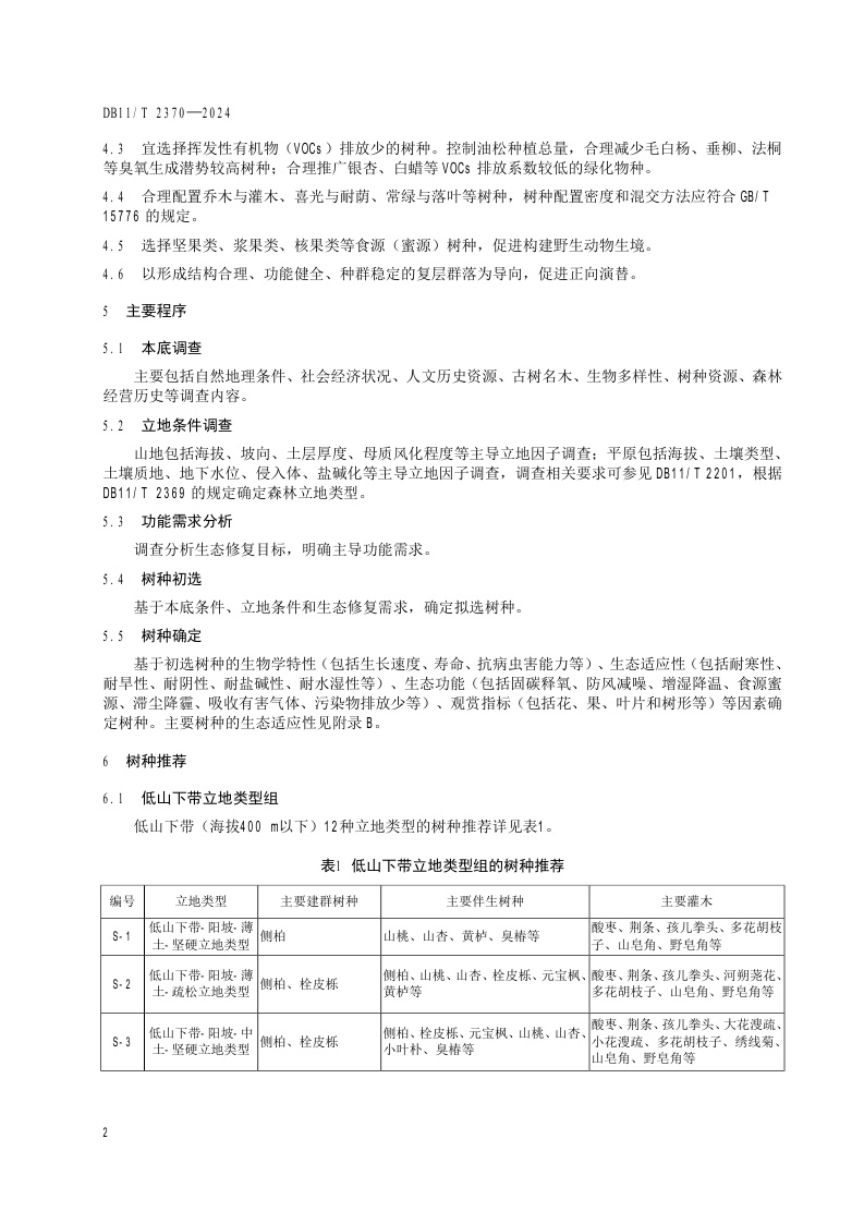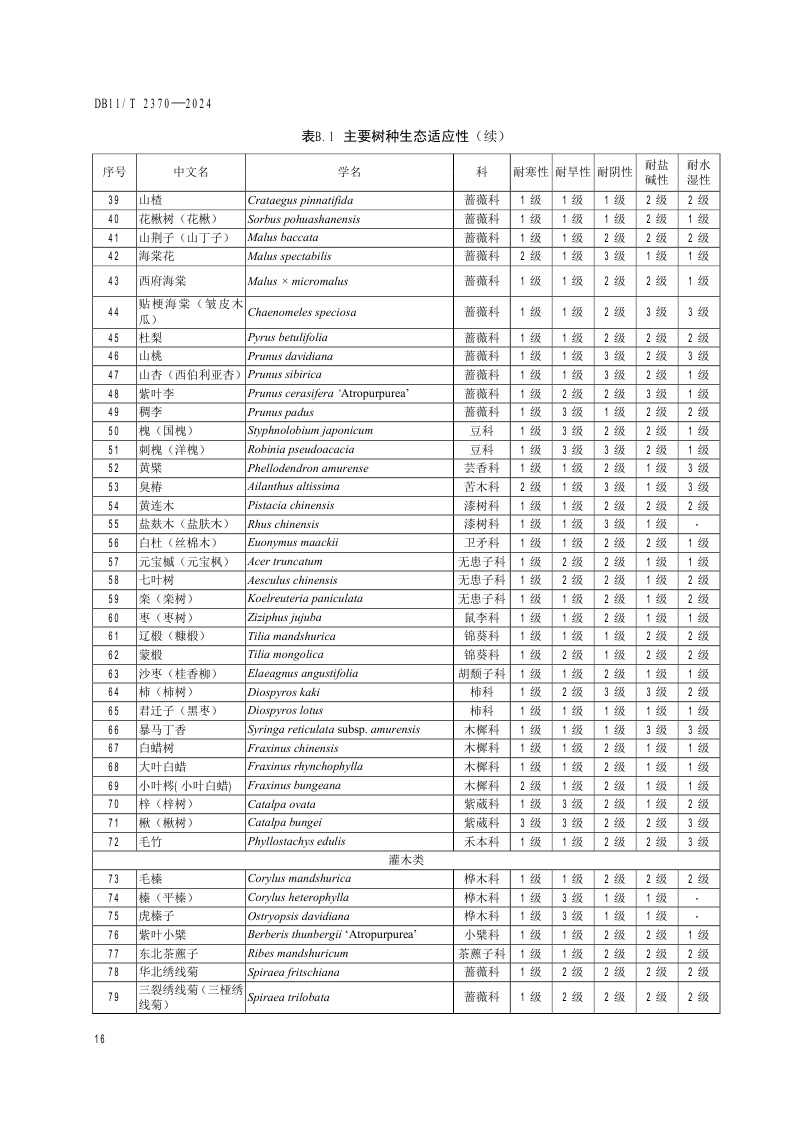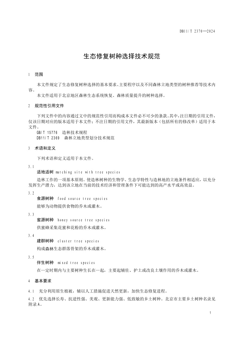 北京市《生态修复树种选择技术规范》(DB11/T 2370-2024)