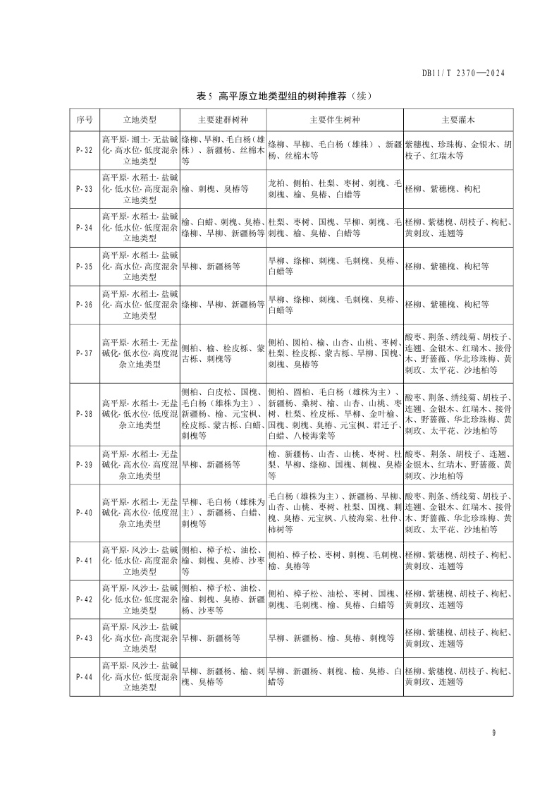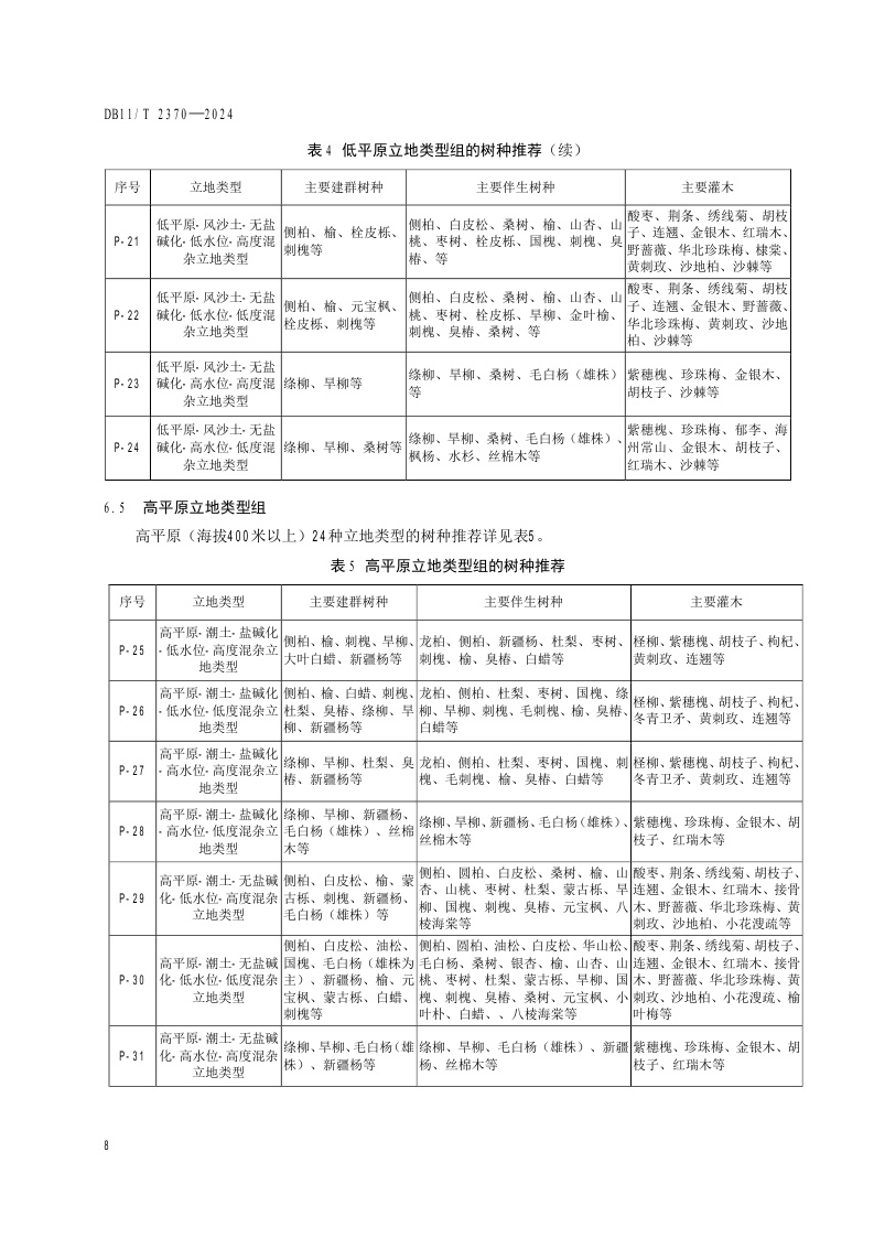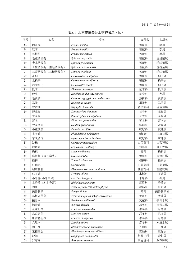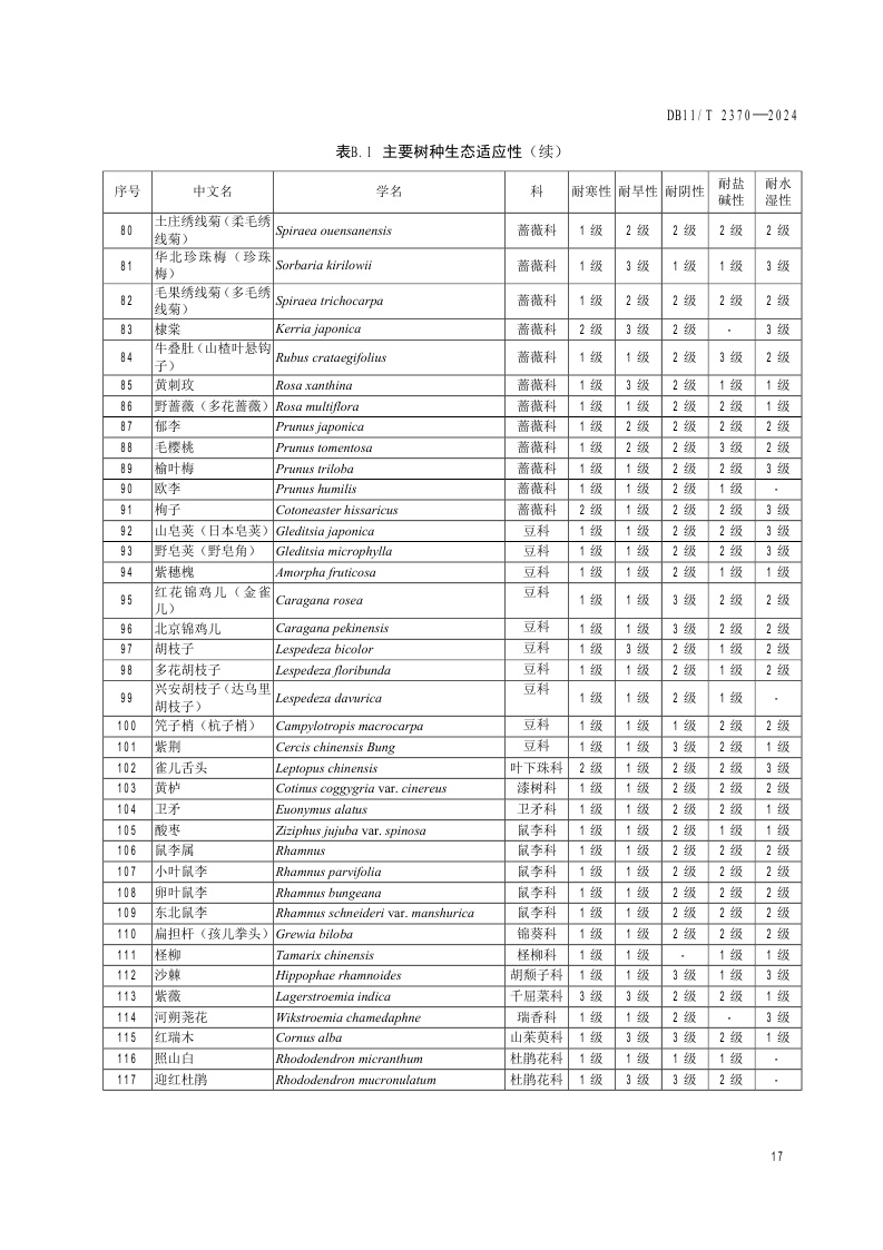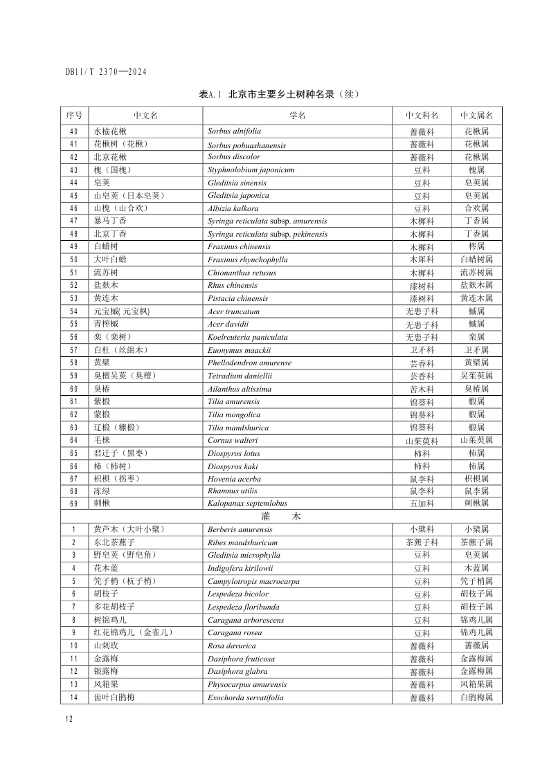 北京市《生态修复树种选择技术规范》(DB11/T 2370-2024)