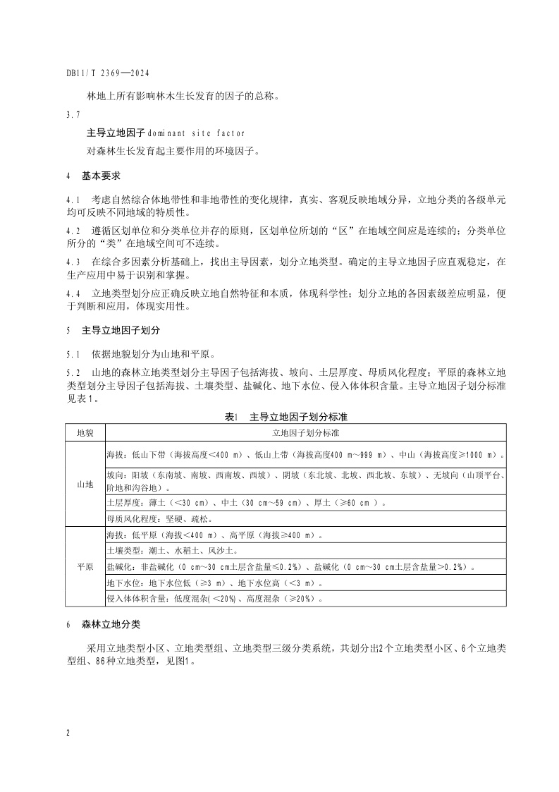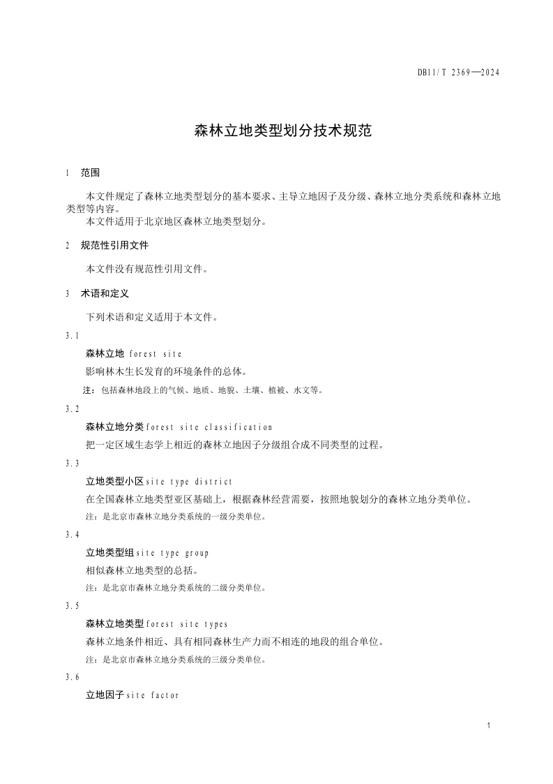 北京市《森林立地类型划分技术规范》(DB11/T 2369-2024)