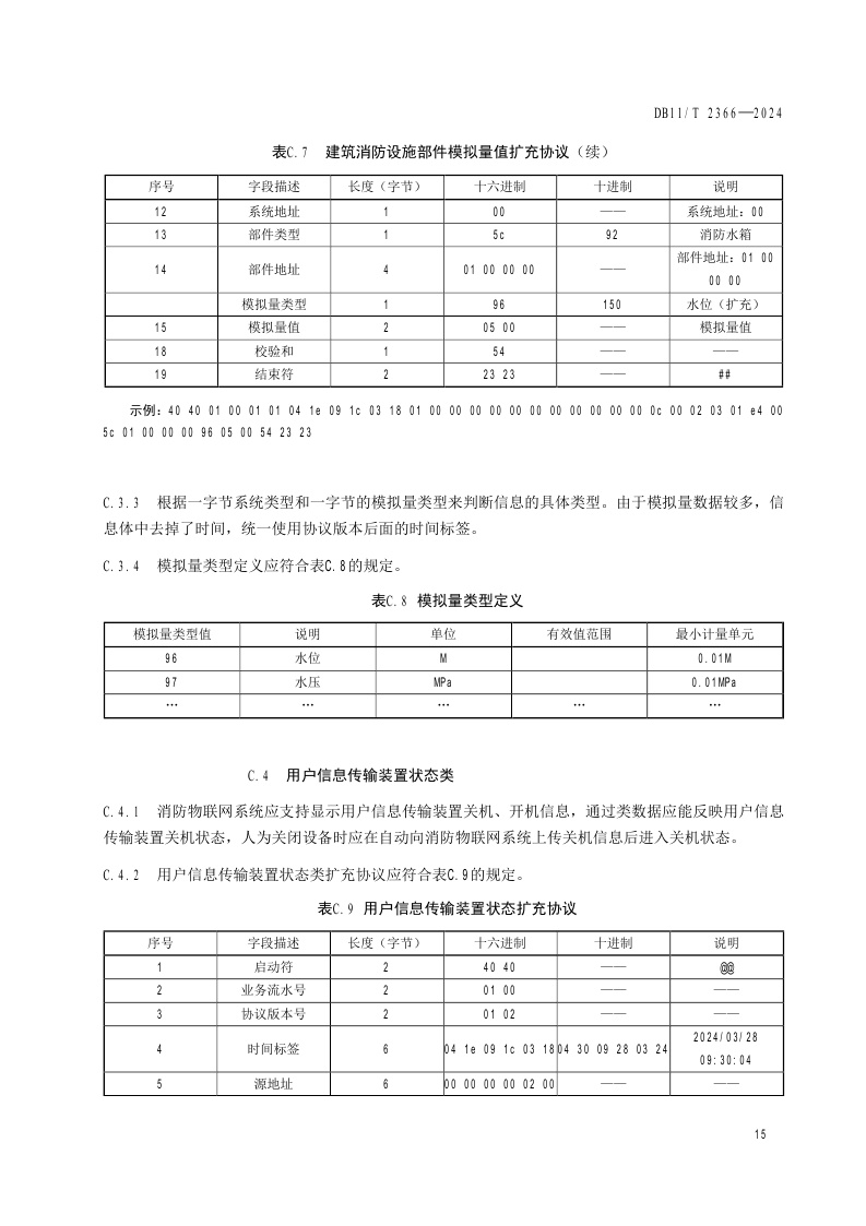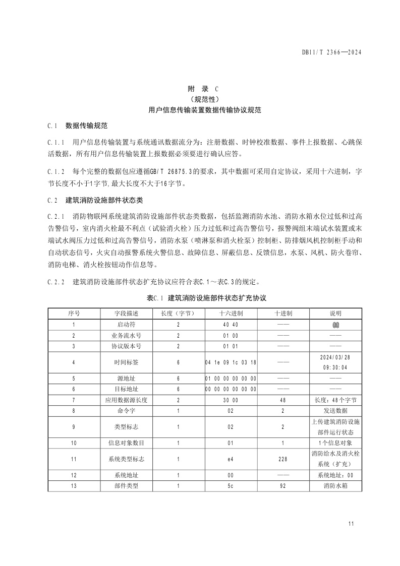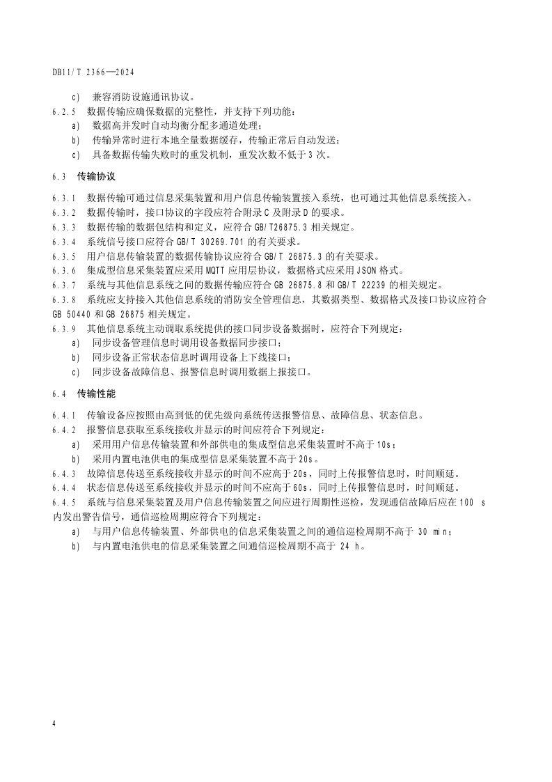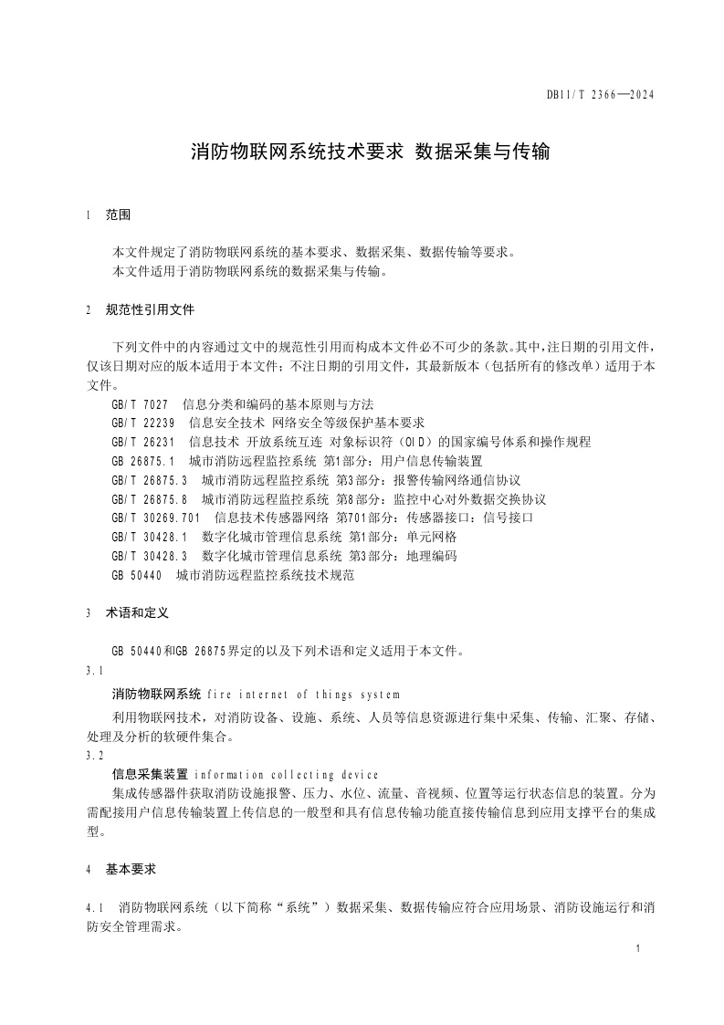 北京市《消防物联网系统技术要求 数据采集与传输》(DB11/T 2366-2024)