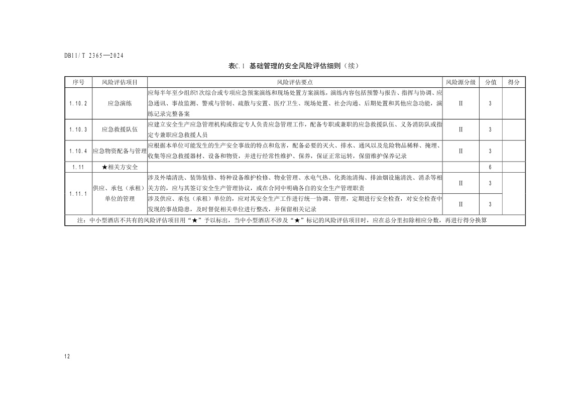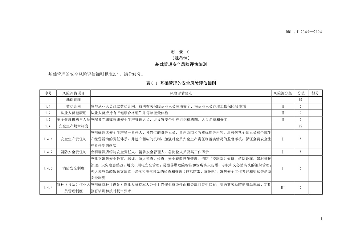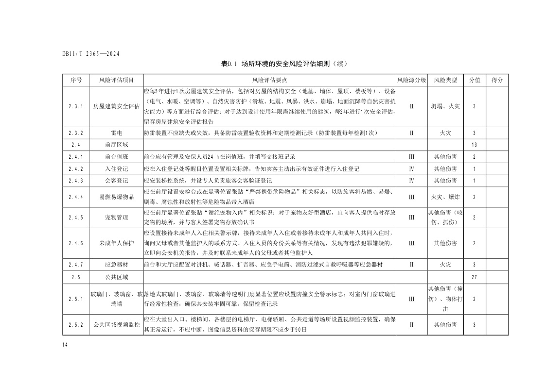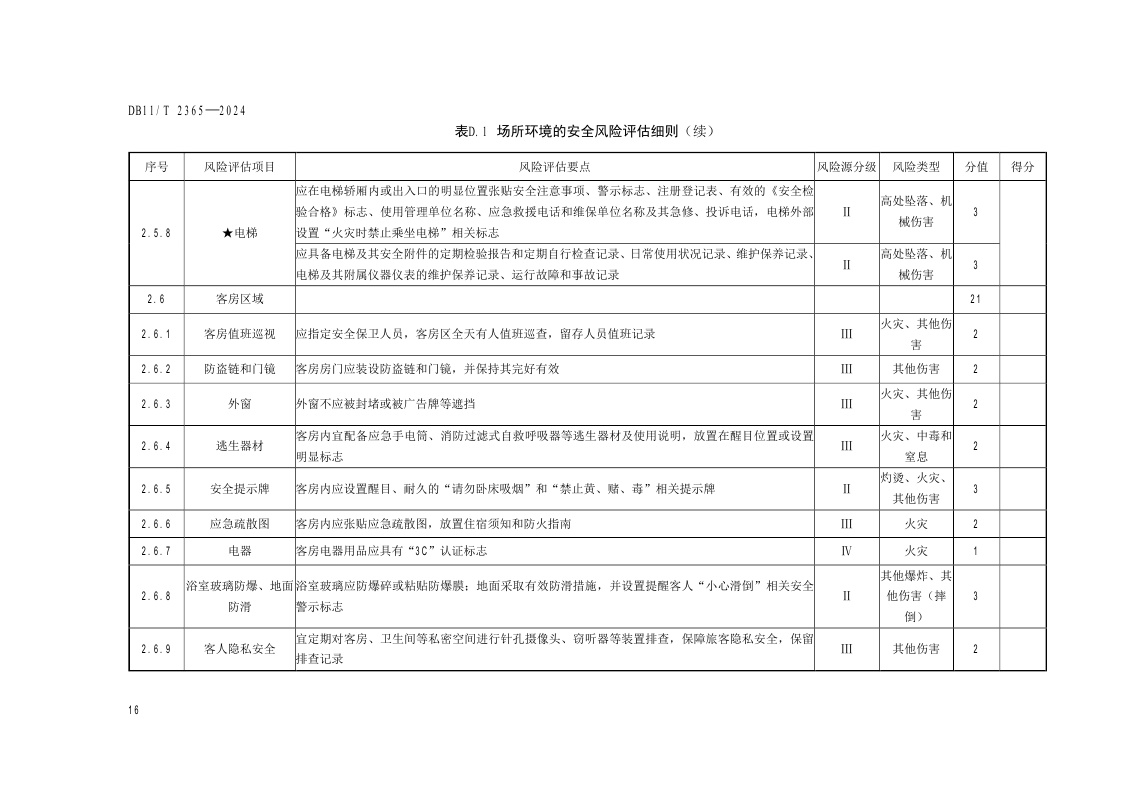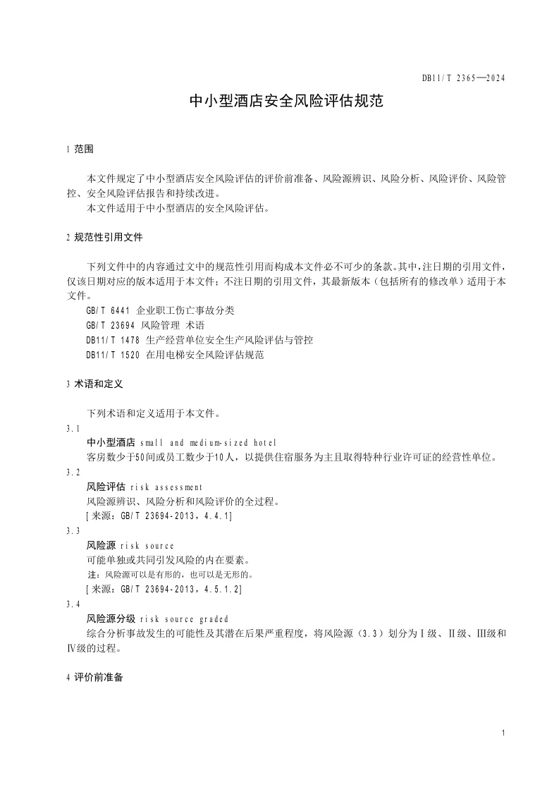 北京市《中小型酒店安全风险评估规范》(DB11/T 2365-2024)