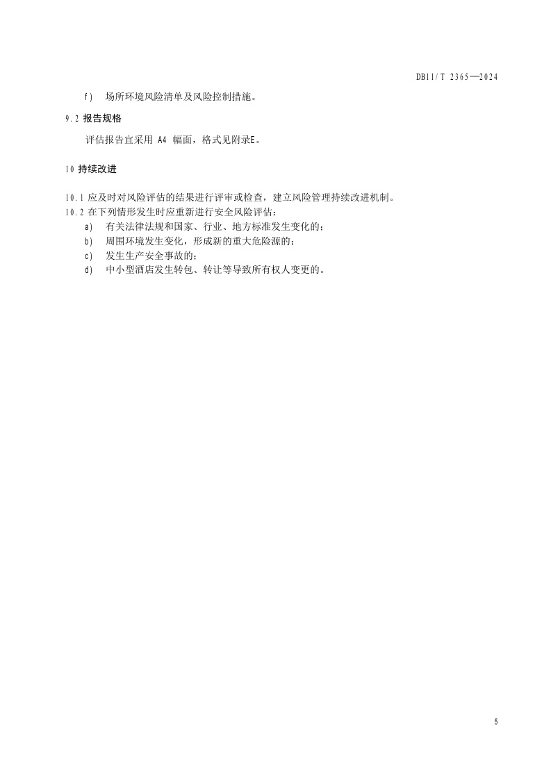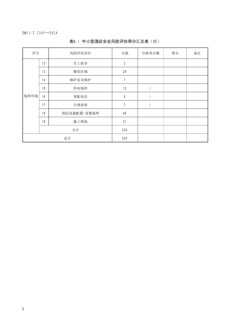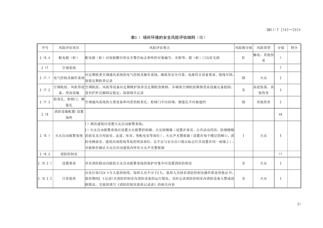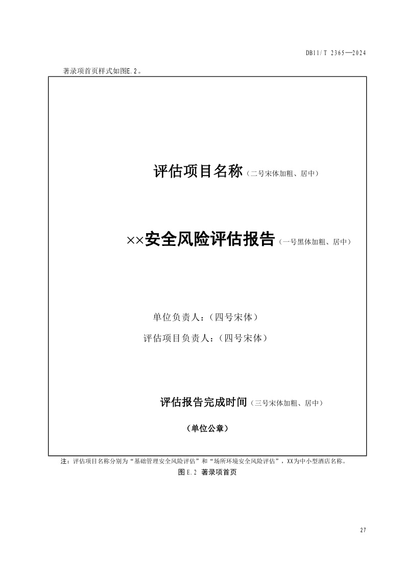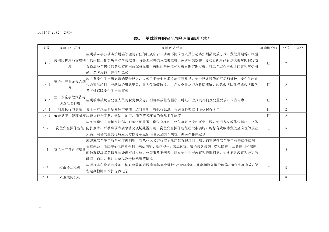 北京市《中小型酒店安全风险评估规范》(DB11/T 2365-2024)