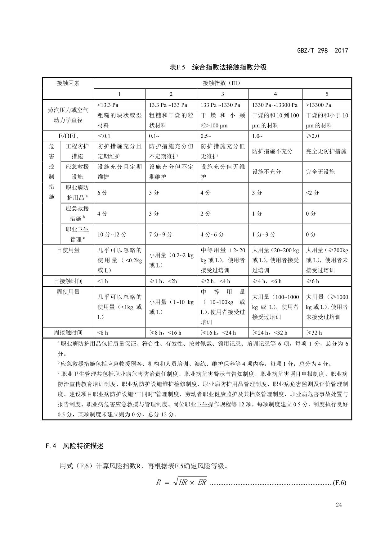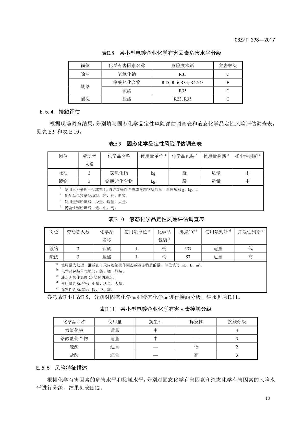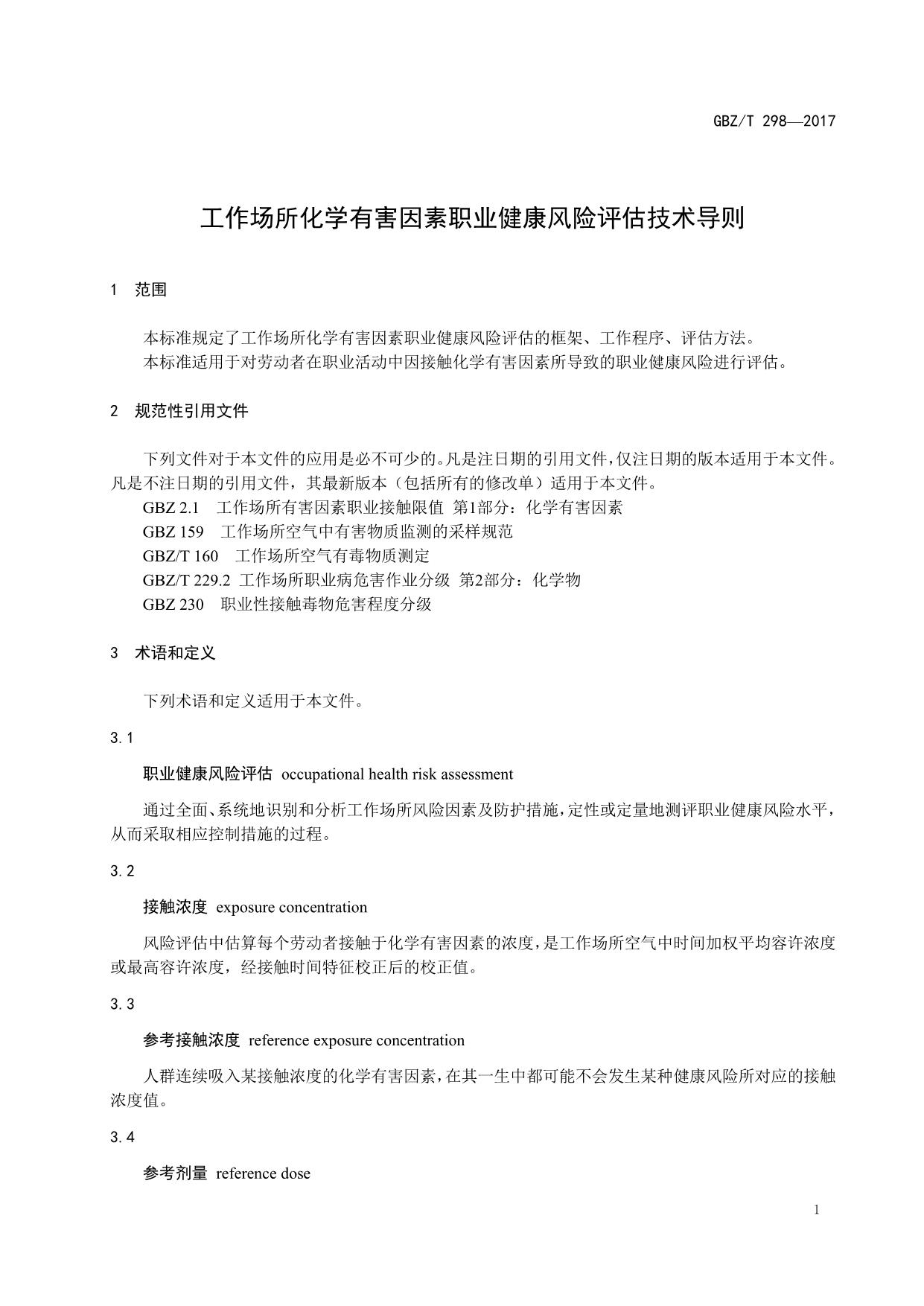 《工作场所化学有害因素职业健康风险评估技术导则》(GBZ-T298-2017)