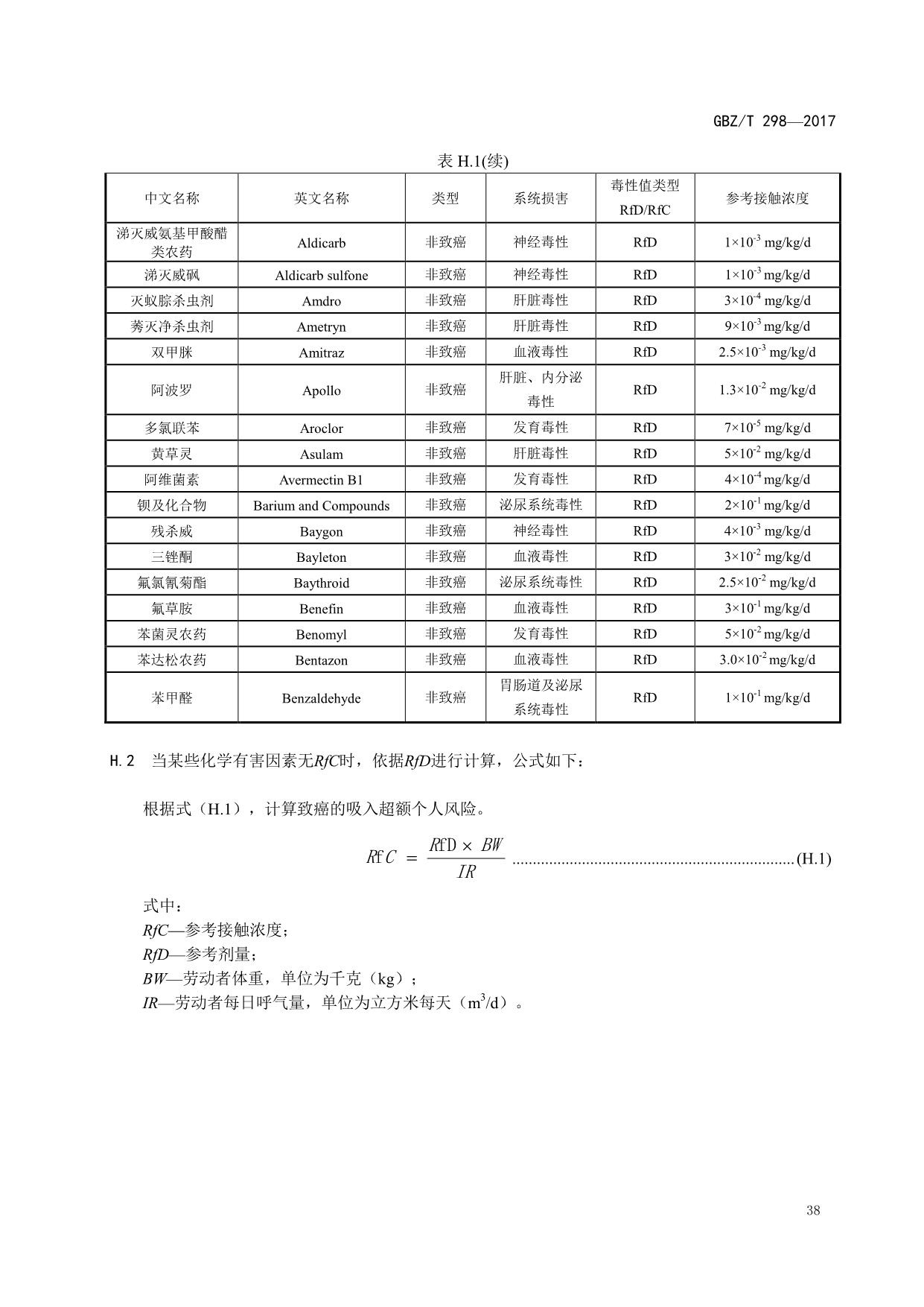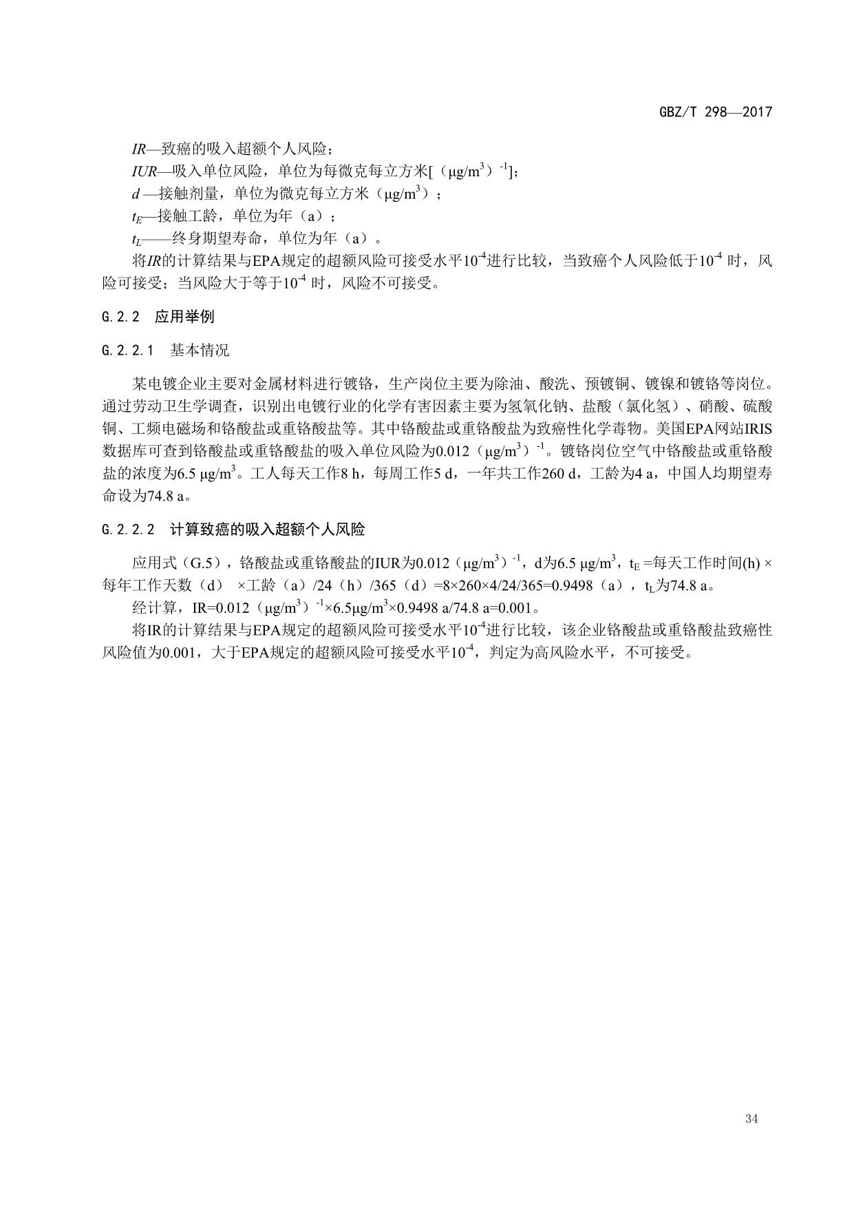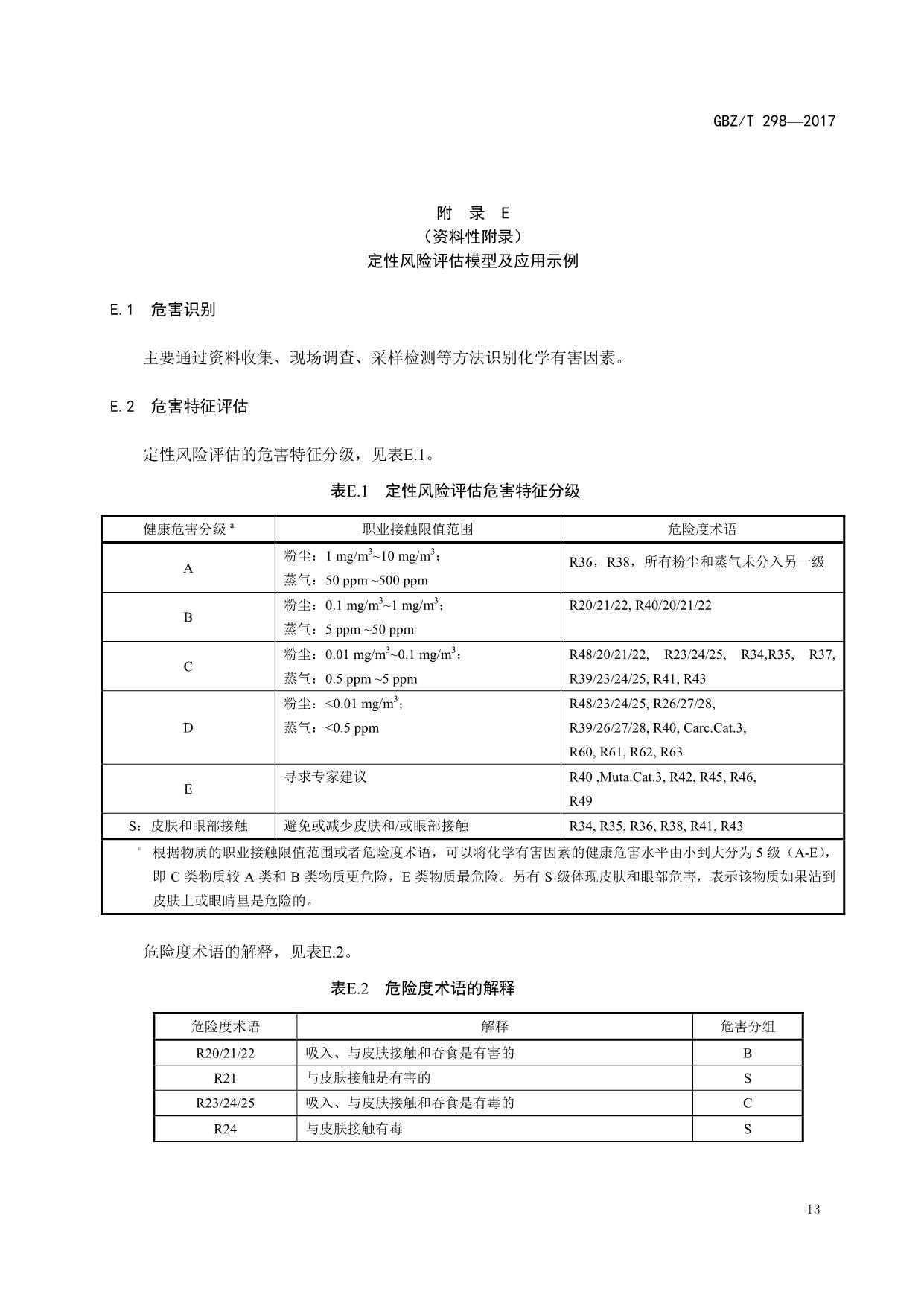 《工作场所化学有害因素职业健康风险评估技术导则》(GBZ-T298-2017)