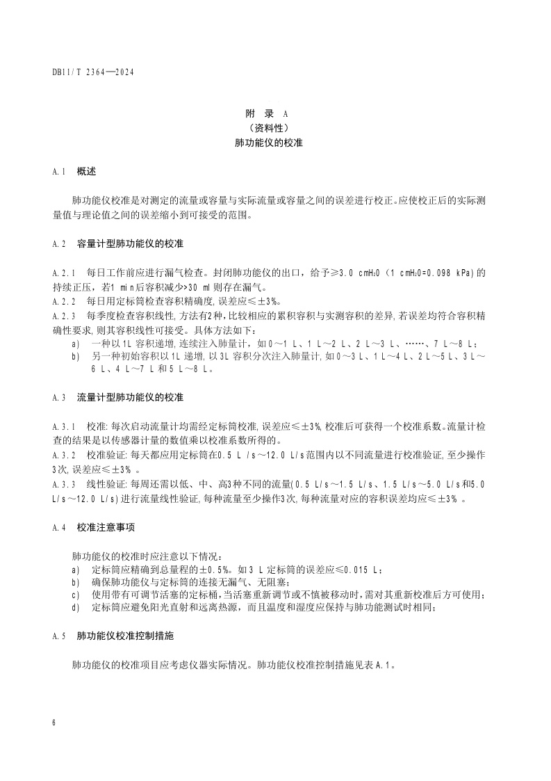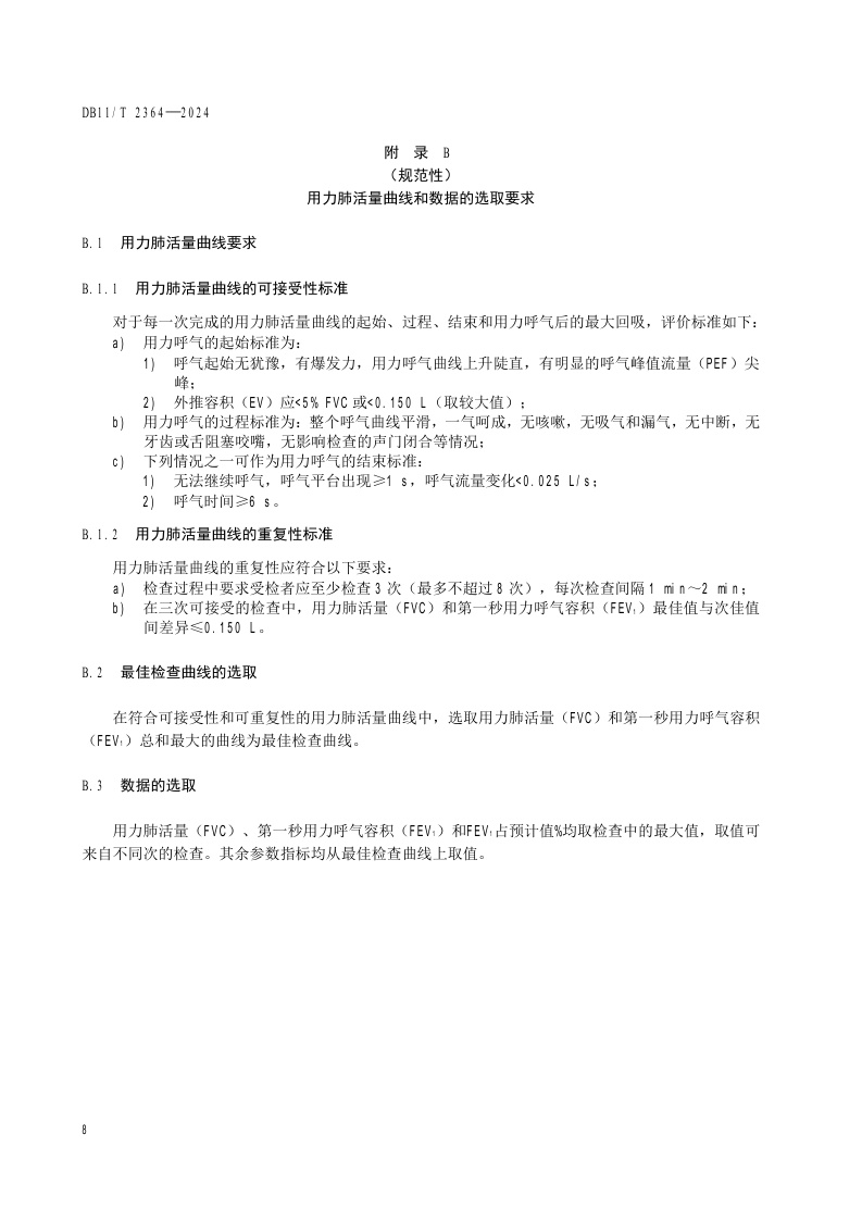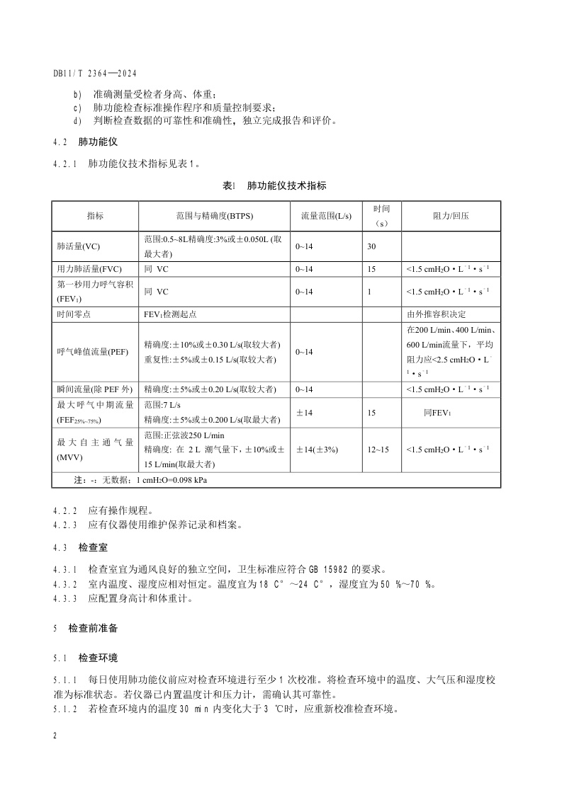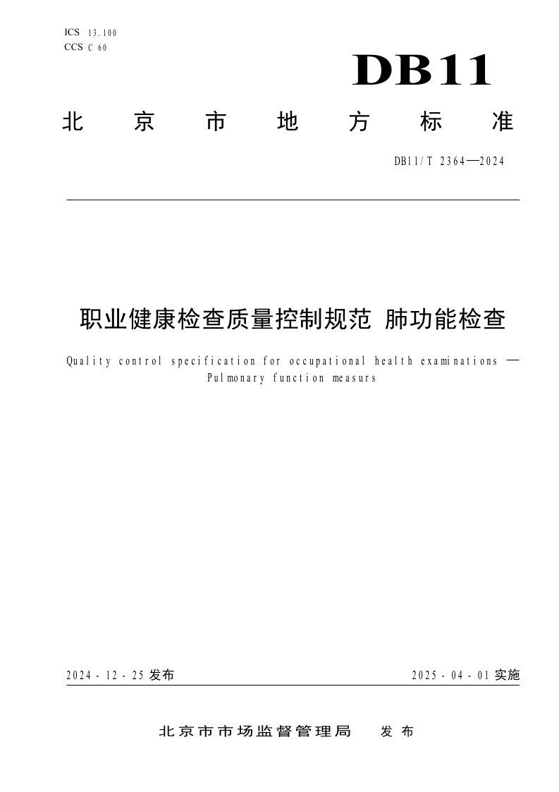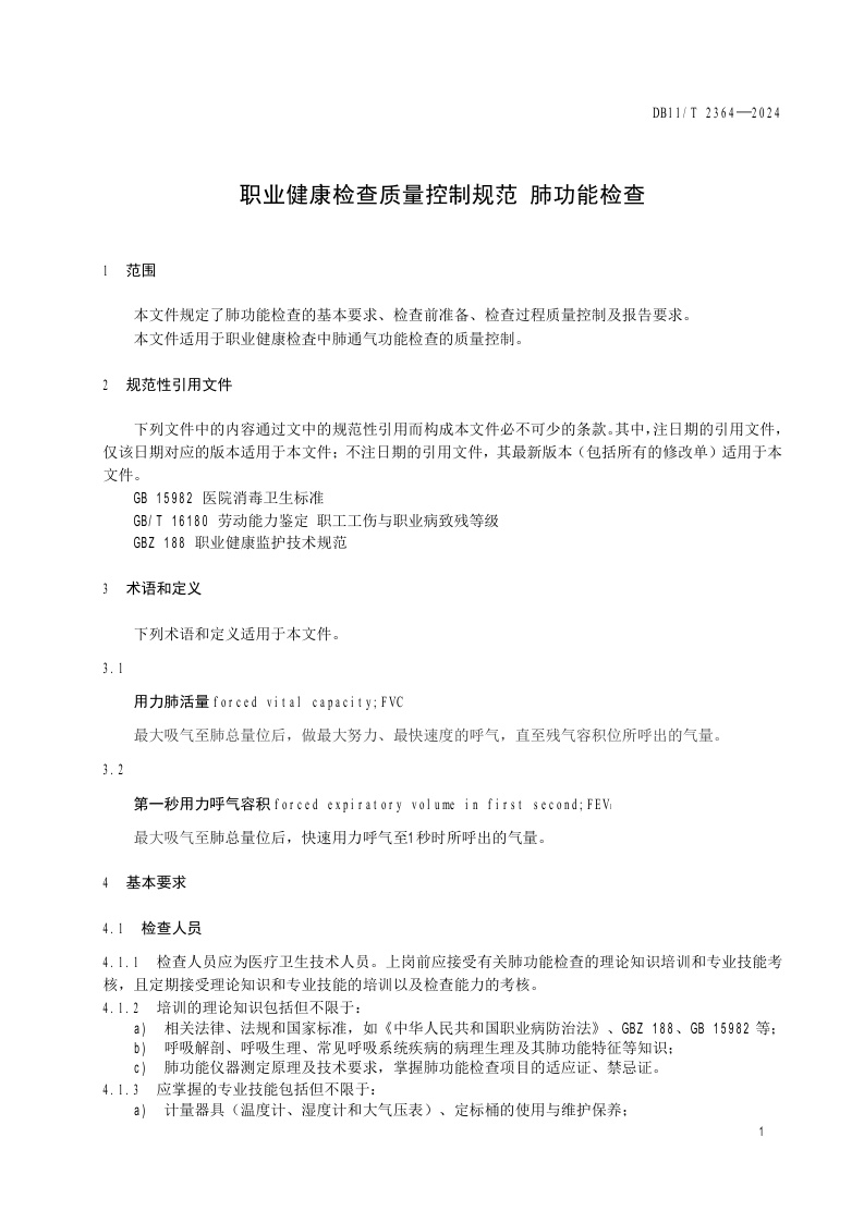 北京市《职业健康检查质量控制规范 肺功能检查》(DB11/T 2364-2024)