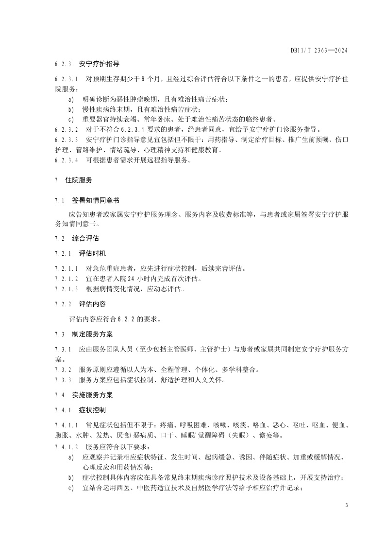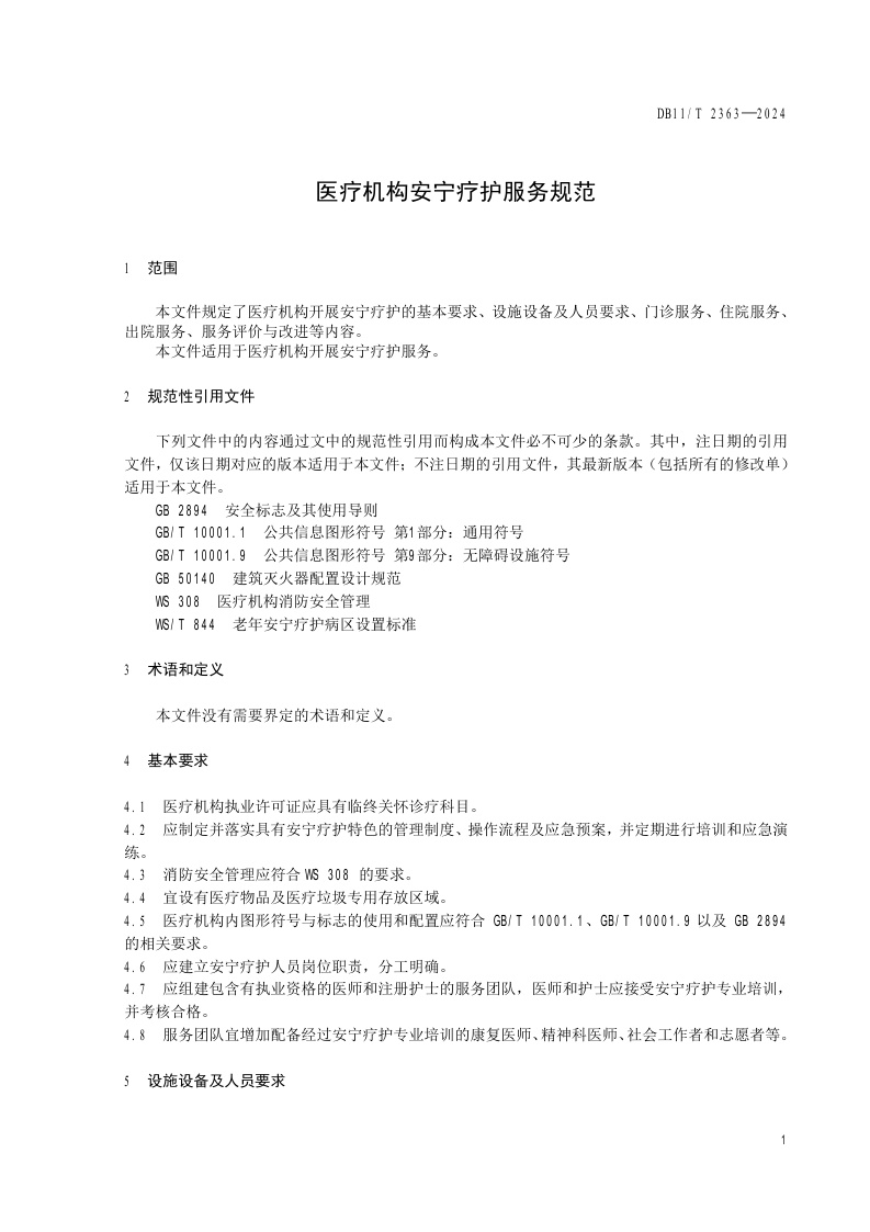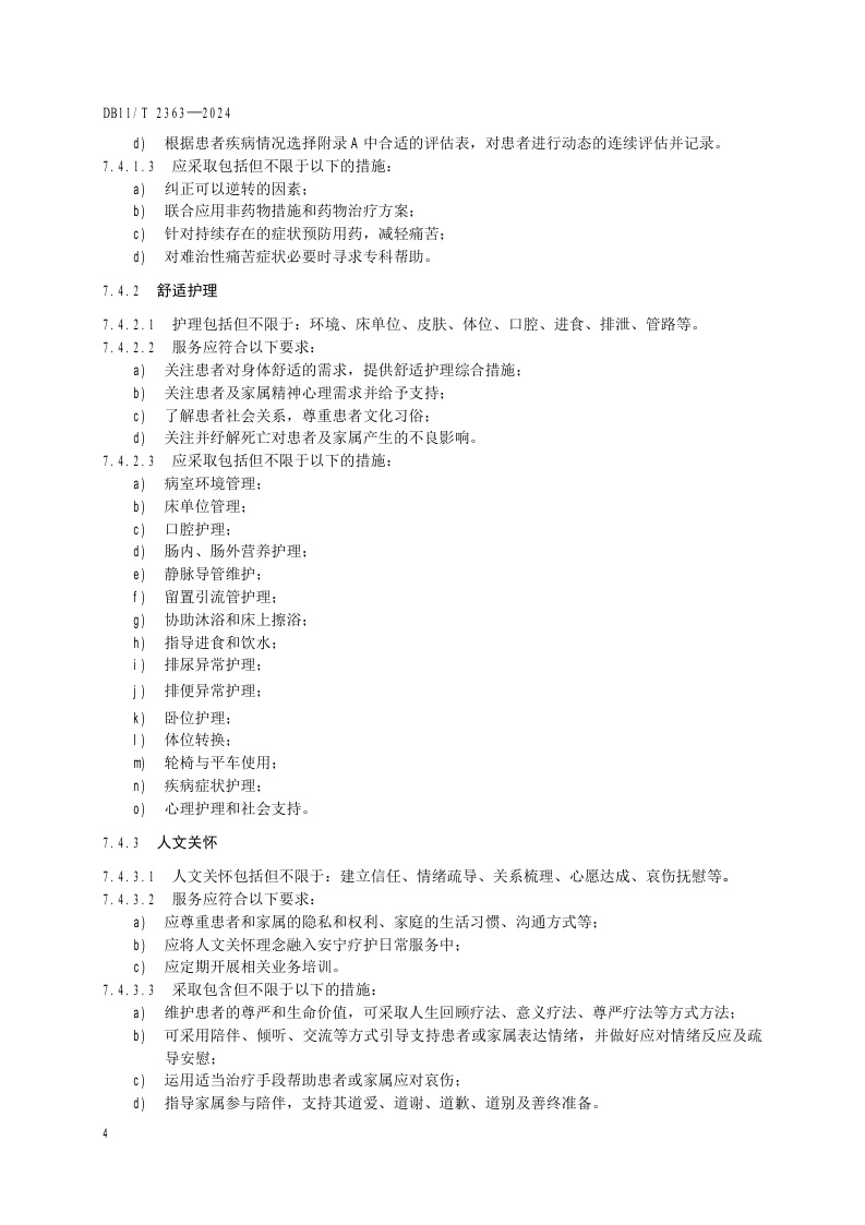 北京市《医疗机构安宁疗护服务规范》(DB11/T 2363-2024)