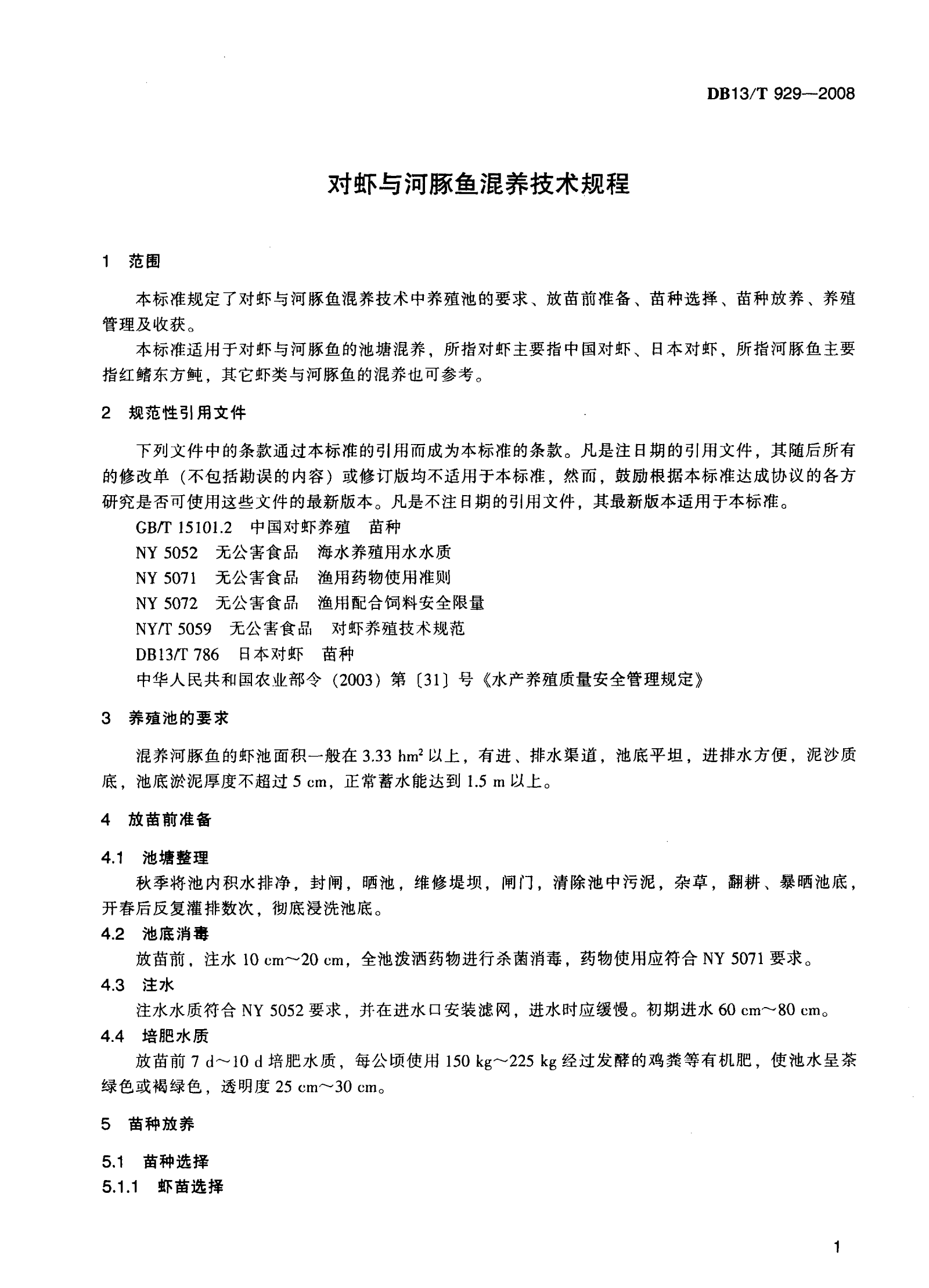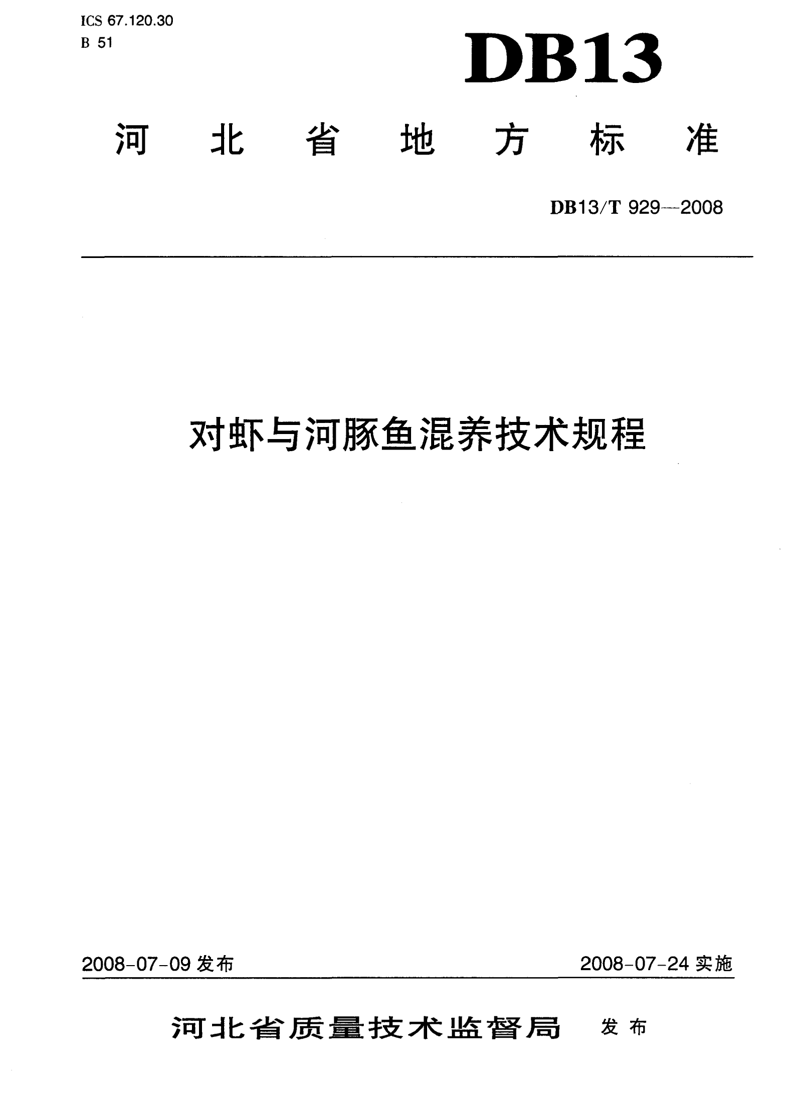 河北省对虾与河豚鱼混养技术规程