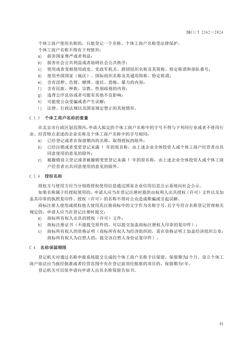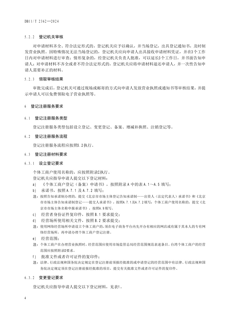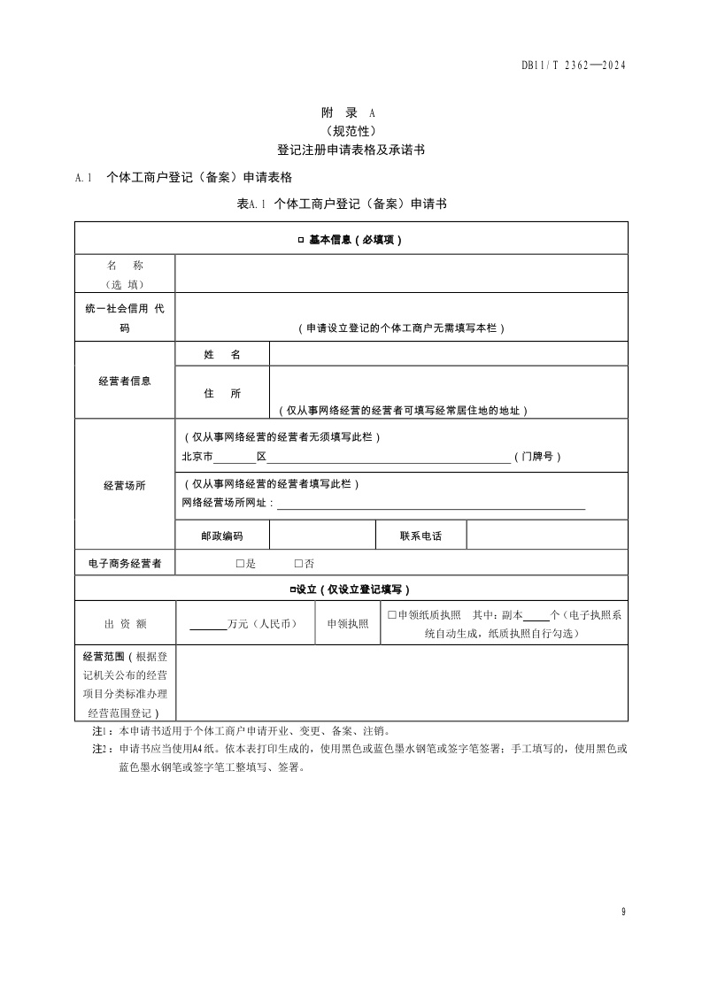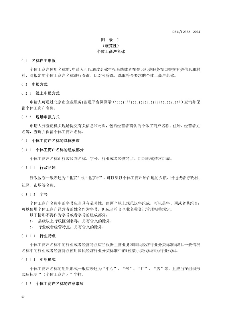 北京市《经营主体登记注册服务规范 个体工商户》(DB11/T 2362-2024)