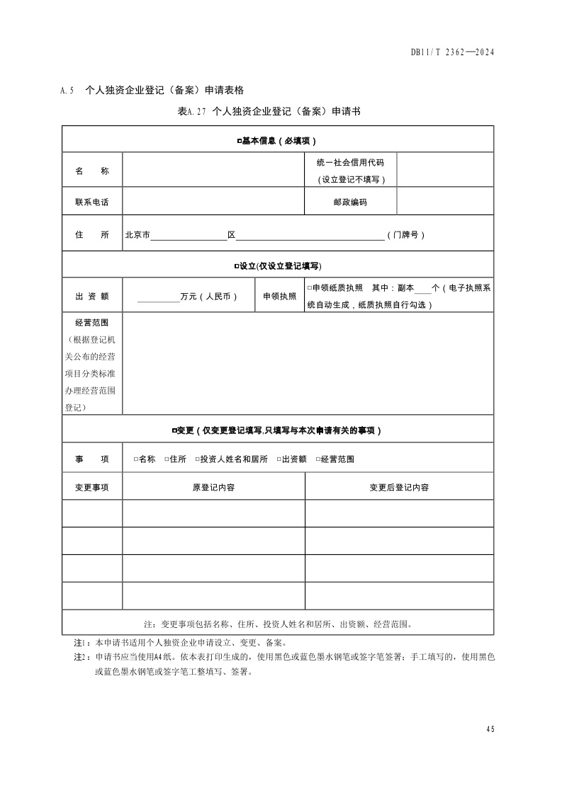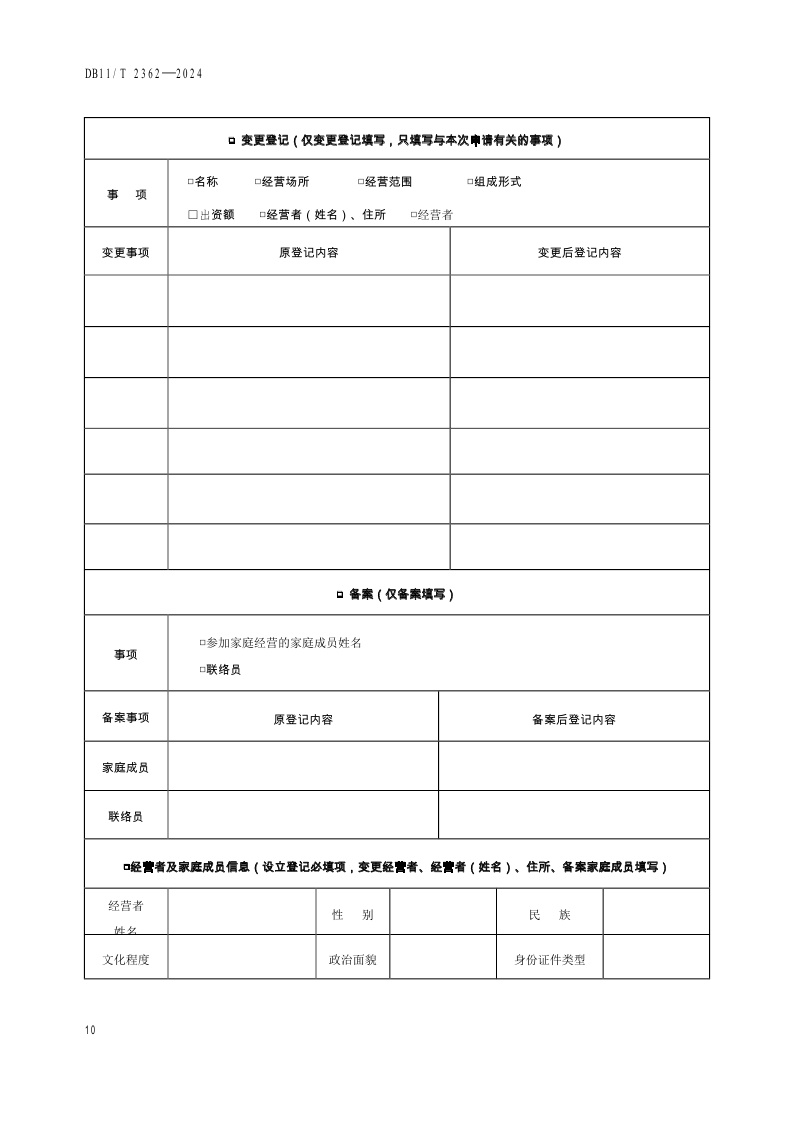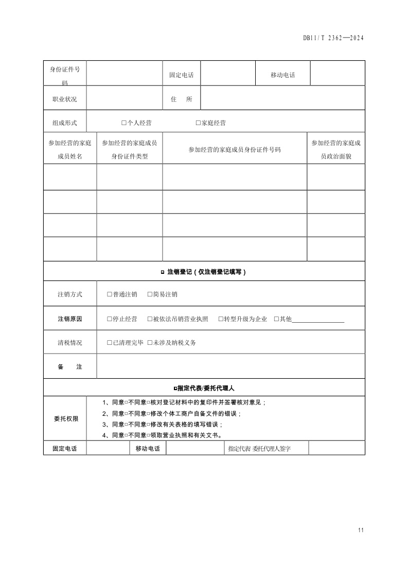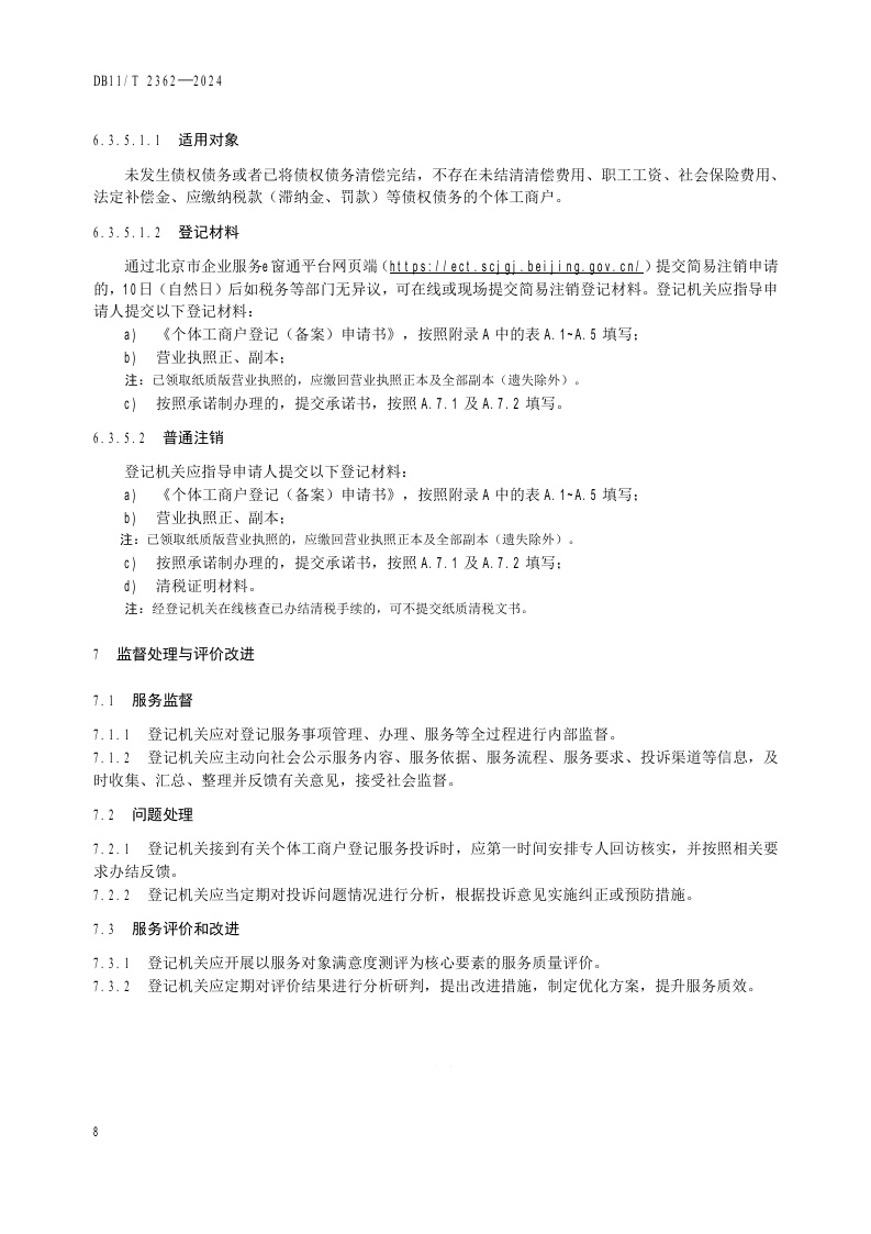 北京市《经营主体登记注册服务规范 个体工商户》(DB11/T 2362-2024)