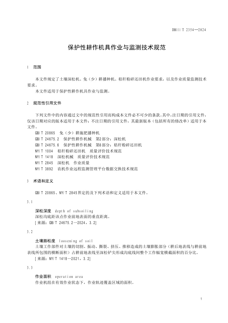 北京市《保护性耕作机具作业与监测技术规范》(DB11/T 2354-2024)