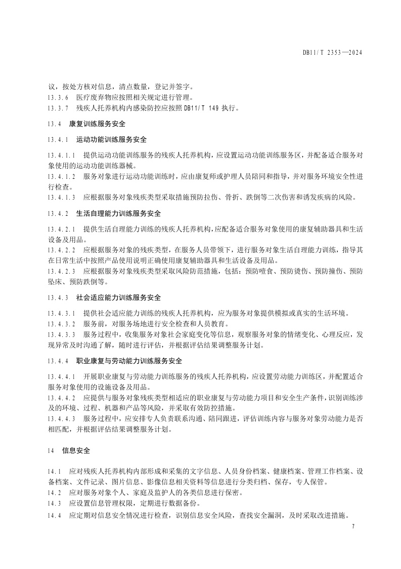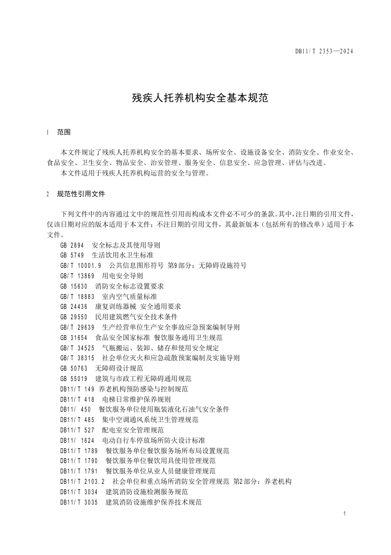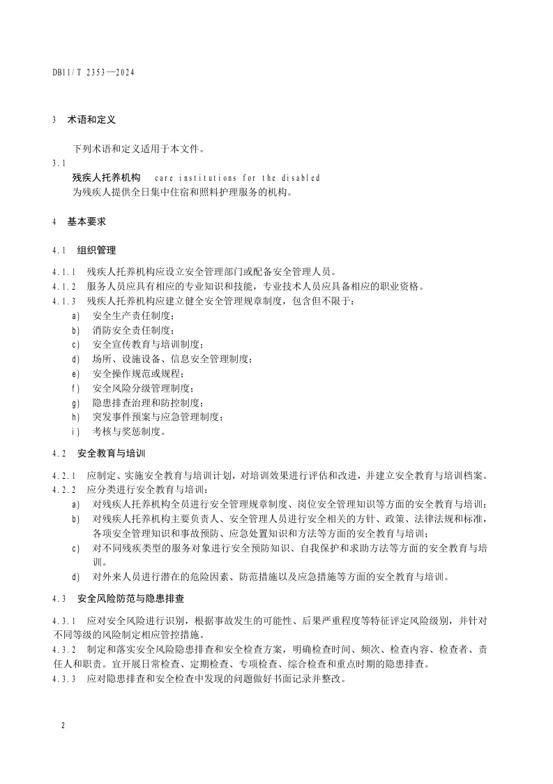 北京市《残疾人托养机构安全基本规范》(DB11/T 2353-2024)