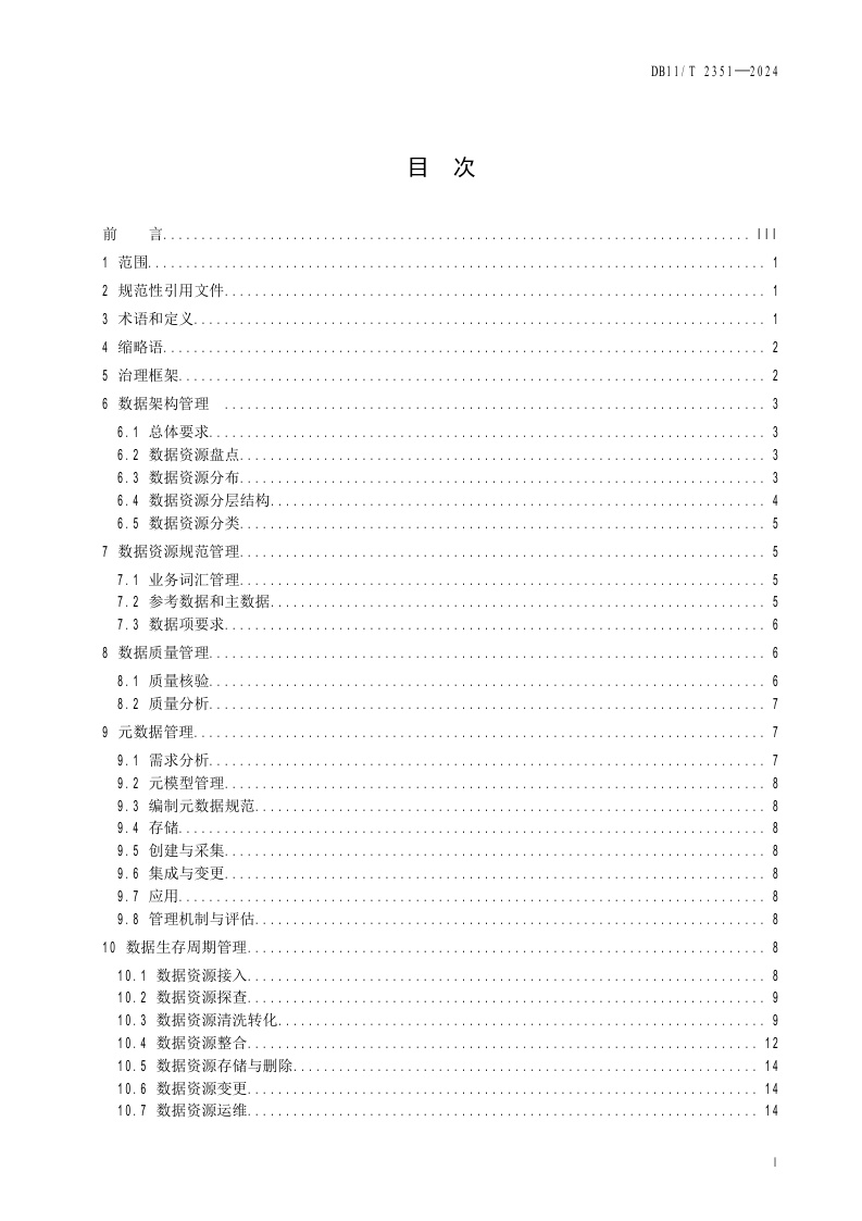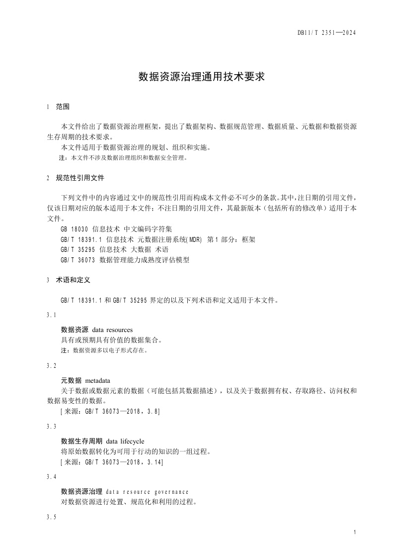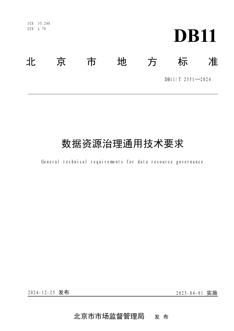 北京市《数据资源治理通用技术要求》(DB11/T 2351-2024)