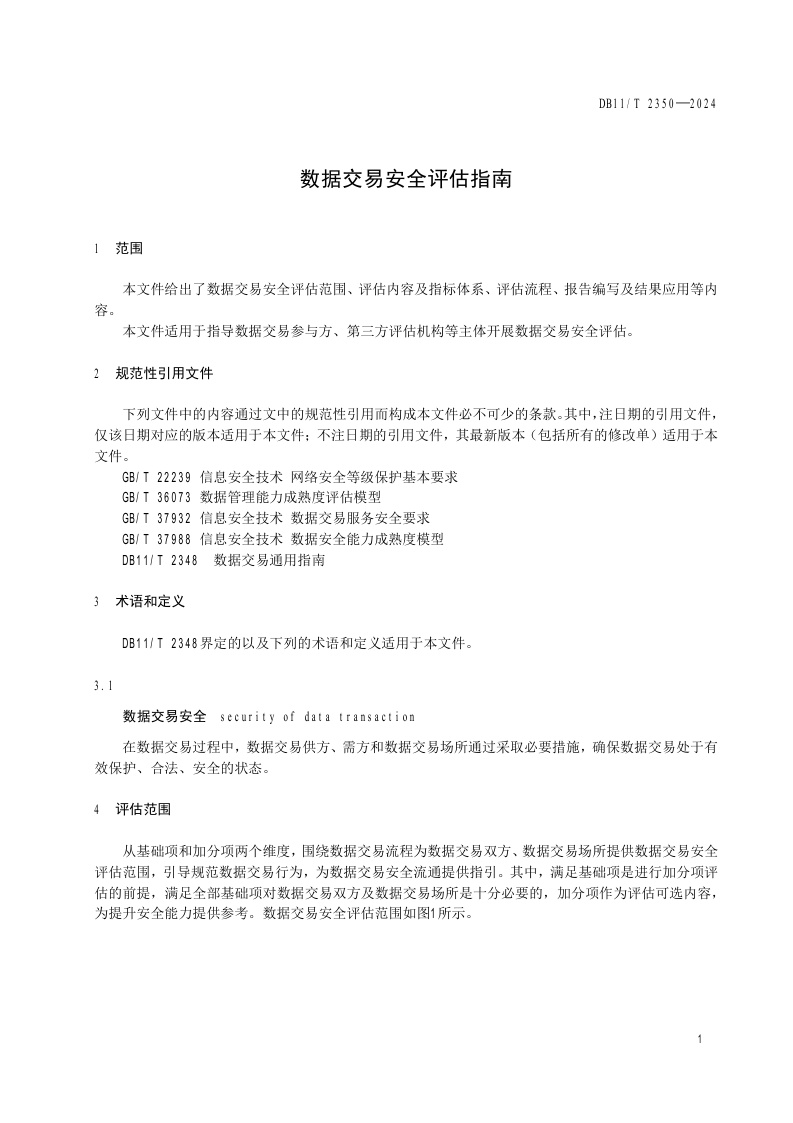 北京市《数据交易安全评估指南》(DB11/T 2350-2024)