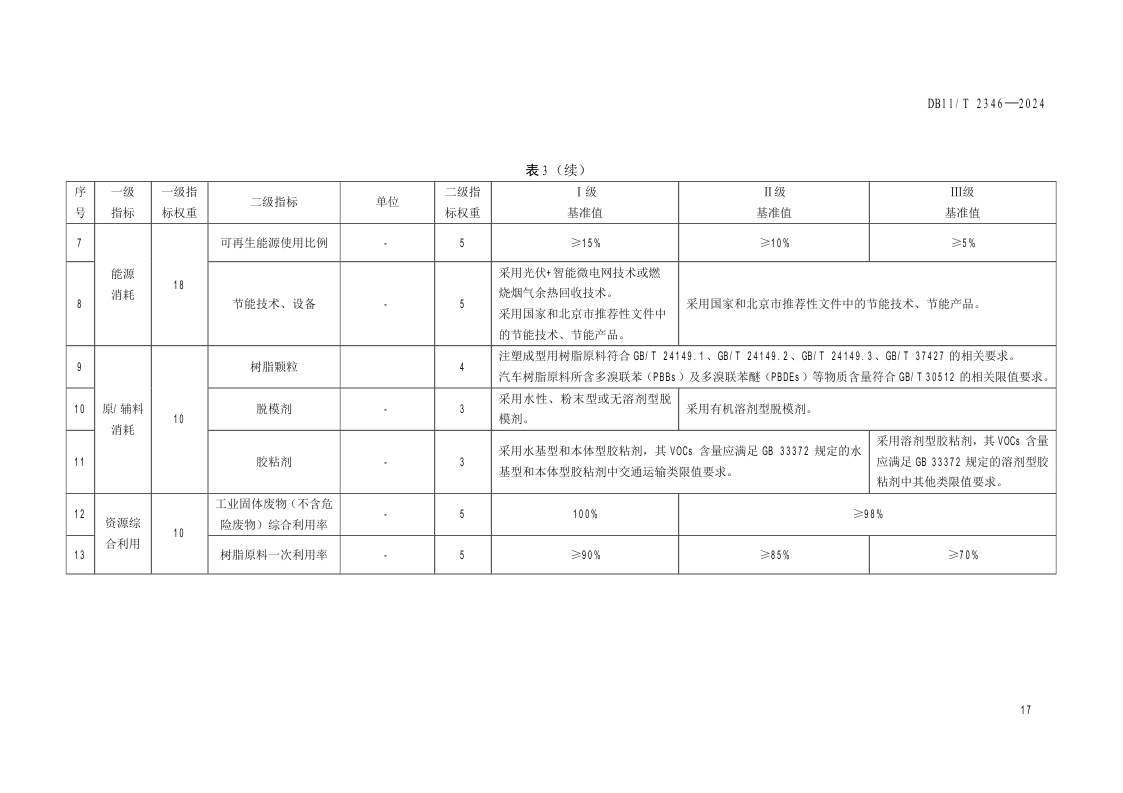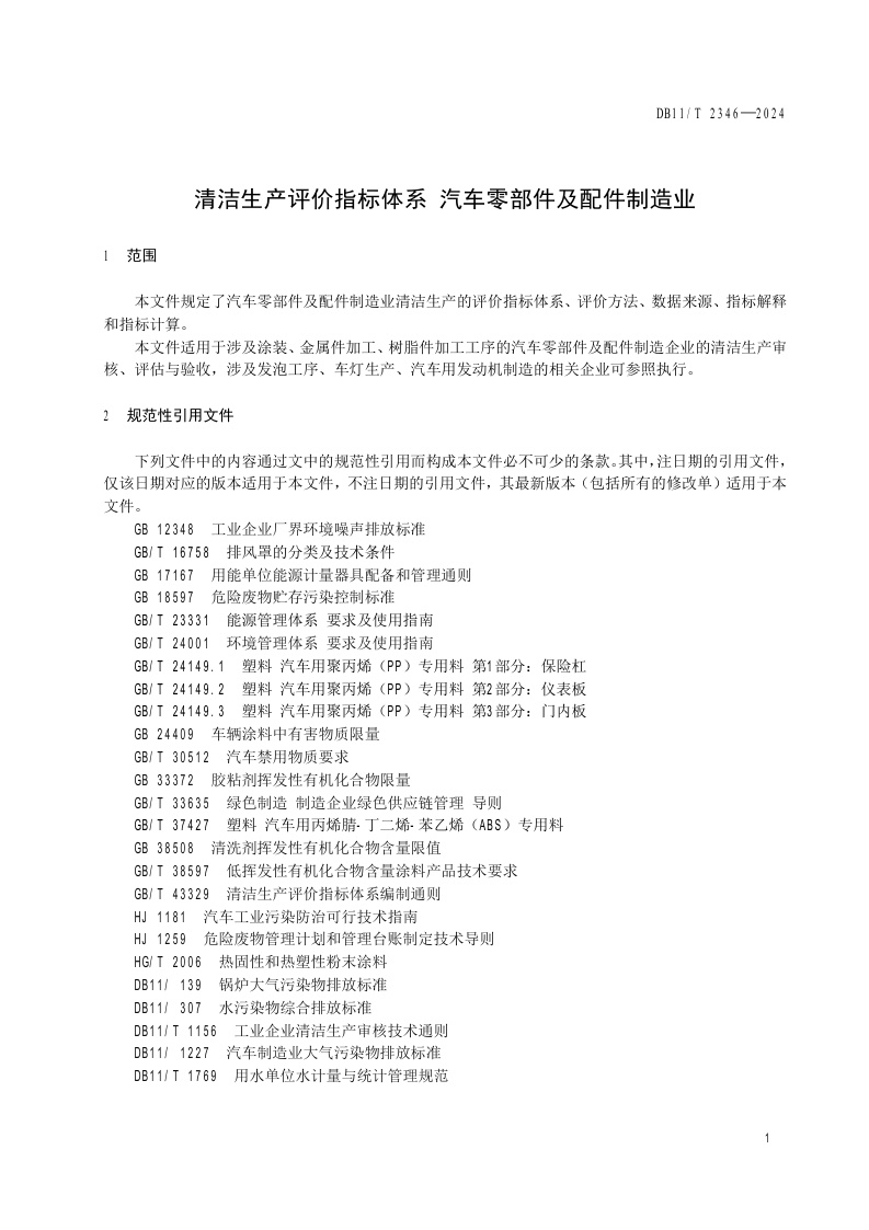 北京市《清洁生产评价指标体系 汽车零部件及配件制造业》(DB11/T 2346-2024)