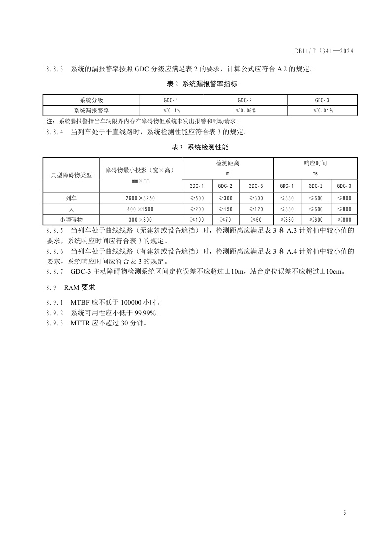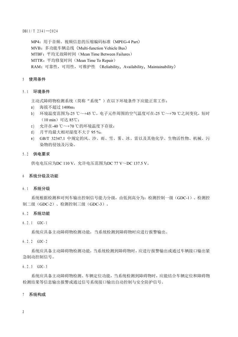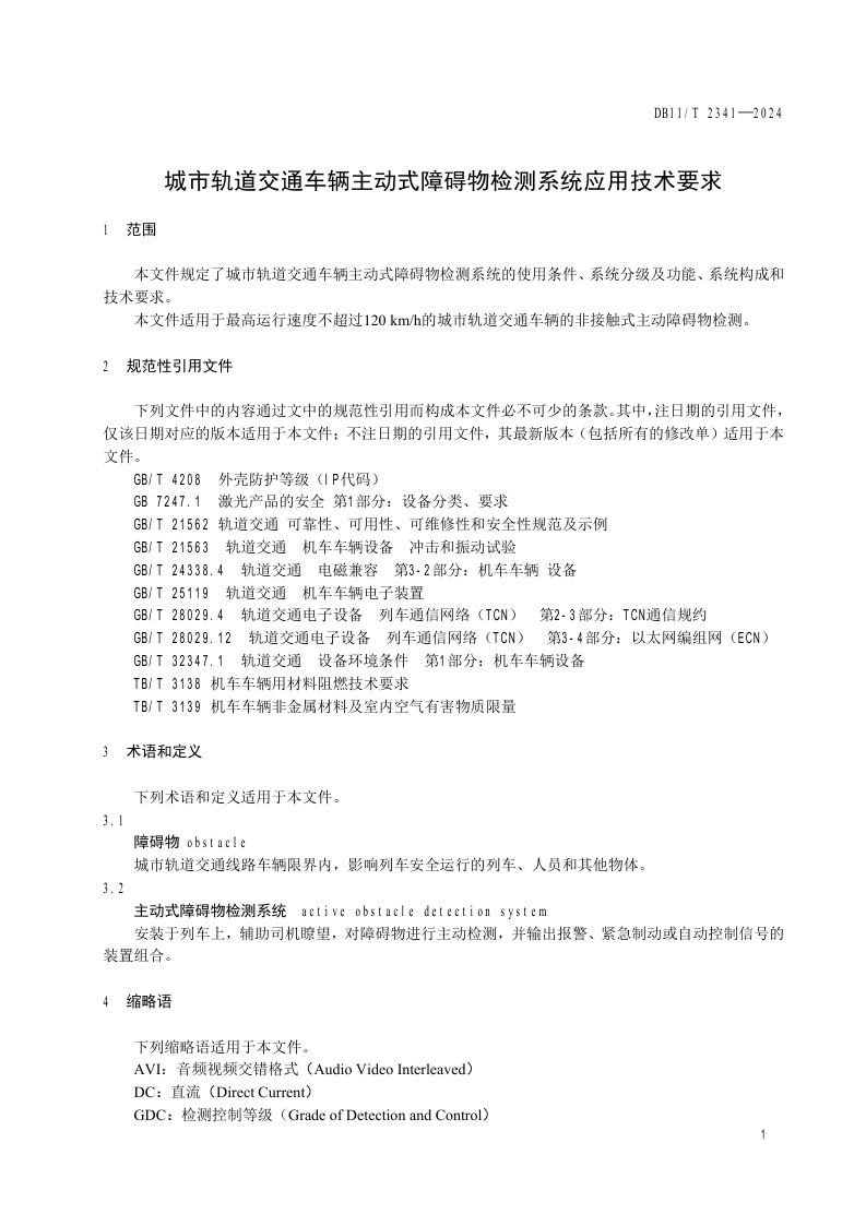 北京市《城市轨道交通车辆主动式障碍物检测系统应用技术要求》(DB11/T 2341-2024)