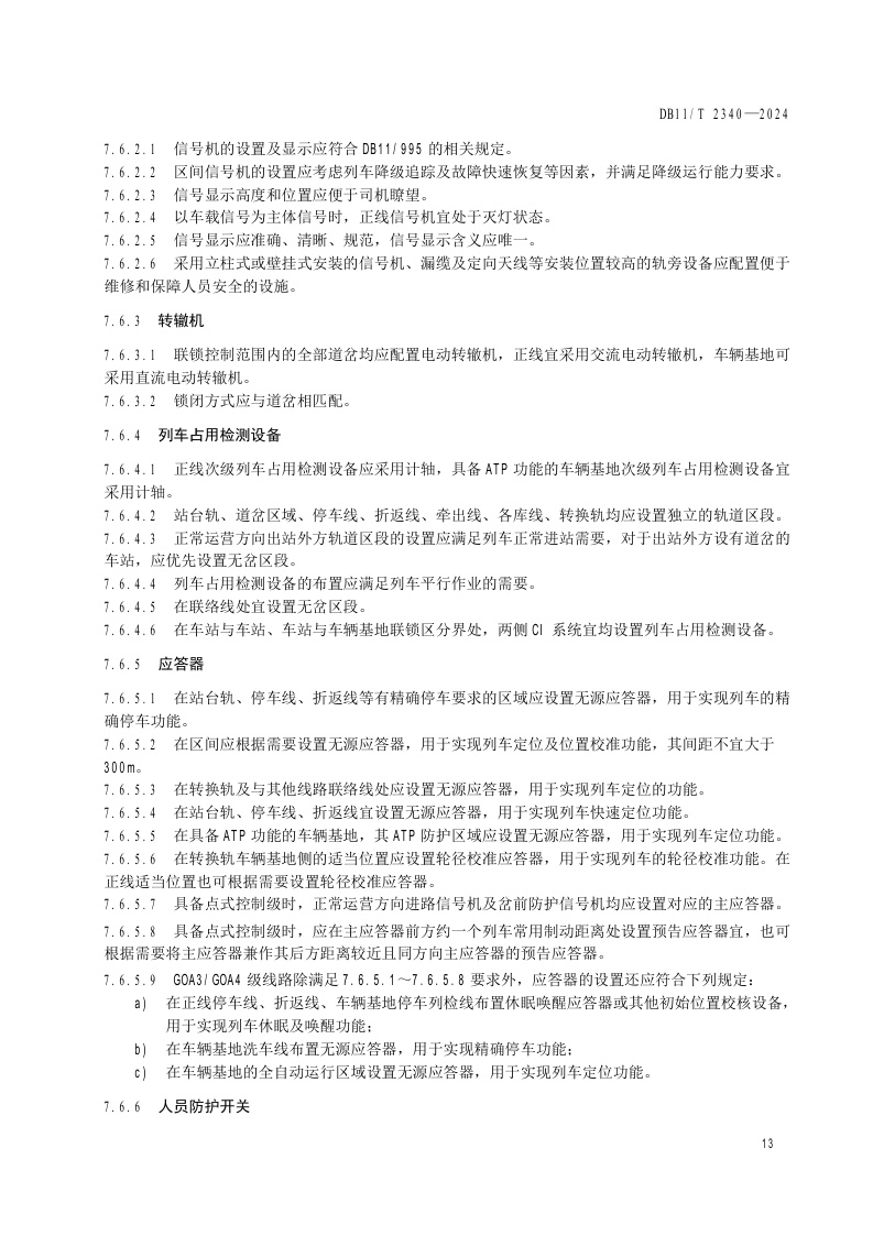 北京市《城市轨道交通信号系统应用技术规范》(DB11/T 2340-2024)