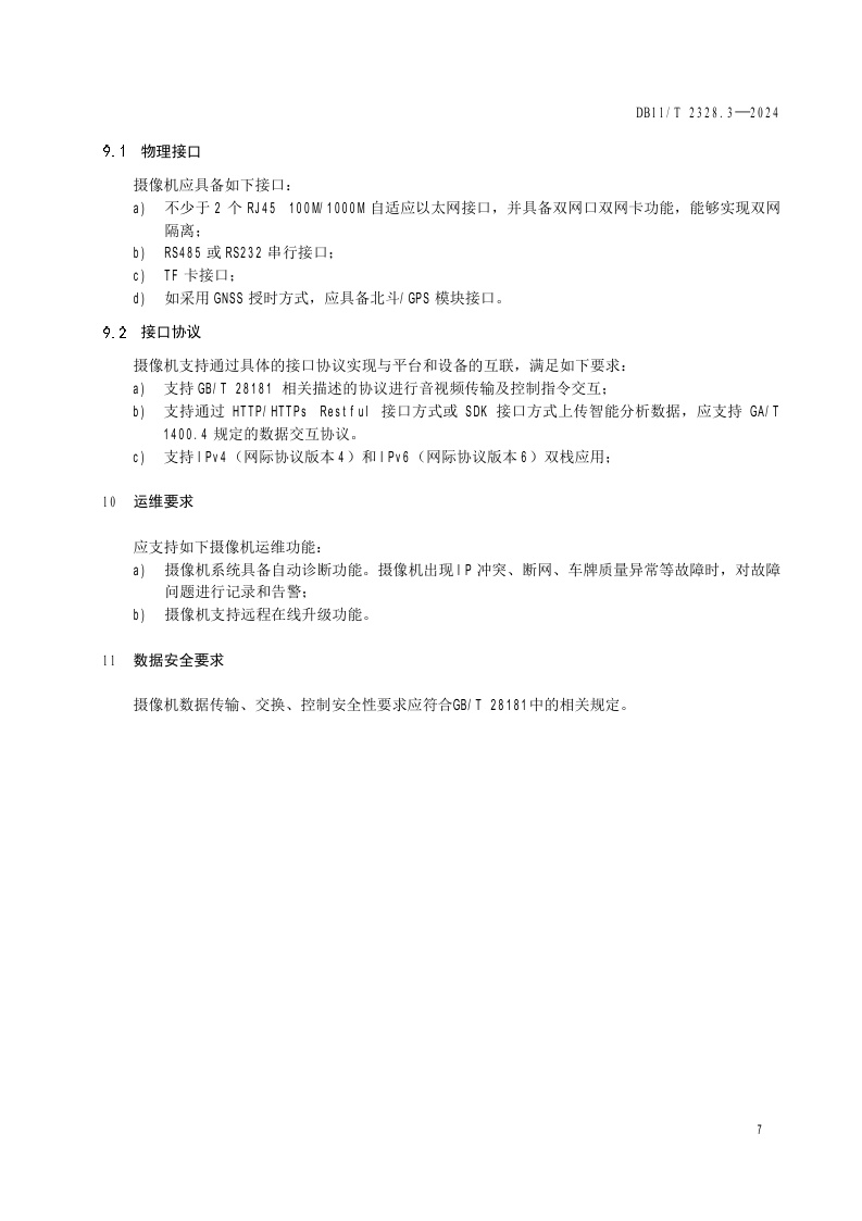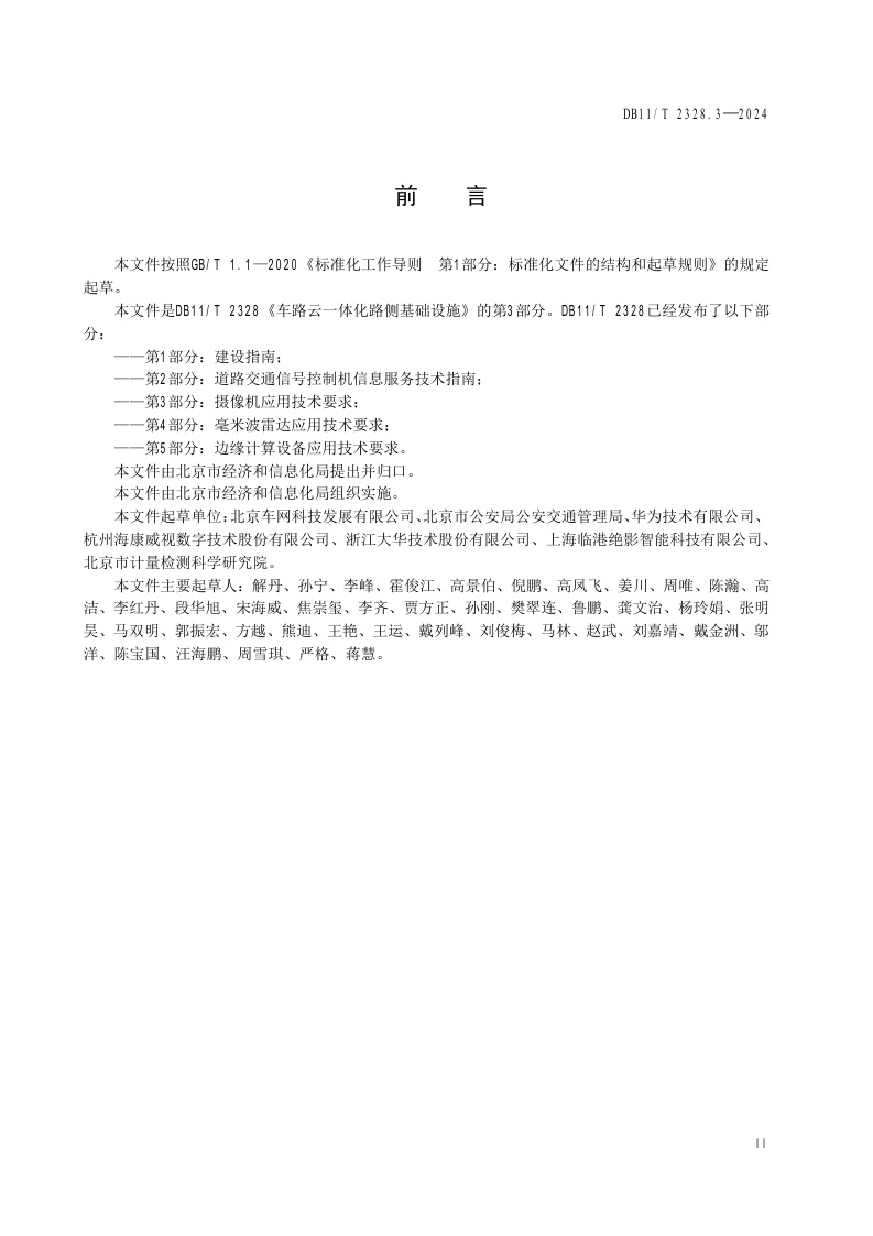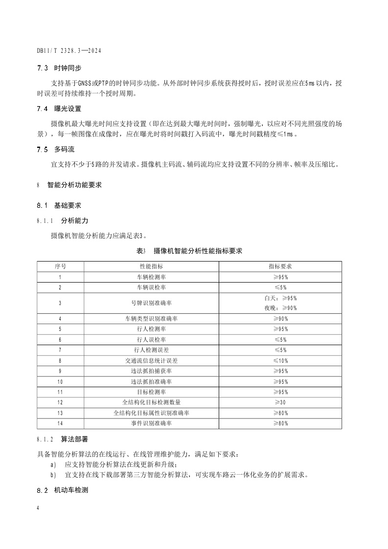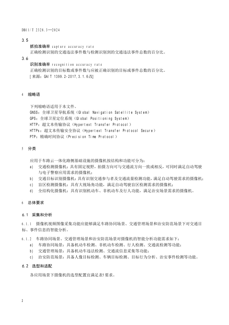 北京市《车路云一体化路侧基础设施 第3部分:摄像机应用技术要求》(DB11/T 2328.3-2024)